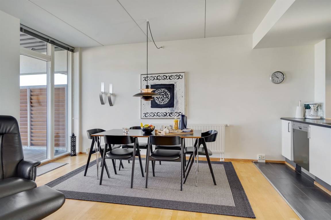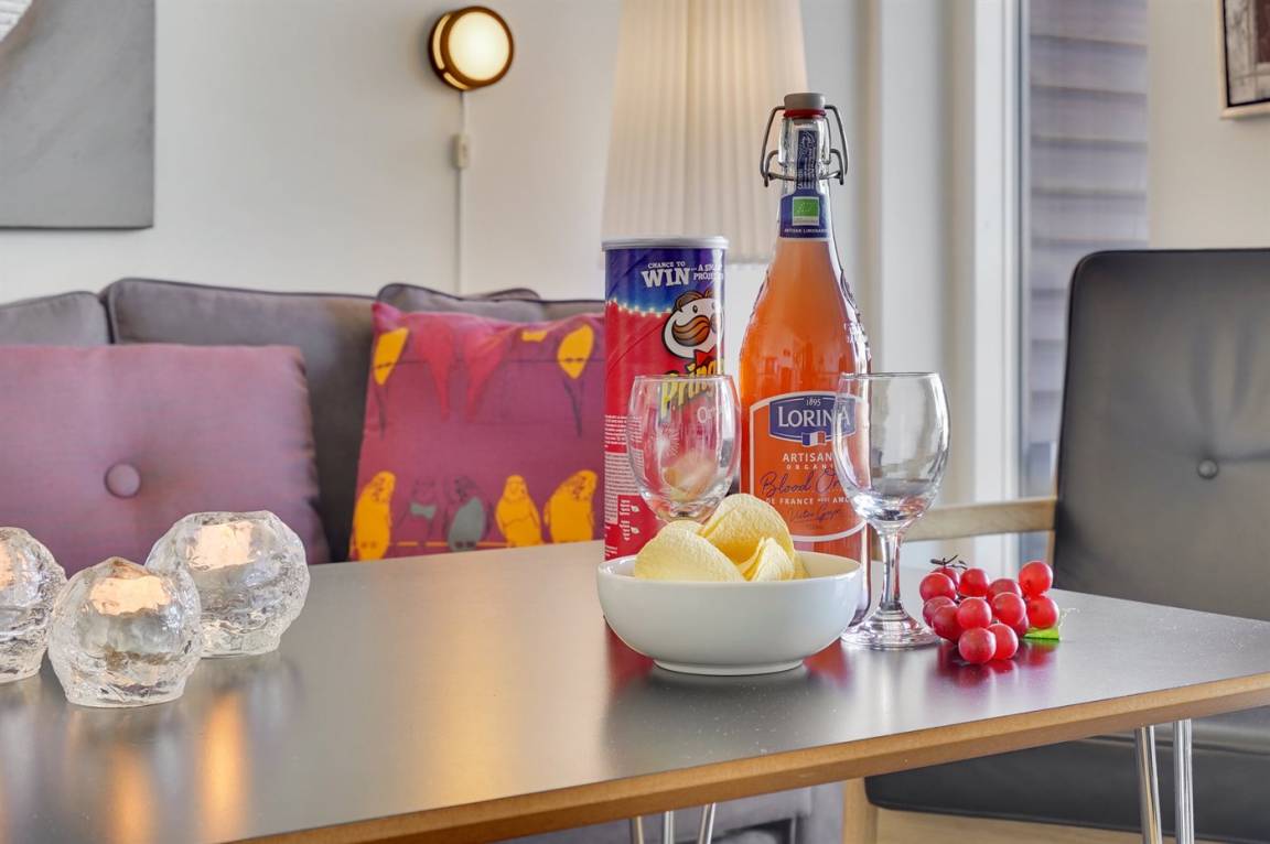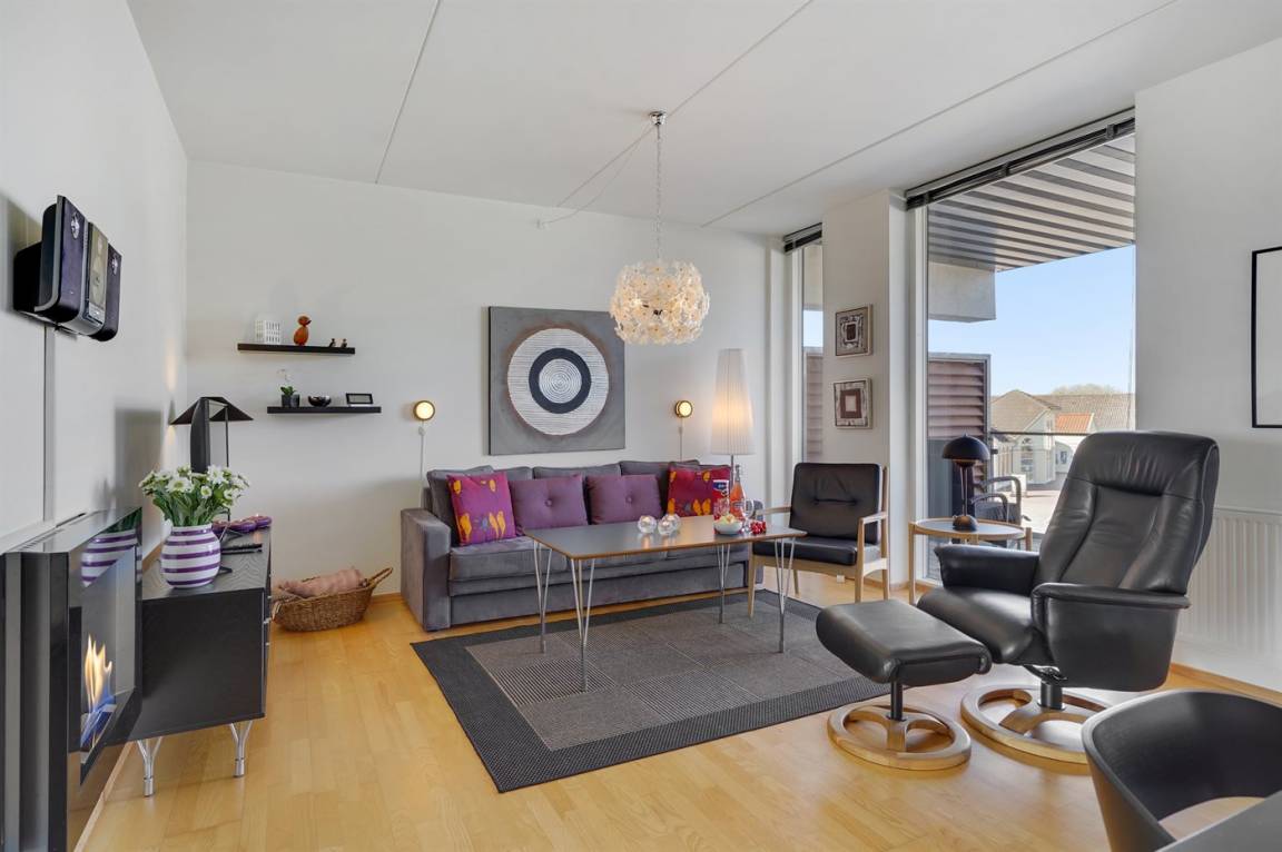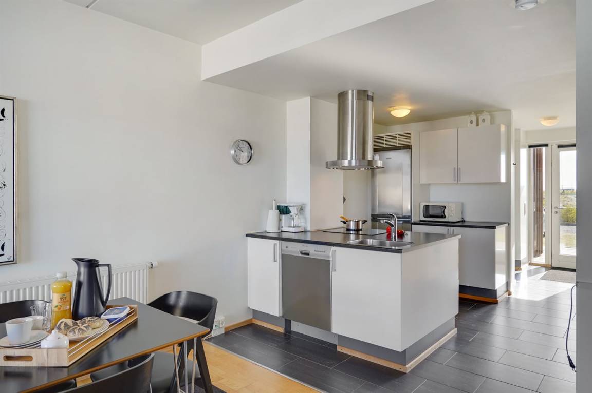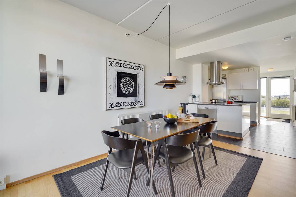 Herrliche, helle Ferienwohnung aus dem Jahr 2009, 2022 modernisiert, im Ferienkompleks Skansen - über der neuen Shoppingpromenade mit Boutiquen und Delikatessengeschäften gelegen. Zur Wohnung gehören Balkons und ein Atriumgarten in Richtung Hafen und zum Wattenmeer hinaus. Es gibt direkter Zugang vom Auto zur Haustür (keine Treppe). Vom Balkon haben Sie eine schöne Aussicht auf das Hafenmilieu und aufs Meer. Die Wohnung ist hell und die Einrichtung ist von hoher Qualität. Fußbodenheizung in der ganzen Wohnung. Nettes Badezimmer mit Dusche. Kleiner Hauswirtschaftsraum mit Waschmaschine und Wäschetrockner. Die moderne Küche ist mit dem Wohnzimmer kombiniert und u. a. mit Geschirrspüler, Mikrowelle, Tiefkühlgerät und Herd mit Ceran-Feld ausgestattet. Im geschmackvoll möblierten Wohnzimmer mit Zutritt zum Balkon finden Sie Biokamin, Stereoanlage mit CD-Spieler, DVD-Spieler, TV und Gemeinschaftsantenne. Ferner Kinderhochstuhl sowie kostenlose, kabellose Internetverbindung vorhanden (Computer ist mitzubringen). Großes Schlafzimmer mit Doppelbett sowie 2 Schlafplätze auf einer Doppelschlafcouch im Wohnzimmer. Im gemütlichen Hafengebiet, wo es auch viele Vögel und Seehunde gibt, herrscht eine ganz besondere und friedliche Inselhafen-Atmosphäre.