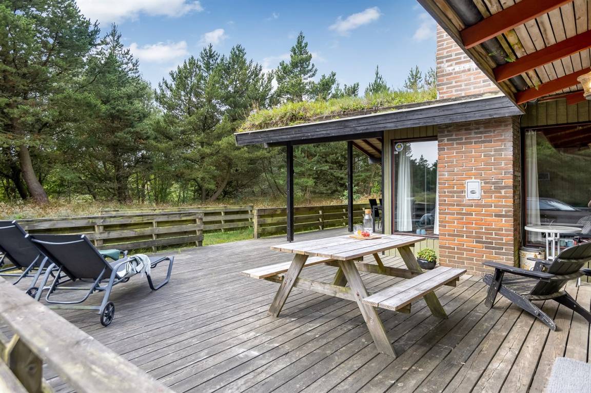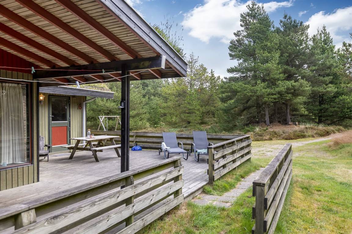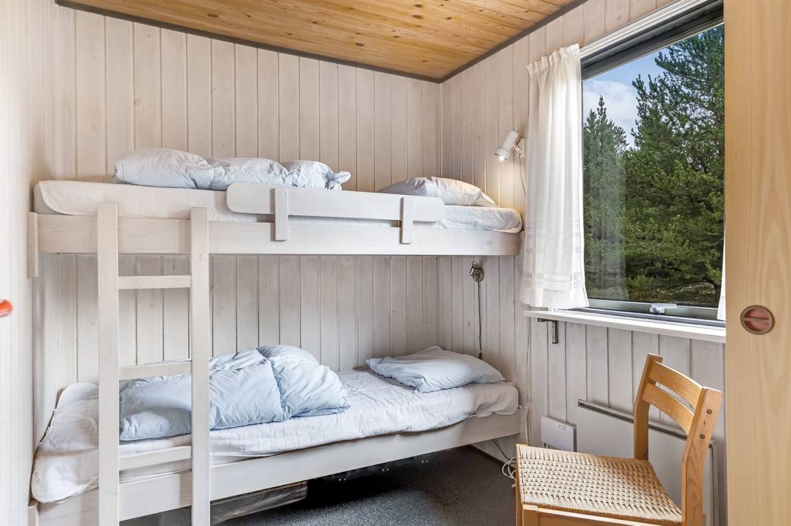 Dieses schöne Ferienhaus aus Holz, 1978 gebaut und 2011 letztens mit neuem Badezimmer renoviert, liegt auf einem leicht hügeligen, mit Heidekraut bewachsenen Naturgrundstück im schönen Gebiet Bolilmark. Zum Haus gehört eine neue (2009) und große, teils überdachte Terrasse mit Gartenmöbeln. Neues Badezimmer mit Duschnische. Die schöne, neue Küche (2009) ist mit dem Wohnzimmer kombiniert und enthält u. a. Mikrowelle. Das Wohnzimmer, mit großer Fensterfront von der Sie eine schöne Aussicht auf die Landschaft haben, enthält Kaminofen sowie TV mit digitalem Satellitenschluss. Die Schlafplätze verteilen sich auf 3 Schlafzimmer; 1 mit Doppelbett, 1 mit 2 Einzelbetten und 1 mit Etagenbett. An die Kinder ist auch gedacht, indem Kinderbett, Kinderhochstuhl, Sandkiste und Schaukel zur Verfügung stehen.