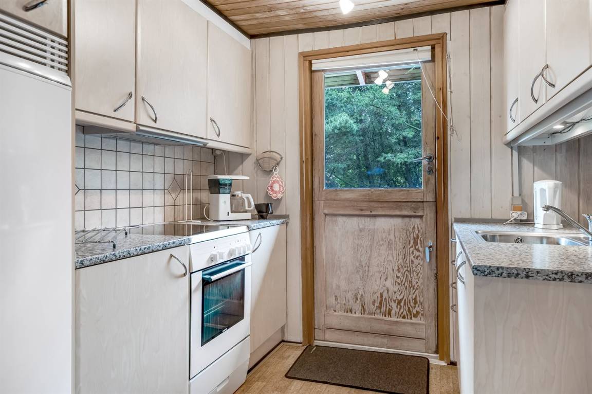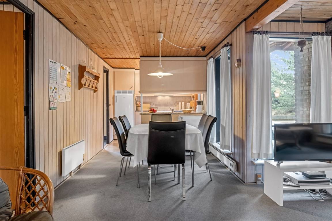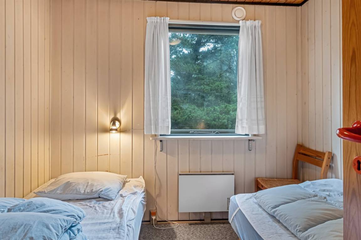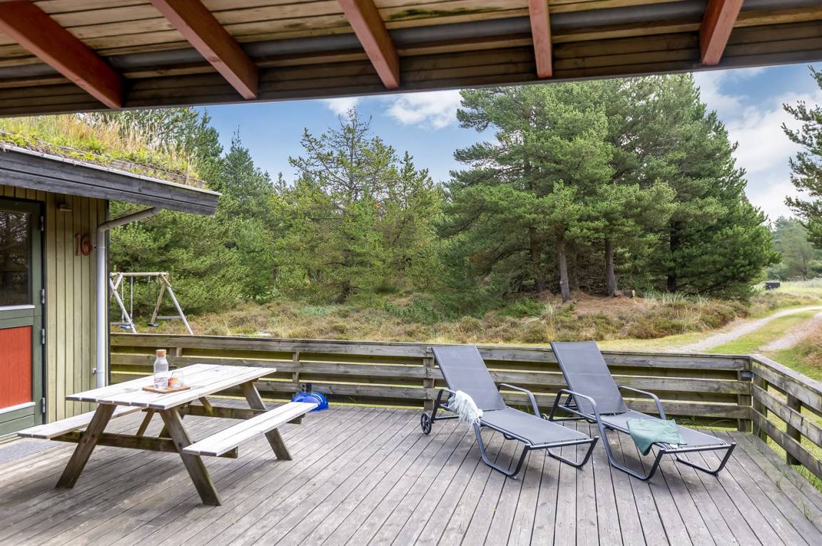 Dieses schöne Ferienhaus aus Holz, 1978 gebaut und 2011 letztens mit neuem Badezimmer renoviert, liegt auf einem leicht hügeligen, mit Heidekraut bewachsenen Naturgrundstück im schönen Gebiet Bolilmark. Zum Haus gehört eine neue (2009) und große, teils überdachte Terrasse mit Gartenmöbeln. Neues Badezimmer mit Duschnische. Die schöne, neue Küche (2009) ist mit dem Wohnzimmer kombiniert und enthält u. a. Mikrowelle. Das Wohnzimmer, mit großer Fensterfront von der Sie eine schöne Aussicht auf die Landschaft haben, enthält Kaminofen sowie TV mit digitalem Satellitenschluss. Die Schlafplätze verteilen sich auf 3 Schlafzimmer; 1 mit Doppelbett, 1 mit 2 Einzelbetten und 1 mit Etagenbett. An die Kinder ist auch gedacht, indem Kinderbett, Kinderhochstuhl, Sandkiste und Schaukel zur Verfügung stehen.