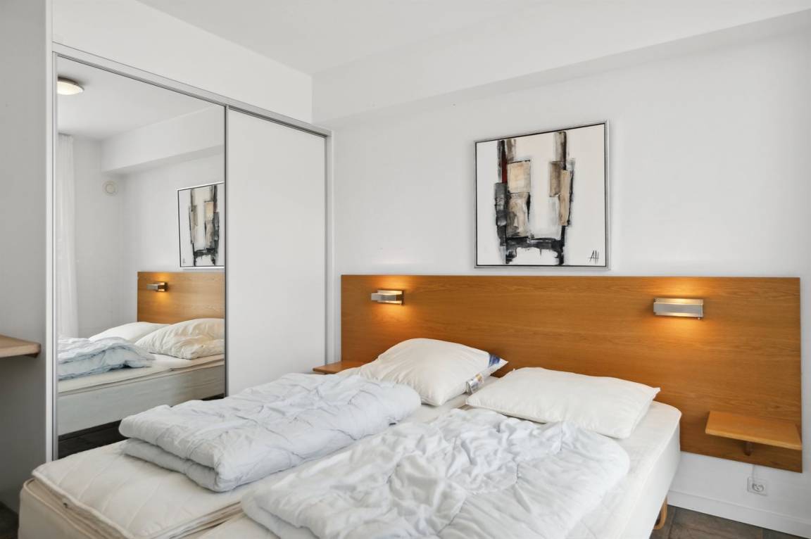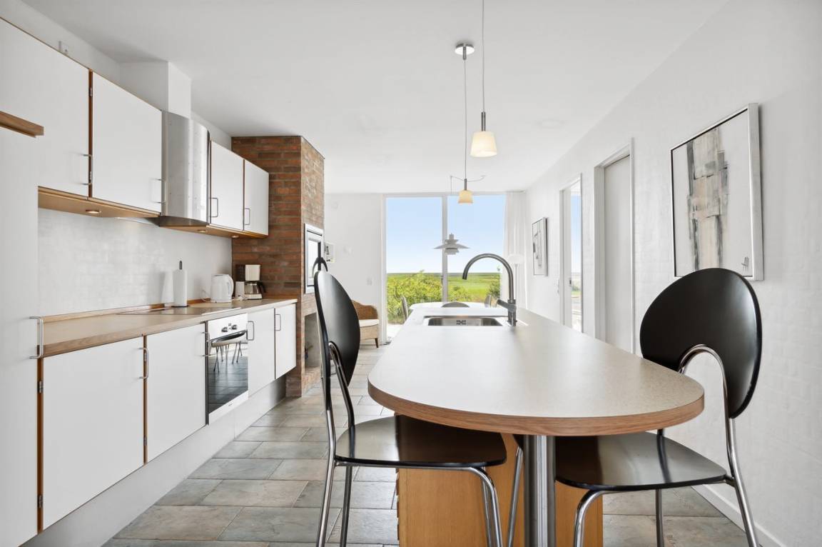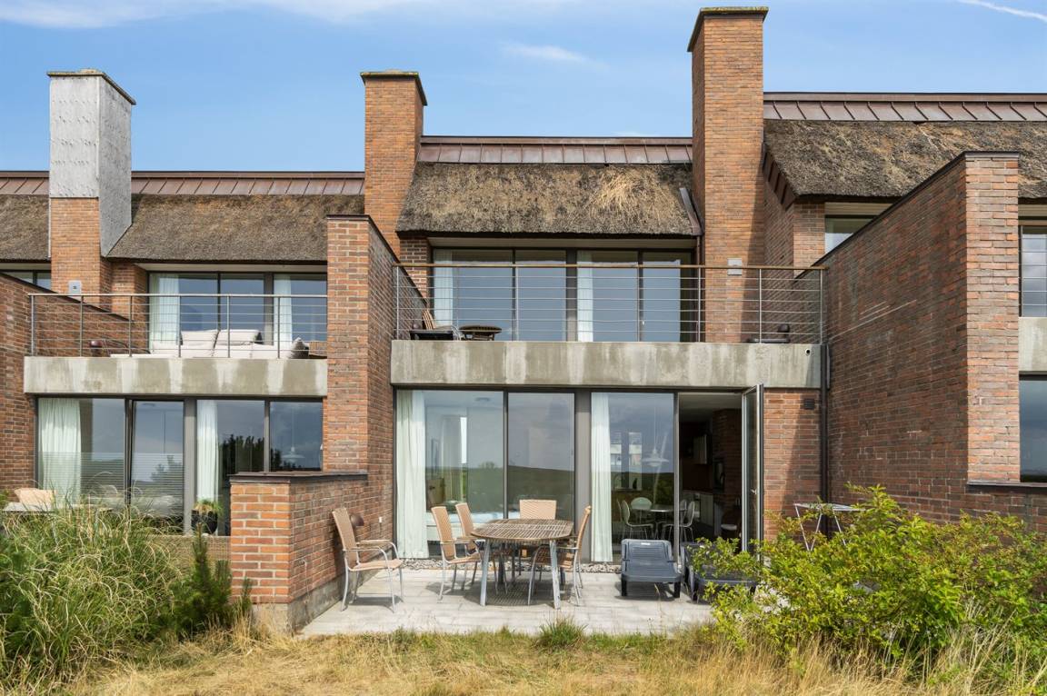 Schöne, von einem Architekten gezeichnete, 97 m² große Ferienwohnung in 2 Etagen mit Meeresblick. Die Wohnung ist aus gediegenen und allergiefreundlichen Materialien aufgeführt - mit rotbraunen Ziegelsteinen, soliden Reetdächern und großen Panoramafenstern. Zur Wohnung gehören 2 Terrassen, eine gegen Norden und eine gegen Süden gerichtete - mit eleganten Gartenmöbeln aus Rattan und Teakholz. Im Erdgeschoss finden Sie ein großes, helles Esszimmer - der Mittelpunkt des Hauses. Hier können Sie den Tönen der B&O Stereoanlage oder dem Knistern der Flammen im Kaminofen lauschen. Die moderne dänische Designerküche von Unoform wird durch die Liebe zum Detail auch den höchsten Ansprüchen gerecht und ist mit Geschirrspüler, Umluftofen aus Edelstahl sowie Ceran-Feld ausgestattet. 2 schöne und geräumige Schlafzimmer, beide mit Doppelbett und Schrank mit Spiegelschiebetüren. Zusätzliche Aufbettungsmöglichkeiten auf einer Doppelschlafcouch im Wohnzimmer im 1. Stock. Zwischen den beiden Schlafzimmern liegt das elegante und rustikal eingerichtete Badezimmer mit schicken Fliesen, einer großen Duschkabine mit Regenwasserdusche sowie komb. Waschmaschine/Wäschetrockner. Über eine Treppe gelangen Sie in die nach unten offene Aussichtsstube mit großer Fensterfront. Hier finden Sie moderne Designerledermöbel, die sich auf 2 Gruppen verteilen sowie Flatscreen-TV und Gemeinschaftsantenne - lassen Sie den Tag hier beim Genuss eines edlen Tropfens ausrinnen. Von der Stube haben Sie ferner Zugang zum herrlichen Balkon von dem Sie die Aussicht genießen können. Kostenlose, kabellose Internetverbindung (eigener Computer ist mitzubringen). An die Kinder ist natürlich auch gedacht – daher stehen Spielraum, interessante Spielgeräte, Spielplatz, Hüpfkissen und Multifunktionsplatz zur Verfügung. Die Außenaktivitäten können kostenlos benutzt werden. An weiteren Einrichtungen des Resorts können Golfplatz Pay & Play, ein gutes Restaurant, Bar, Bowling, Billard, Outdoor-Fitness, Fahrradverleih und Konferenzräume erwähnt werden (gegen Zahlung -Terminvereinbarung notwendig). Die Golfplätze des Resorts sowie die Einrichtungen des Wellness-Bereichs und der Schwimmingpool können gegen Zahlung benutzt werden. Die 2.600 m² große Wellness-Abteilung mit dazugehörendem Atriumgarten bietet puren Luxus für Körper, Seele und Sinne wie z. B. warme Therapiebäder, Fußmassagekanäle, Whirlpools, Saunen, Dampfbäder, Salzwasserbecken, Ruhebereich mit bequemen Liegestühlen, Behandlungsräume mit einer Auswahl an Wellness-Behandlungen sowie Fitnesscenter, Spiel- und Aktivitätenraum im Keller (gegen Zahlung -Terminvereinbarung notwendig).