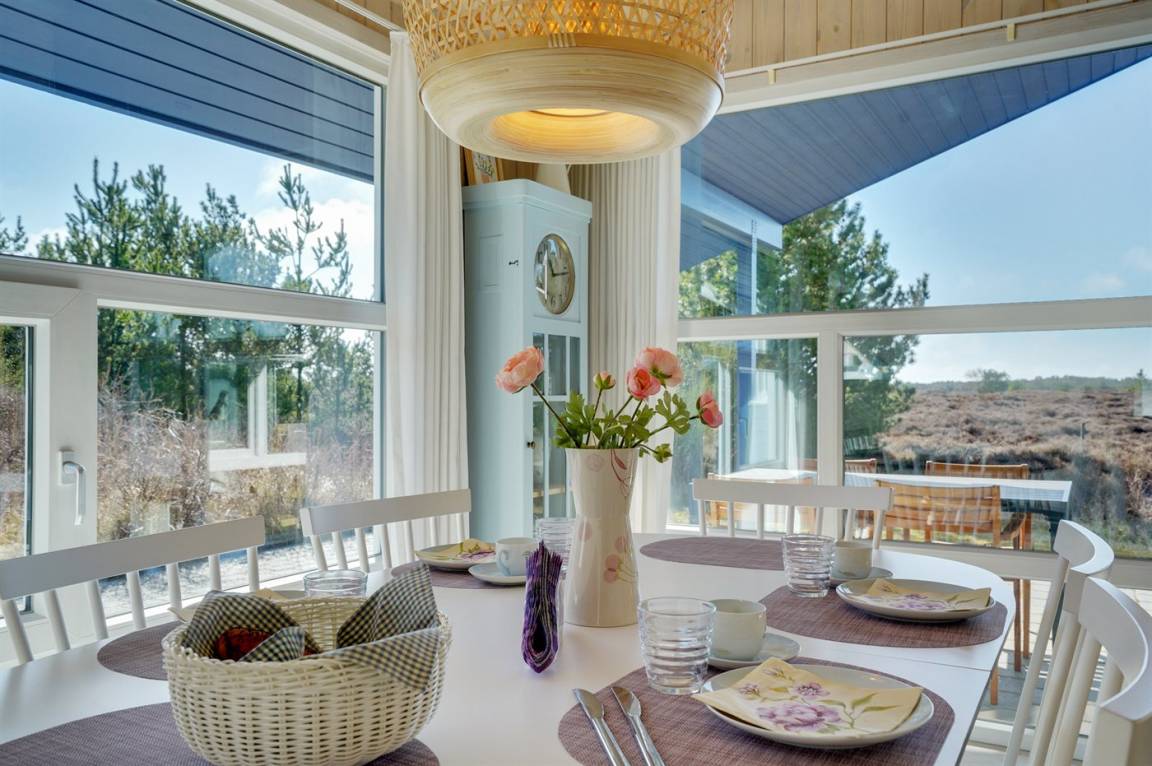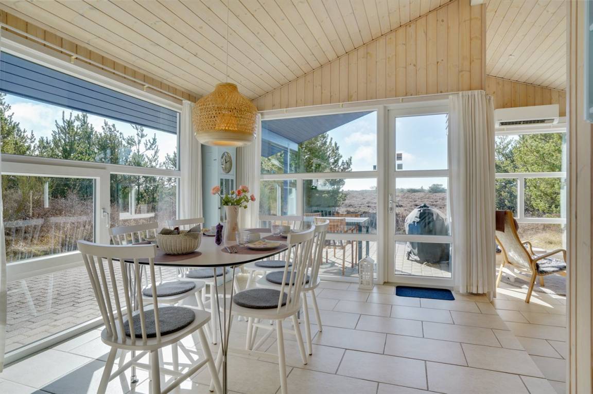 DraußenDie Ferienunterkunft liegt auf einem 2600 m² großen Naturgrundstück. Die Entfernung zum Meer beträgt 3000 m.Die Entfernung zum Wattenmeer beträgt 1900 m. Die nächste Einkaufsmöglichkeit liegt 2200 m entfernt. In einem Abstand von 5500 m gibt es einen Golfplatz. Es steht ein 80 m² Terrassenareal zur Verfügung. Außerdem gibt es 16 m² überdachte Terrasse. Parkplatz auf dem Grundstück.