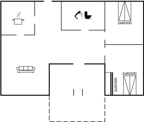 SchlafverhältnisseDie Schlafplätze verteilen sich auf 2 Schlafräume. 4 Schlafplätze in Doppelbetten. 2 Schlafplätze in einem Etagenbett.