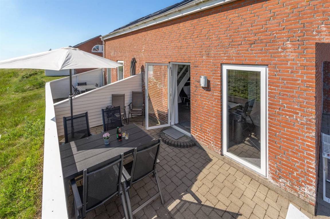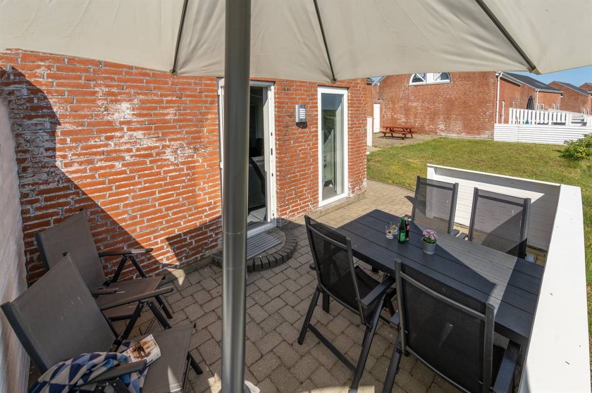 Im Feriencenter RIM liegt dieses schöne Reihenhaus mit einer schöner Aussicht auf den Golfplatz und einer freien Aussicht gegen Süden. Zum Haus gehören 2 offene Terrassen mit Gartenmöbeln.