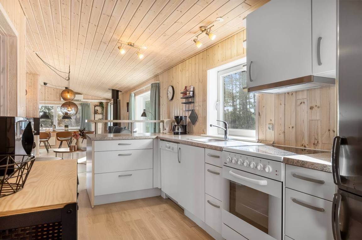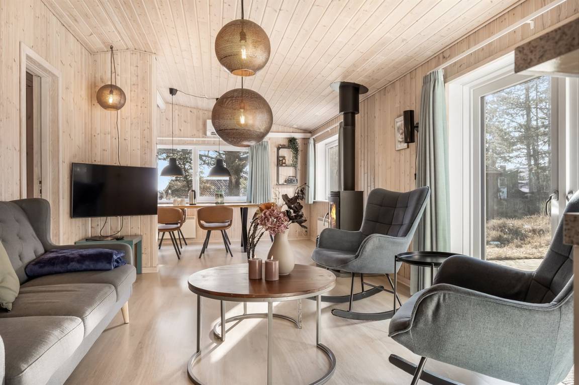 EinrichtungDas Ferienhaus eignet sich für 5 Personen sowie 1 Kleinkind bis zu 3 Jahren. Die Ferienunterkunft hat eine Wohnfläche von 107 m² und wurde 1952 gebaut. 2011 wurde die Ferienunterkunft teilweise renoviert. Es ist erlaubt 1 Haustier mitzubringen. In der Ferienunterkunft ist eine energiesparender Luft zu Luft Wärmepumpe installiert. Die Ferienunterkunft ist mit Waschmaschine ausgestattet. Wäschetrockner. Tiefkühlmöglichkeit mit 84 Liter Nutzinhalt. Es gibt außerdem einen Kaminofen. Für die jüngsten Feriengäste ist 1 Kinderhochstuhl vorhanden.