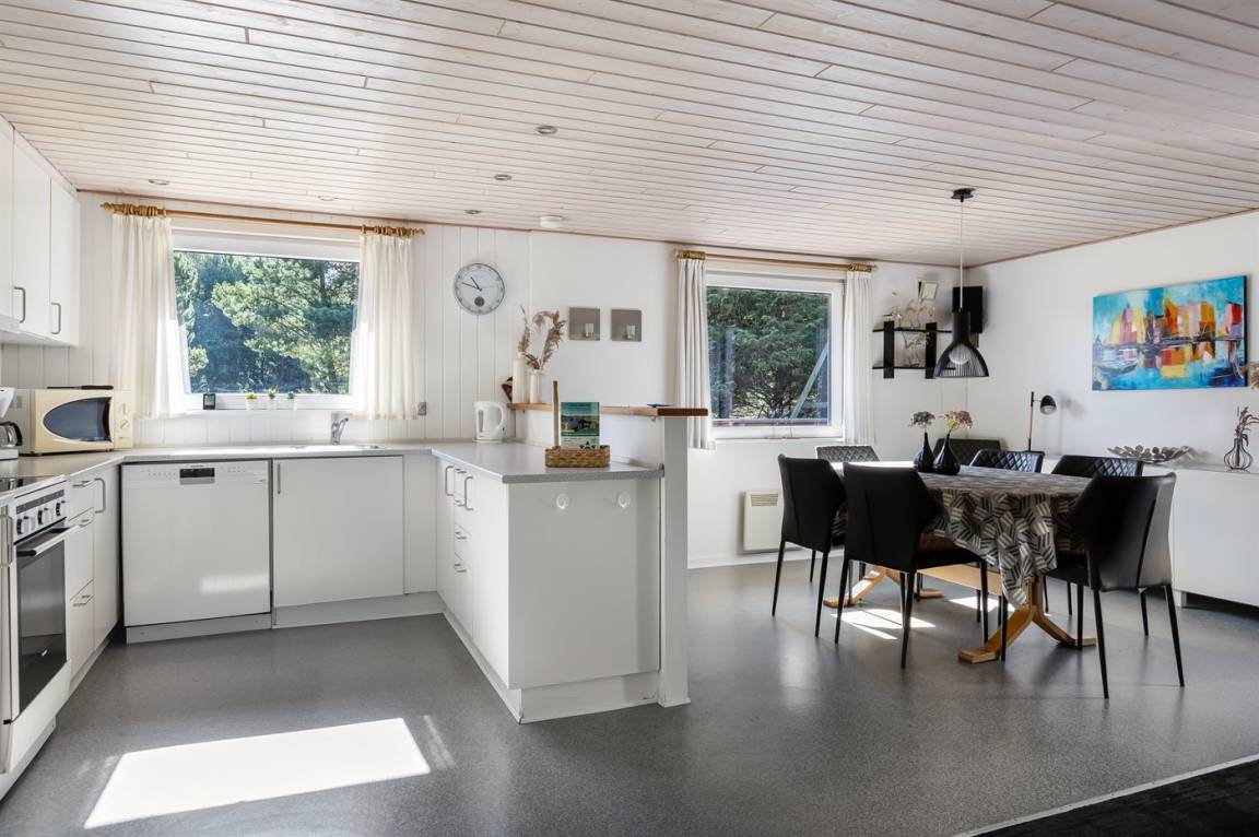 EinrichtungDas Ferienhaus eignet sich für 8 Personen sowie 1 Kleinkind bis zu 3 Jahren. Die Ferienunterkunft hat eine Wohnfläche von 116 m² und wurde 1975 gebaut. 2009 wurde die Ferienunterkunft teilweise renoviert. Es ist erlaubt 2 Haustiere mitzubringen. Die Ferienunterkunft ist mit energiesparender Wärmepumpe ausgestattet. Die Ferienunterkunft ist mit Waschmaschine ausgestattet. Wäschetrockner. Tiefkühlmöglichkeit mit 40 Liter Nutzinhalt. Es gibt außerdem einen Kaminofen. Für die jüngsten Feriengäste ist 1 Kinderhochstuhl vorhanden.