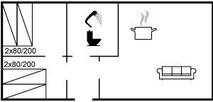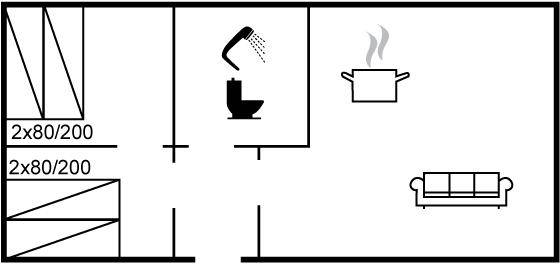 SchlafverhältnisseDie Schlafplätze verteilen sich auf 2 Schlafräume. 2 Schlafplätze in einem Doppelbett. 2 Schlafplätze in Einzelbetten.