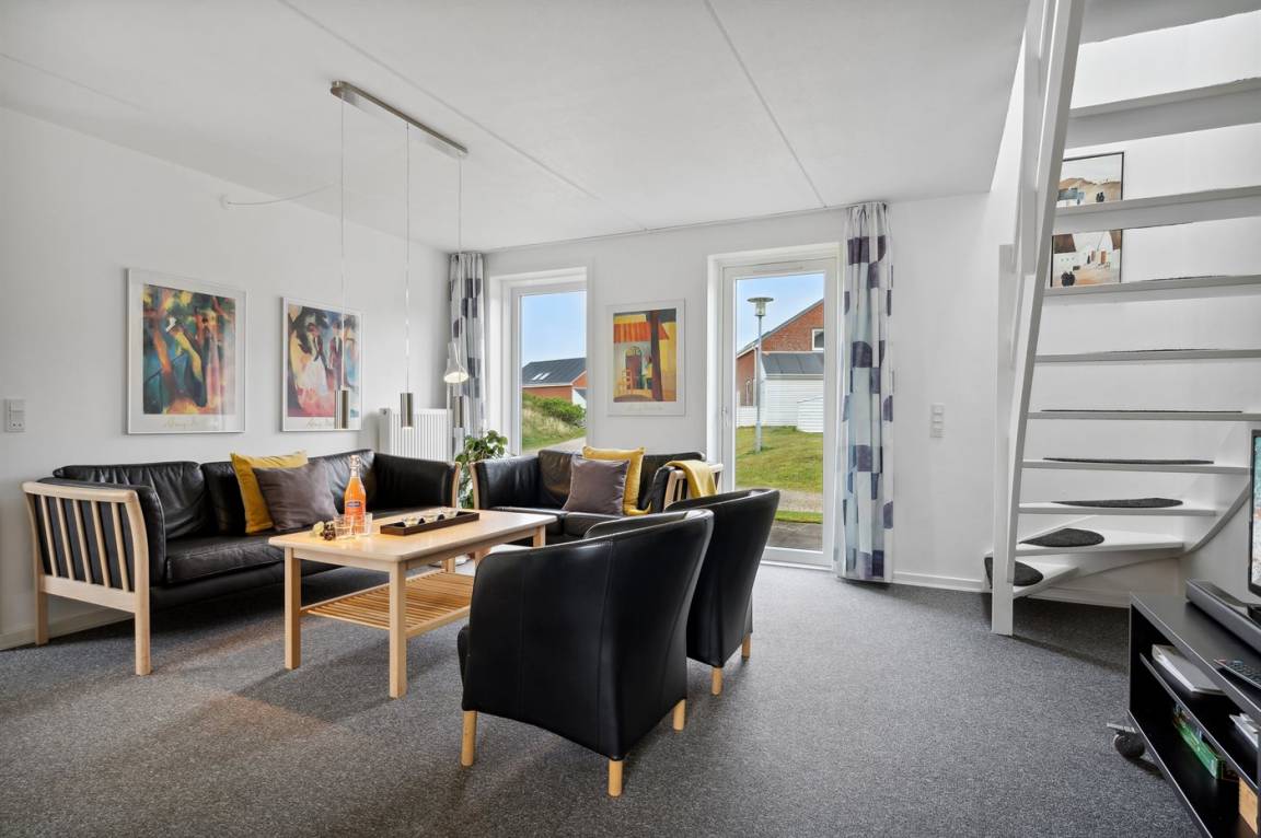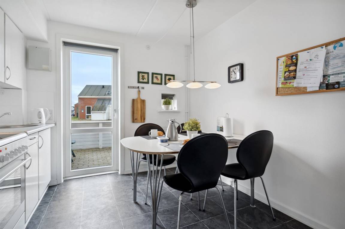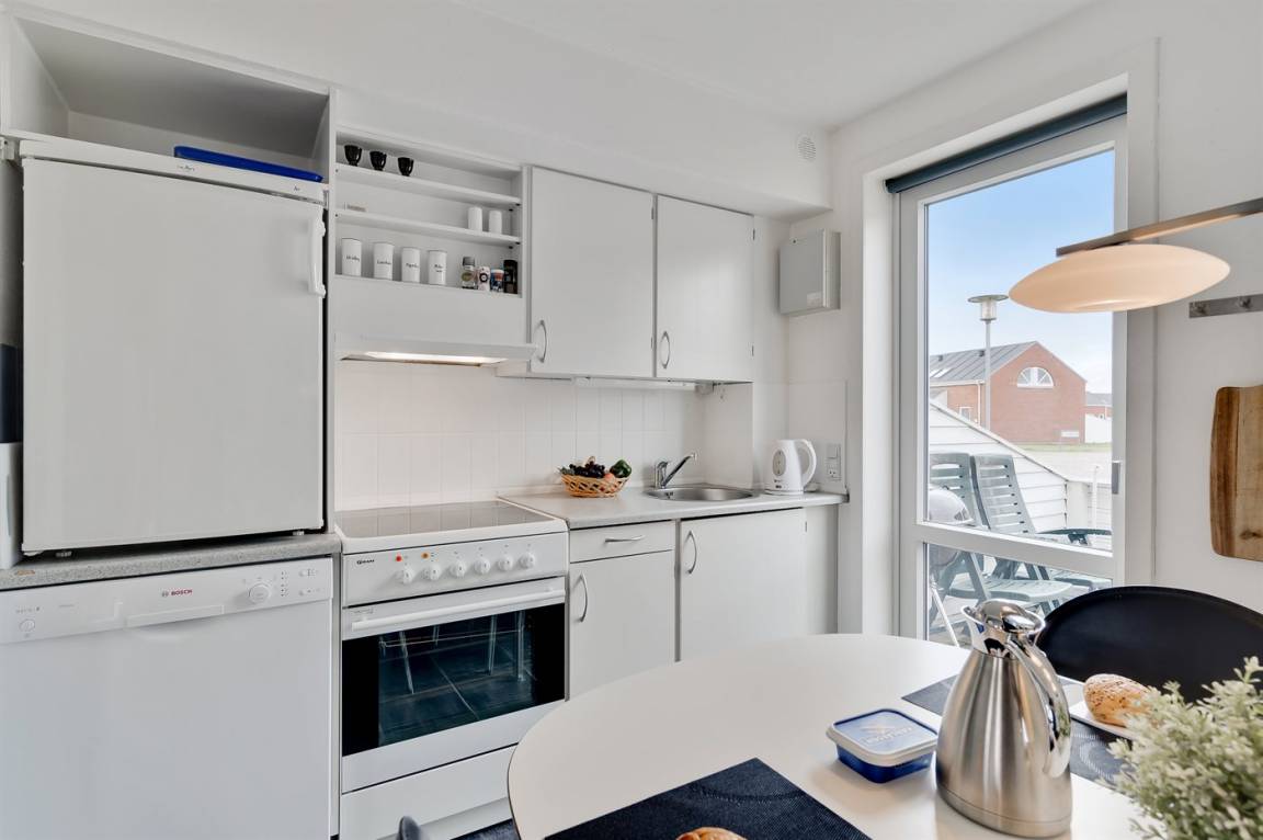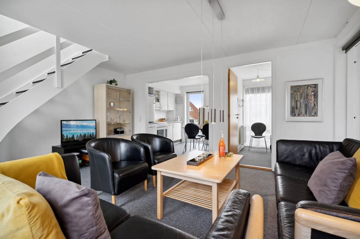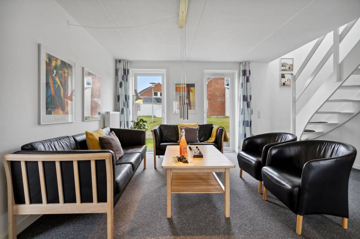 Diese schöne völlig renovierte Ferienwohnung liegt in der Ferienanlage RIM in Havneby. Die 2-stöckige Wohnung hat eine kleine, offene Terrasse mit Gartenmöbeln. Innen sind die Wände und Decken neu gestrichen. Neue Teppichböden, neuer PVC-Boden in der Küche und Fliesenboden im Badezimmer. Badezimmer mit Duschnische und neue Waschmaschine. Die Küche mit Essecke ist u. a. mit neuem Geschirrspüler, Kühlschrank mit Gefrierfach, Standmixer und elektrischem Wasserkocher ausgestattet. Schön und funktionell eingerichtetes Wohnzimmer mit neuen Möbeln, TV mit Soundbar und Gemeinschaftsantenne. Ferner kostenlose, kabellose Internetverbindung vorhanden (Computer ist mitzubringen). Die Schlafplätze verteilen sich auf 3 Schlafzimmer mit neuen Betten; 1 mit Doppelbett und 1 mit 2 Einzelbetten im Obergeschoss, sowie 1 mit 1 Einzelbett im Erdgeschoss. Außerdem steht ein Kinderbett zur Verfügung. In der Ferienanlage gibt es viele Aktivitätsmöglichkeiten für die ganze Familie wie z. B. Innen- und Außenswimmingpools, Sauna, Solarium, Fitnesscenter, Tennisplätze, Spielplätze u. a. m. Übrigens: Fernheizung.