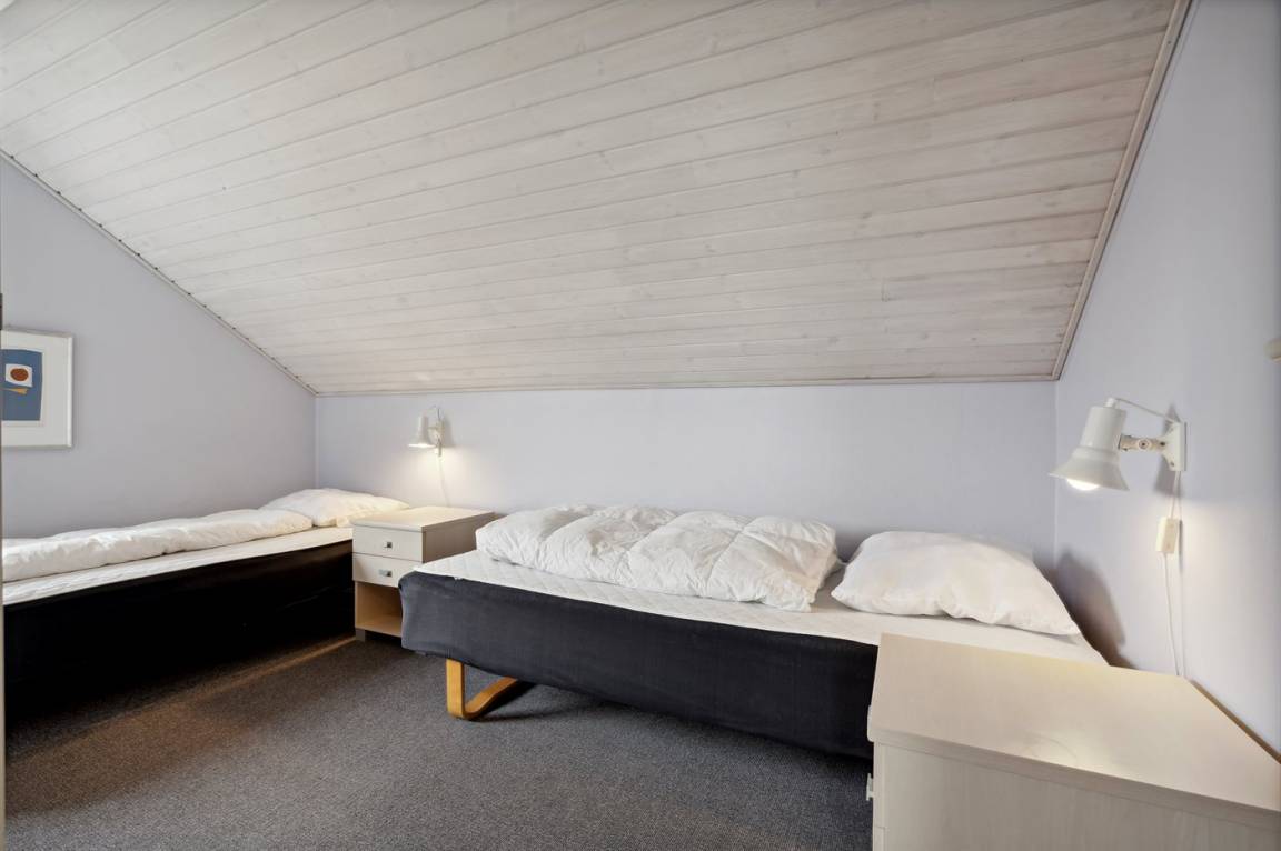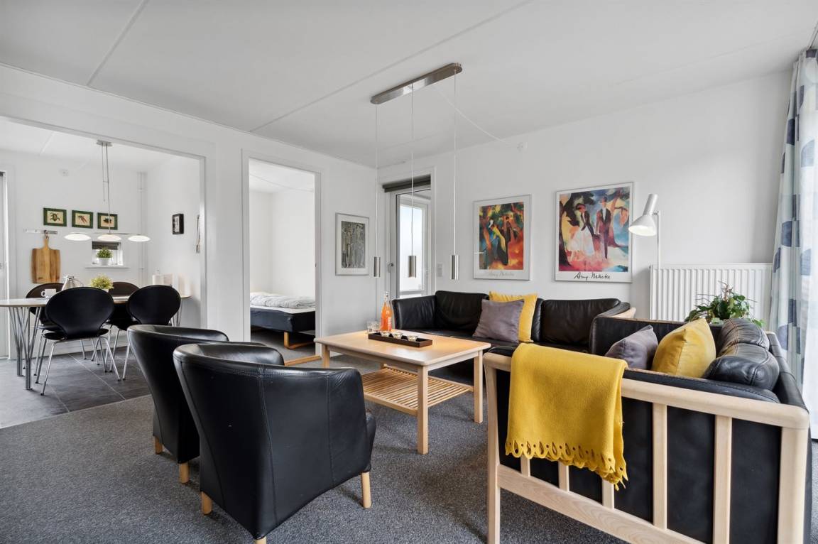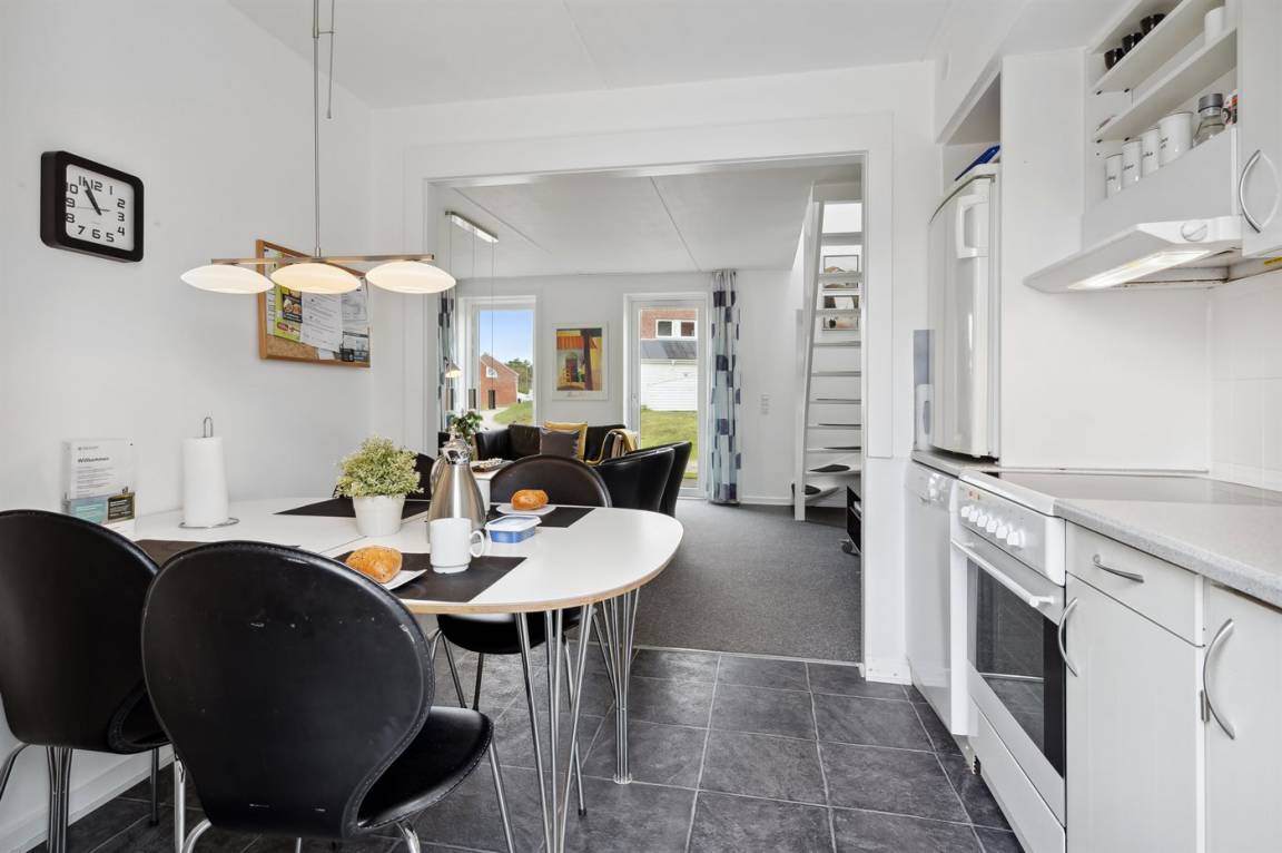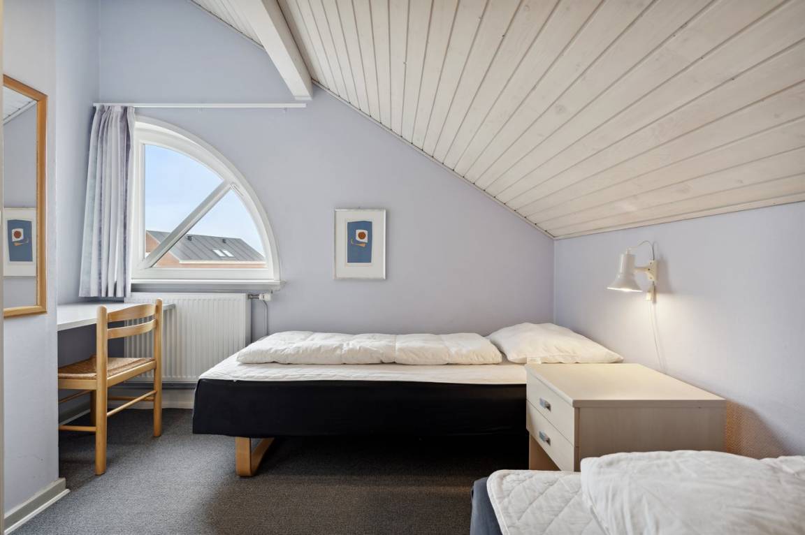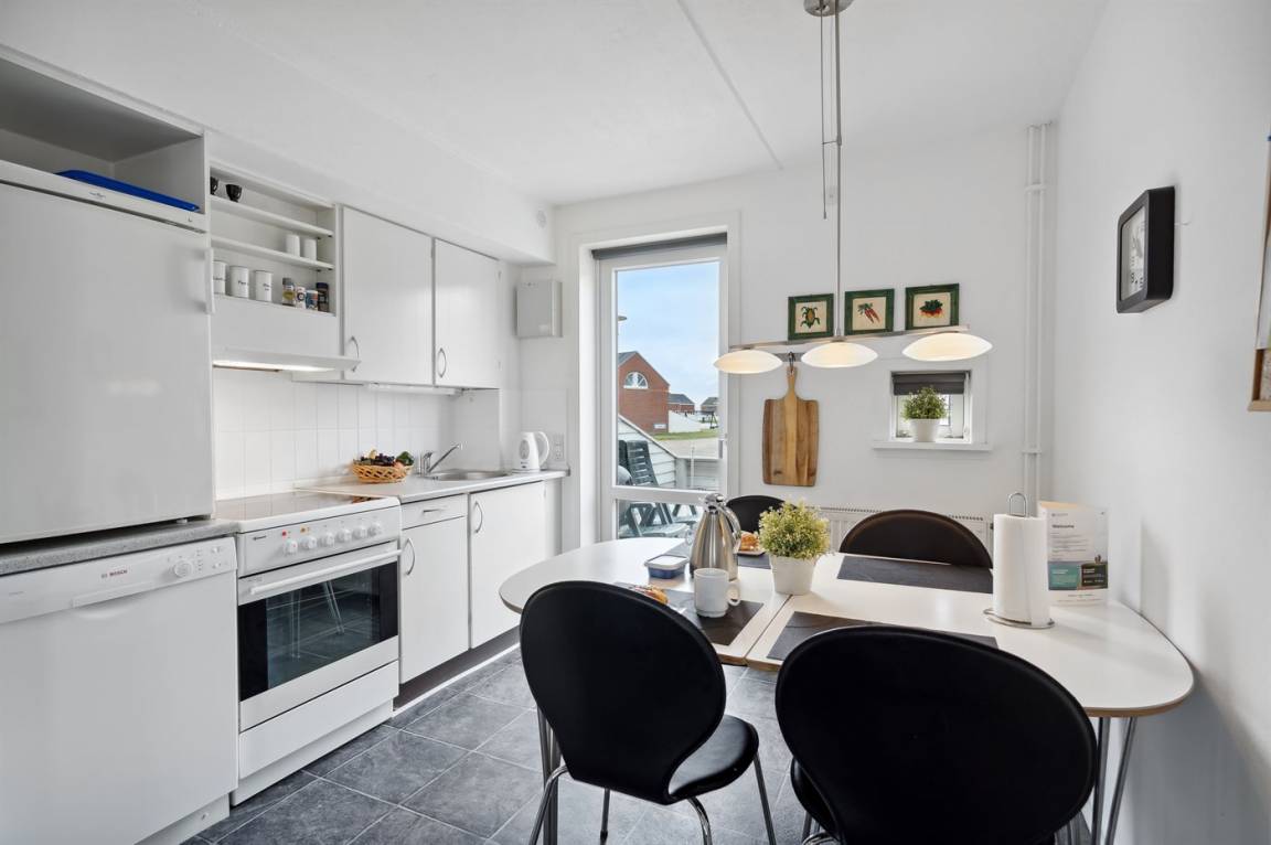 Diese schöne völlig renovierte Ferienwohnung liegt in der Ferienanlage RIM in Havneby. Die 2-stöckige Wohnung hat eine kleine, offene Terrasse mit Gartenmöbeln. Innen sind die Wände und Decken neu gestrichen. Neue Teppichböden, neuer PVC-Boden in der Küche und Fliesenboden im Badezimmer. Badezimmer mit Duschnische und neue Waschmaschine. Die Küche mit Essecke ist u. a. mit neuem Geschirrspüler, Kühlschrank mit Gefrierfach, Standmixer und elektrischem Wasserkocher ausgestattet. Schön und funktionell eingerichtetes Wohnzimmer mit neuen Möbeln, TV mit Soundbar und Gemeinschaftsantenne. Ferner kostenlose, kabellose Internetverbindung vorhanden (Computer ist mitzubringen). Die Schlafplätze verteilen sich auf 3 Schlafzimmer mit neuen Betten; 1 mit Doppelbett und 1 mit 2 Einzelbetten im Obergeschoss, sowie 1 mit 1 Einzelbett im Erdgeschoss. Außerdem steht ein Kinderbett zur Verfügung. In der Ferienanlage gibt es viele Aktivitätsmöglichkeiten für die ganze Familie wie z. B. Innen- und Außenswimmingpools, Sauna, Solarium, Fitnesscenter, Tennisplätze, Spielplätze u. a. m. Übrigens: Fernheizung.