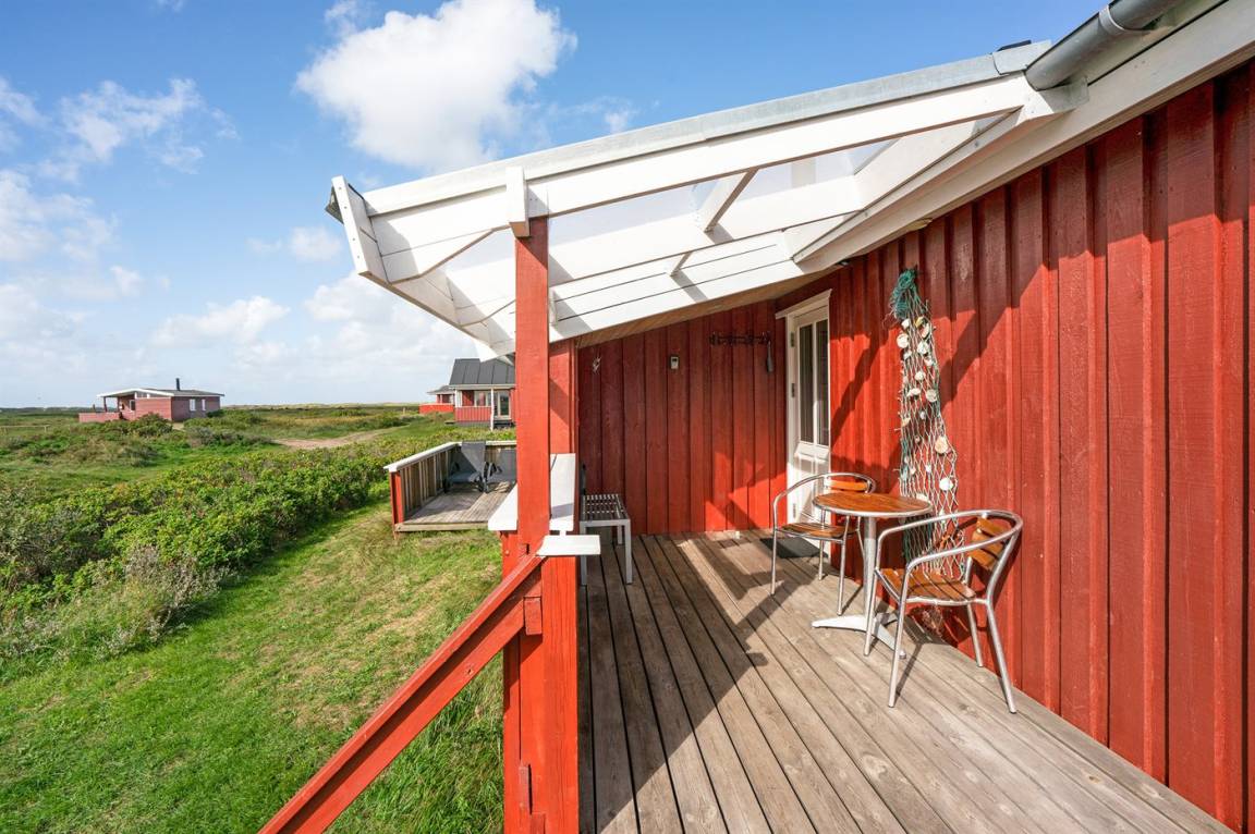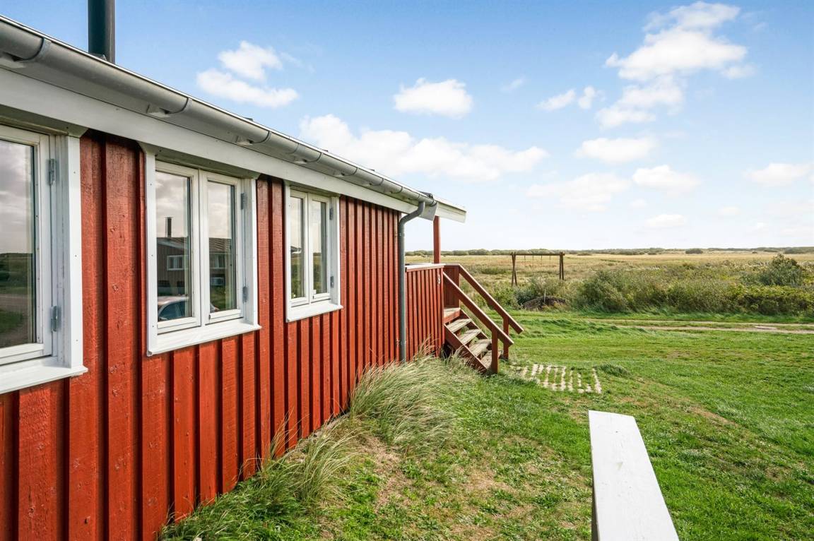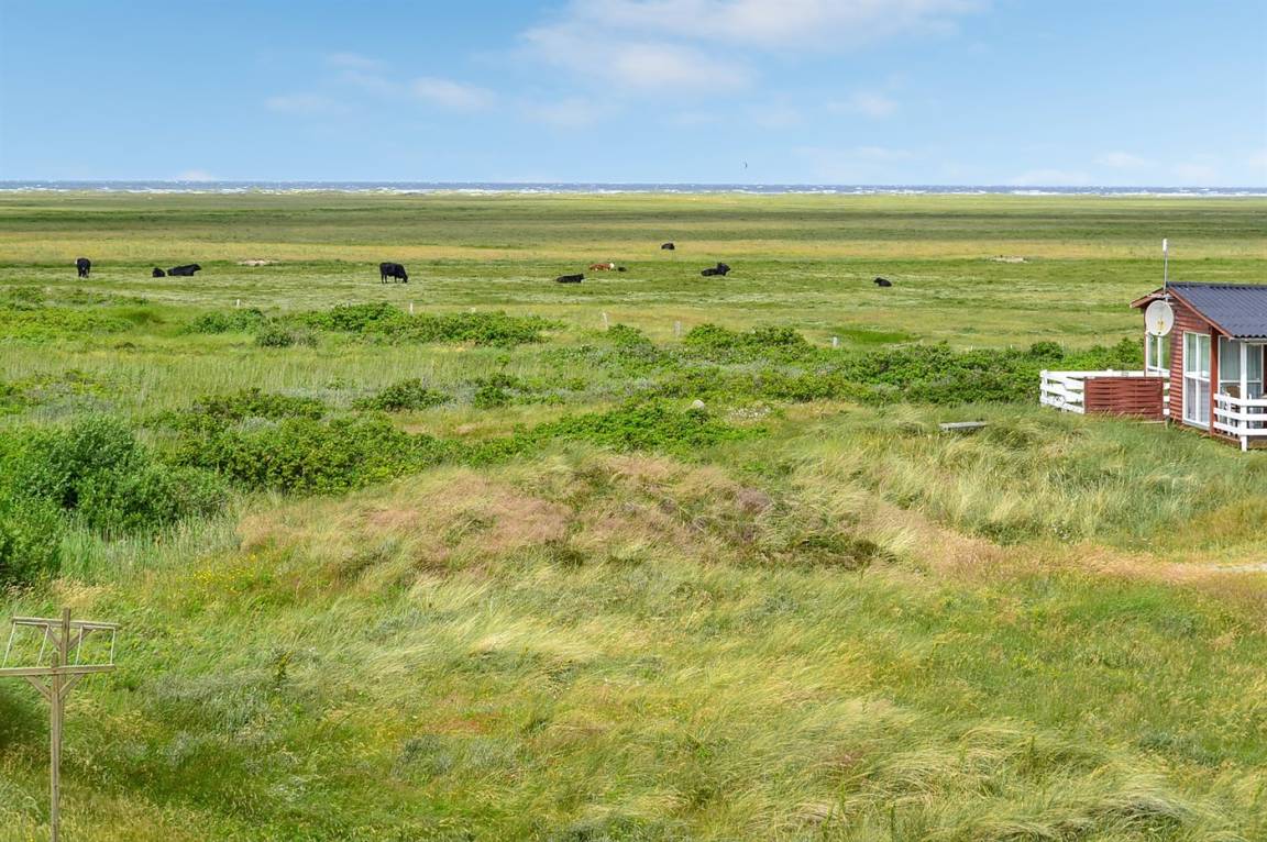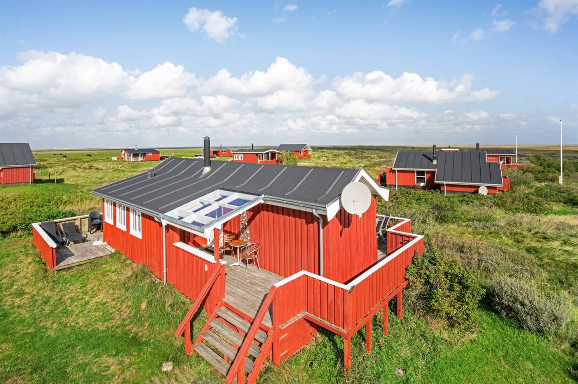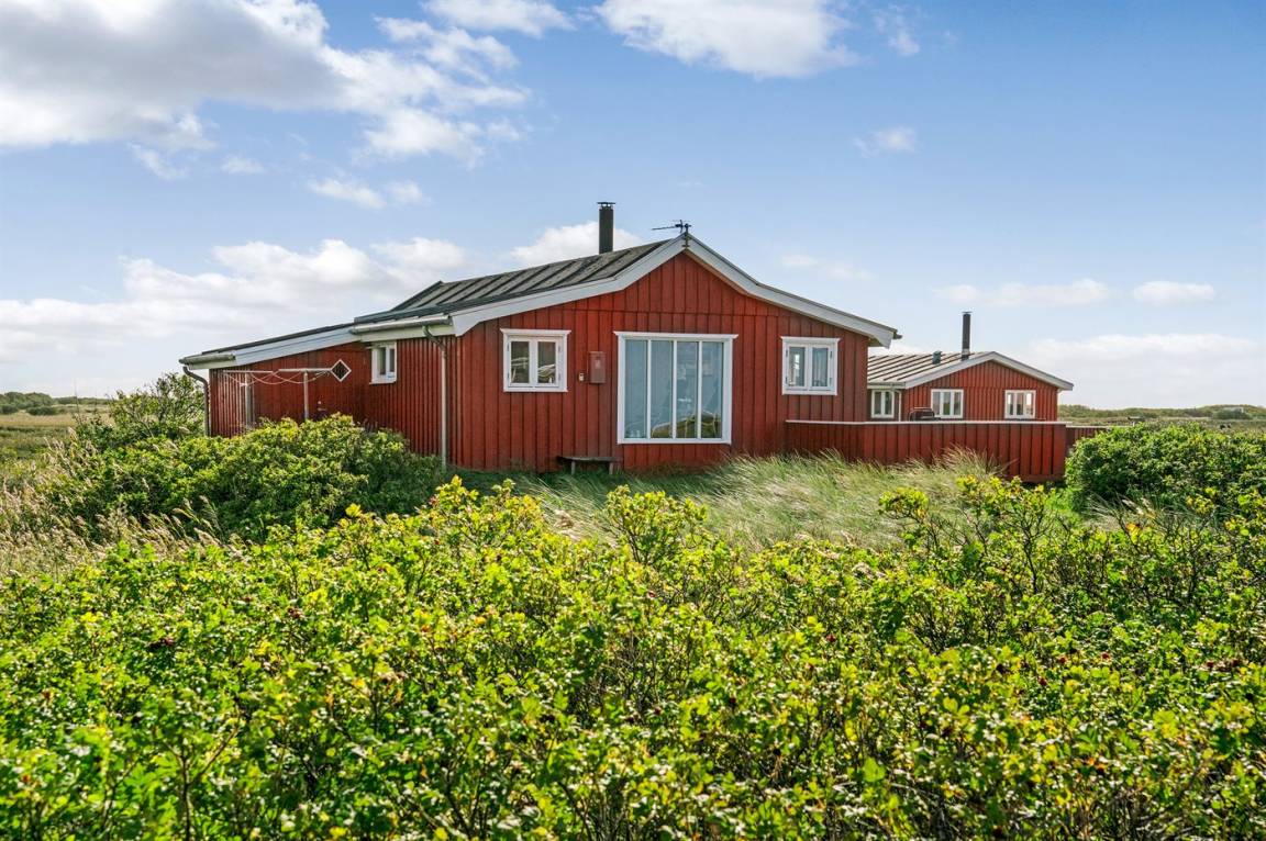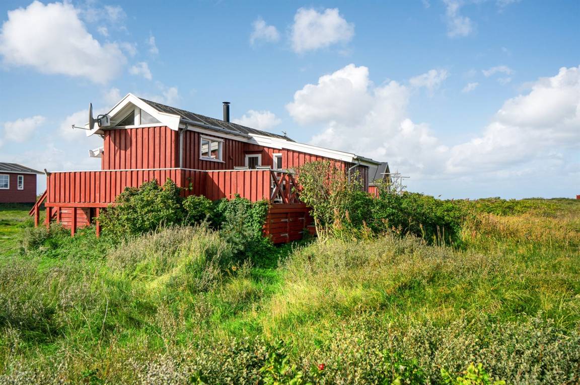 Dieses Ferienhaus aus Holz mit Meeresblick, 1950 gebaut und 2003 modernisiert, liegt auf einem Naturgrundstück nur 350 m von der Nordsee entfernt. Zum Haus gehört ein offenes Terrassenareal mit Gartenmöbeln, gutem Windschutz und einer schönen Aussicht über die Nordsee. Innen sind die Wände im Wohnzimmer mit Holz verkleidet. Badezimmer mit Fußbodenheizung, 2-Pers Whirlpool, Dusche, Waschmaschine und Wäschetrockner. Die schöne, offene und neurenovierte Küche ist mit dem Hellen Wohnzimmer kombiniert. Das Wohnzimmer ist mit Kaminofen, Stereoanlage mit CD-Spieler, großem Flatscreen TV mit Satellitenanschluss und DVD-Spieler ausgestattet. Die Schlafplätze verteilen sich auf 1 Zimmer mit Doppelbett sowie einer Doppelschlafcouch im Wohnzimmer. Es sind eine energiegerechte Wärmepumpe und ein Ladestecker für Elektroautos installiert (CEE Stecker).