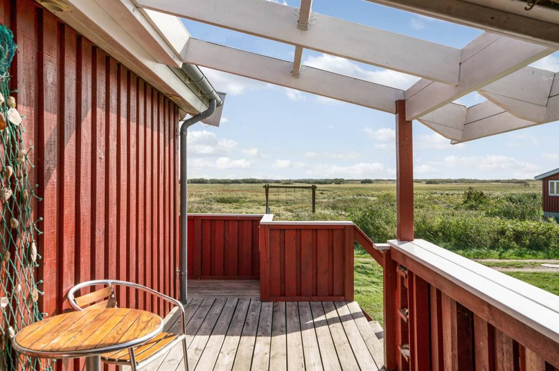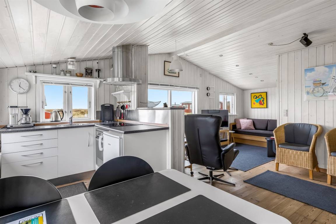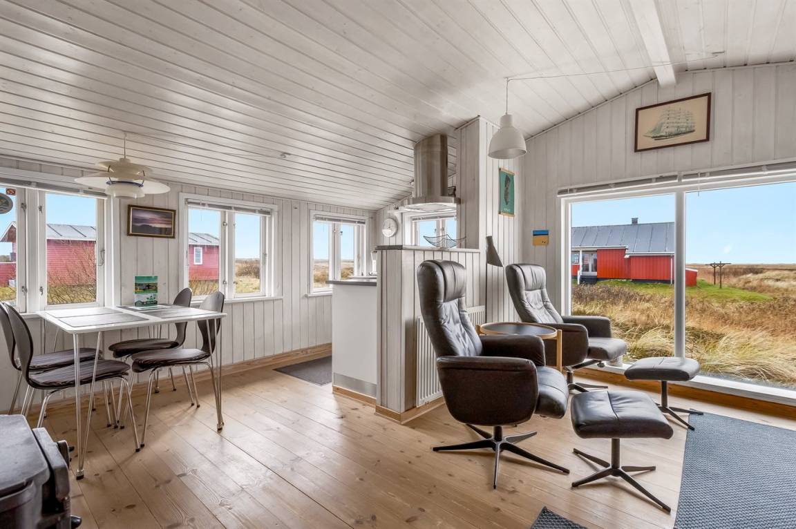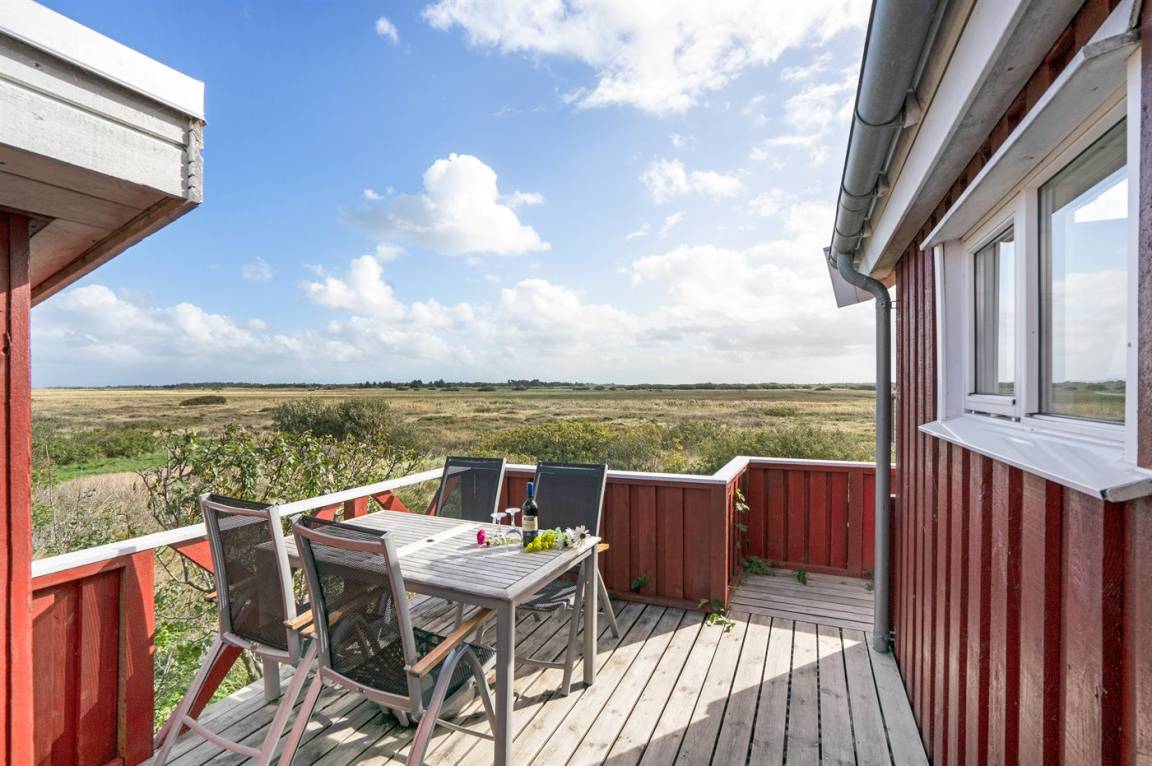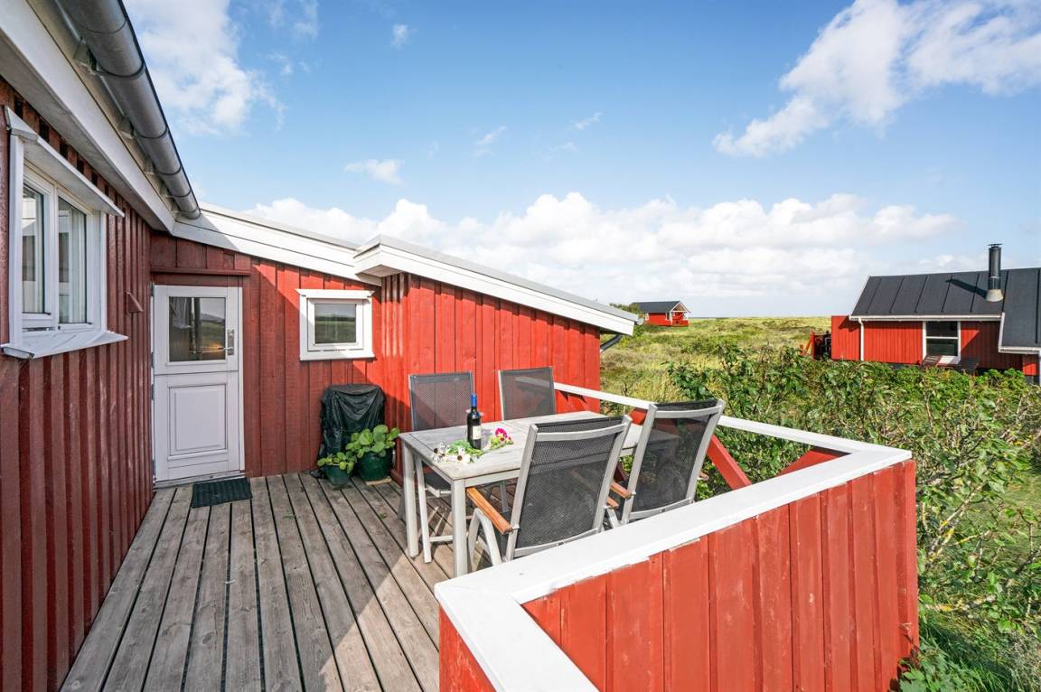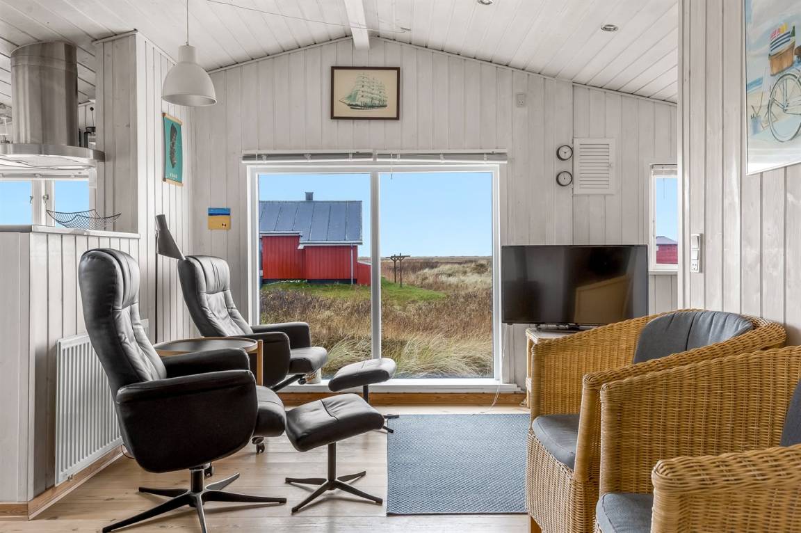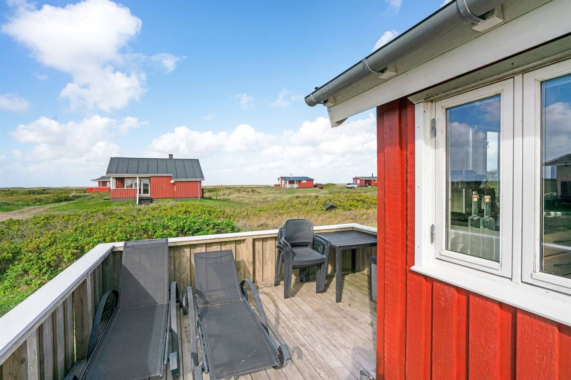 Dieses Ferienhaus aus Holz mit Meeresblick, 1950 gebaut und 2003 modernisiert, liegt auf einem Naturgrundstück nur 350 m von der Nordsee entfernt. Zum Haus gehört ein offenes Terrassenareal mit Gartenmöbeln, gutem Windschutz und einer schönen Aussicht über die Nordsee. Innen sind die Wände im Wohnzimmer mit Holz verkleidet. Badezimmer mit Fußbodenheizung, 2-Pers Whirlpool, Dusche, Waschmaschine und Wäschetrockner. Die schöne, offene und neurenovierte Küche ist mit dem Hellen Wohnzimmer kombiniert. Das Wohnzimmer ist mit Kaminofen, Stereoanlage mit CD-Spieler, großem Flatscreen TV mit Satellitenanschluss und DVD-Spieler ausgestattet. Die Schlafplätze verteilen sich auf 1 Zimmer mit Doppelbett sowie einer Doppelschlafcouch im Wohnzimmer. Es sind eine energiegerechte Wärmepumpe und ein Ladestecker für Elektroautos installiert (CEE Stecker).