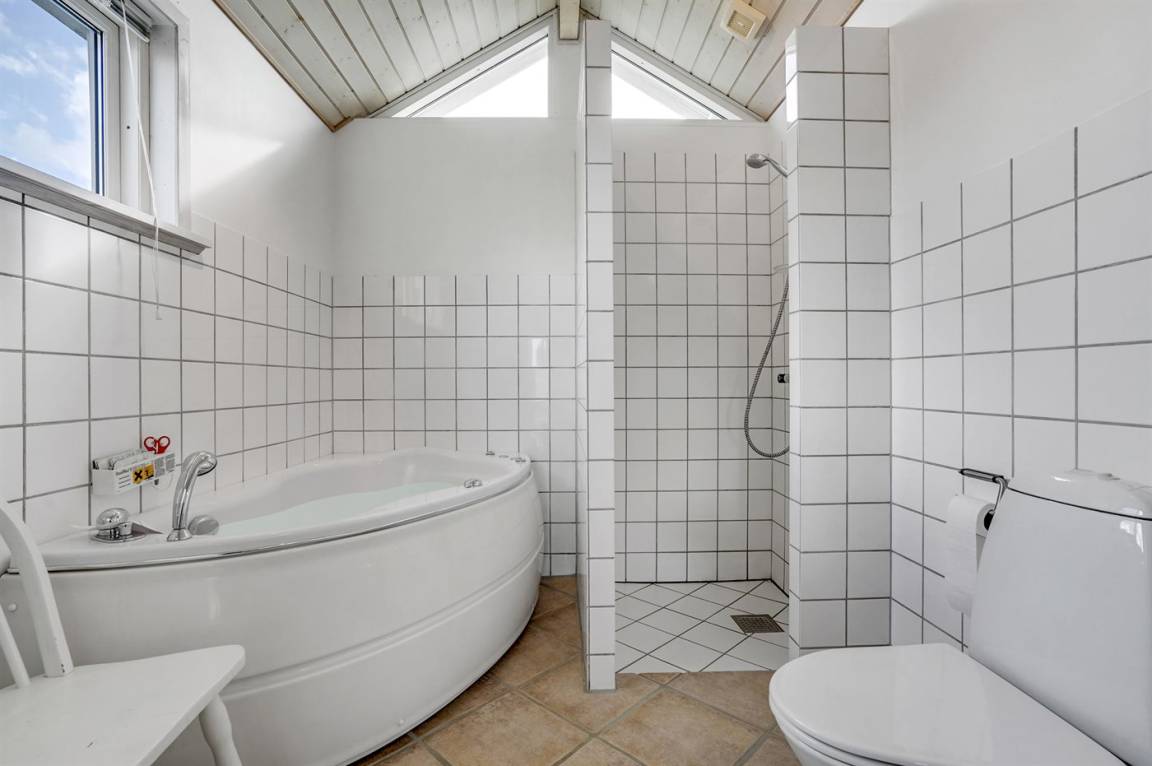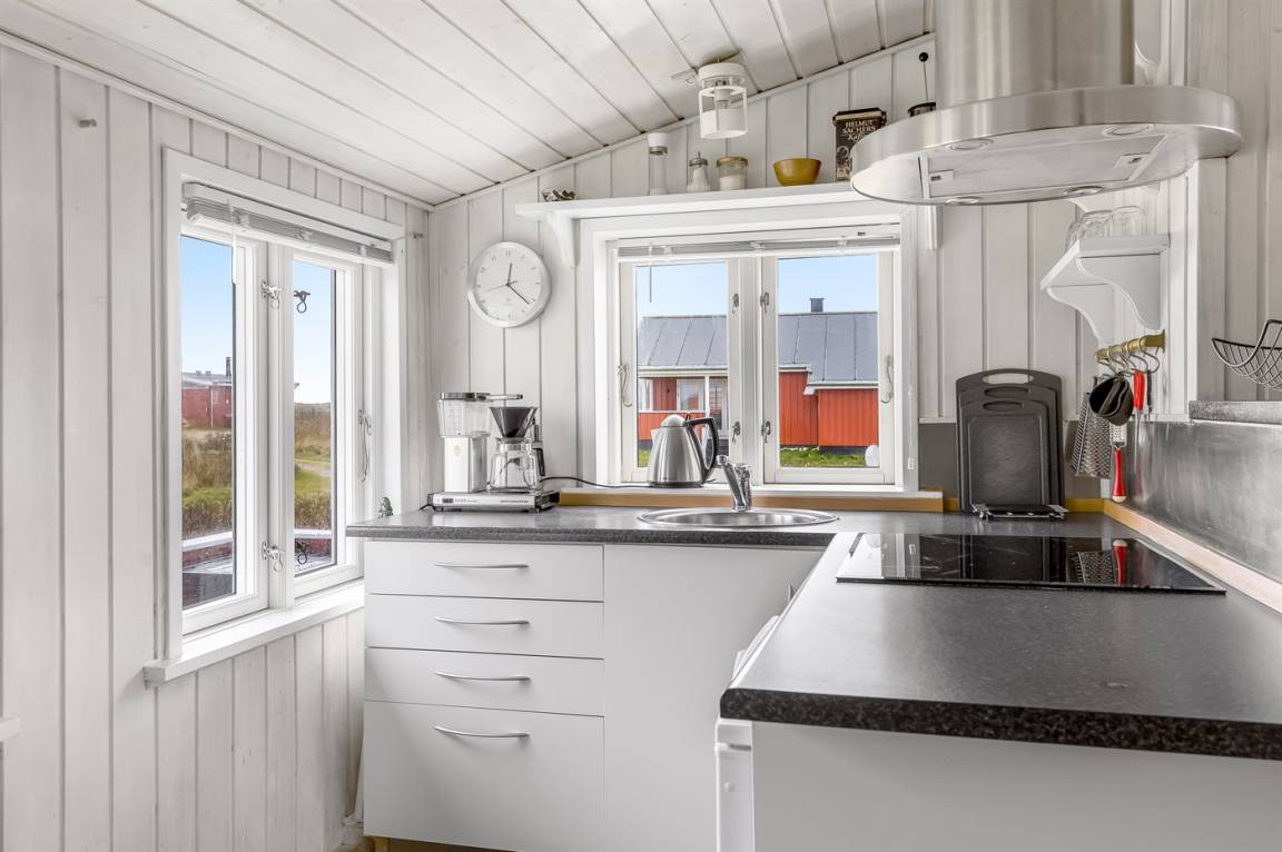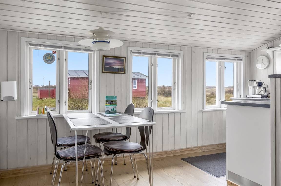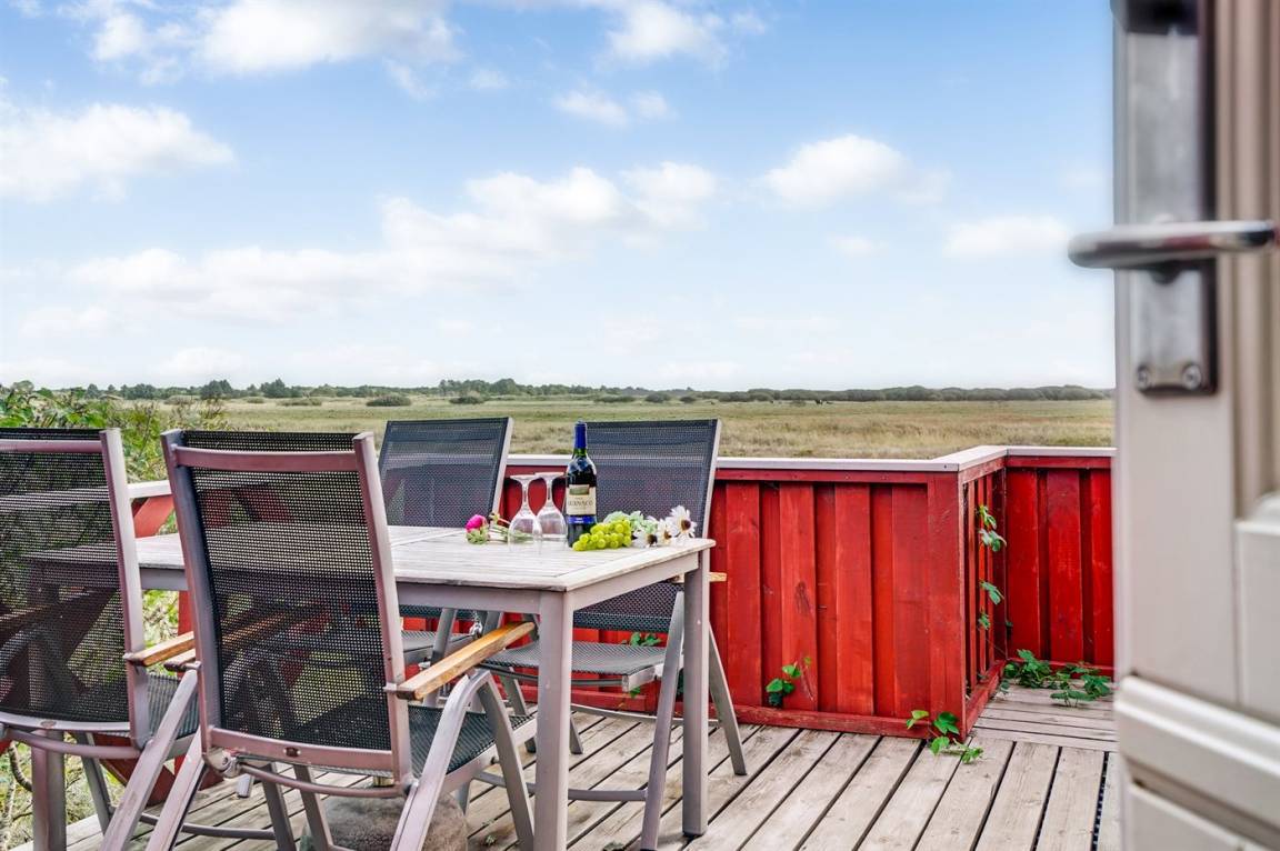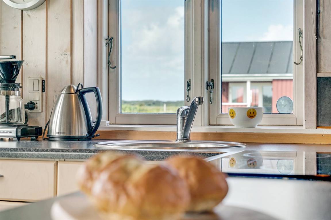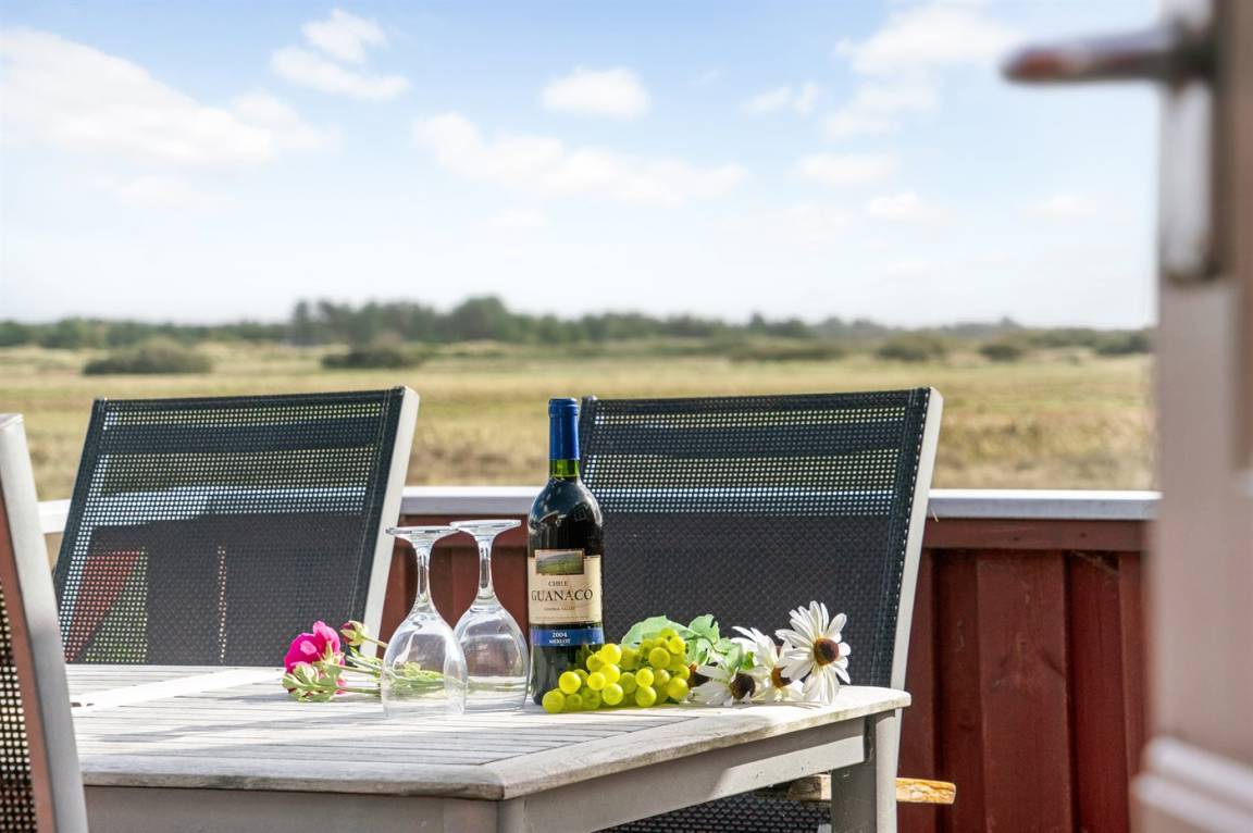 Dieses Ferienhaus aus Holz mit Meeresblick, 1950 gebaut und 2003 modernisiert, liegt auf einem Naturgrundstück nur 350 m von der Nordsee entfernt. Zum Haus gehört ein offenes Terrassenareal mit Gartenmöbeln, gutem Windschutz und einer schönen Aussicht über die Nordsee. Innen sind die Wände im Wohnzimmer mit Holz verkleidet. Badezimmer mit Fußbodenheizung, 2-Pers Whirlpool, Dusche, Waschmaschine und Wäschetrockner. Die schöne, offene und neurenovierte Küche ist mit dem Hellen Wohnzimmer kombiniert. Das Wohnzimmer ist mit Kaminofen, Stereoanlage mit CD-Spieler, großem Flatscreen TV mit Satellitenanschluss und DVD-Spieler ausgestattet. Die Schlafplätze verteilen sich auf 1 Zimmer mit Doppelbett sowie einer Doppelschlafcouch im Wohnzimmer. Es sind eine energiegerechte Wärmepumpe und ein Ladestecker für Elektroautos installiert (CEE Stecker).