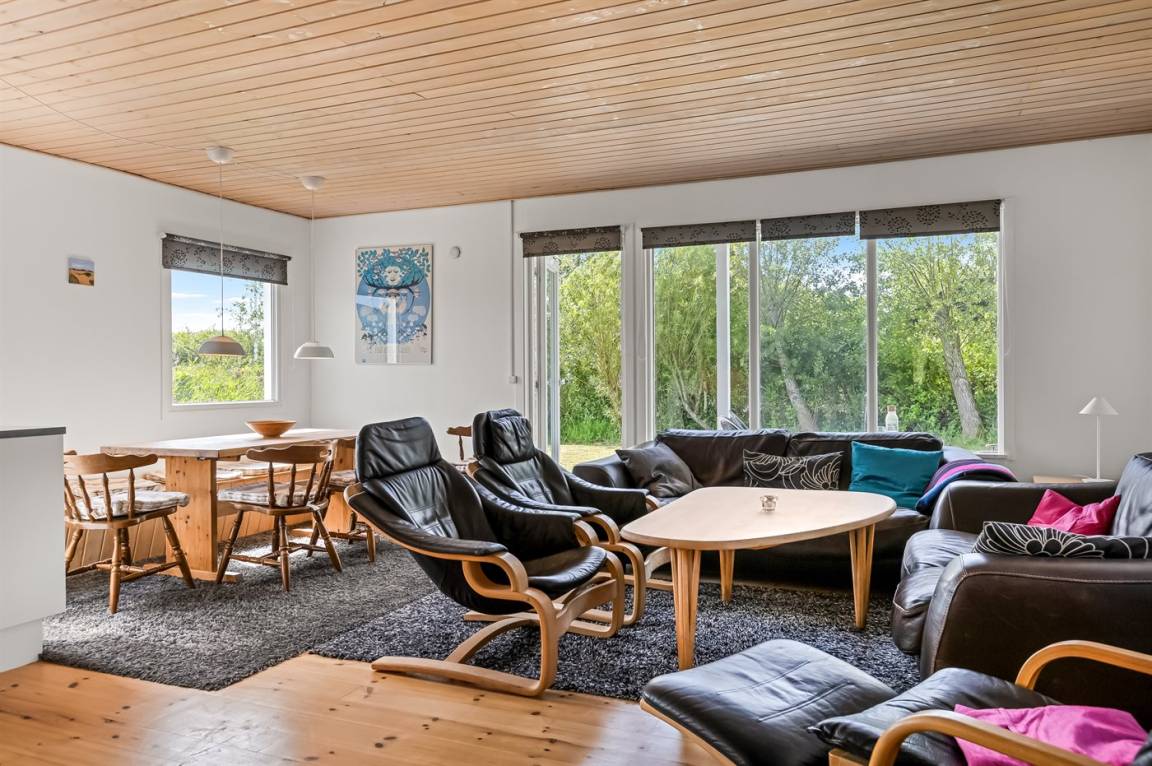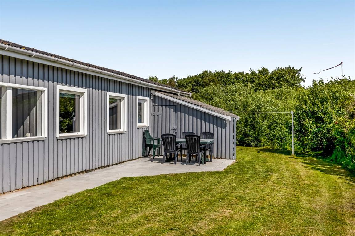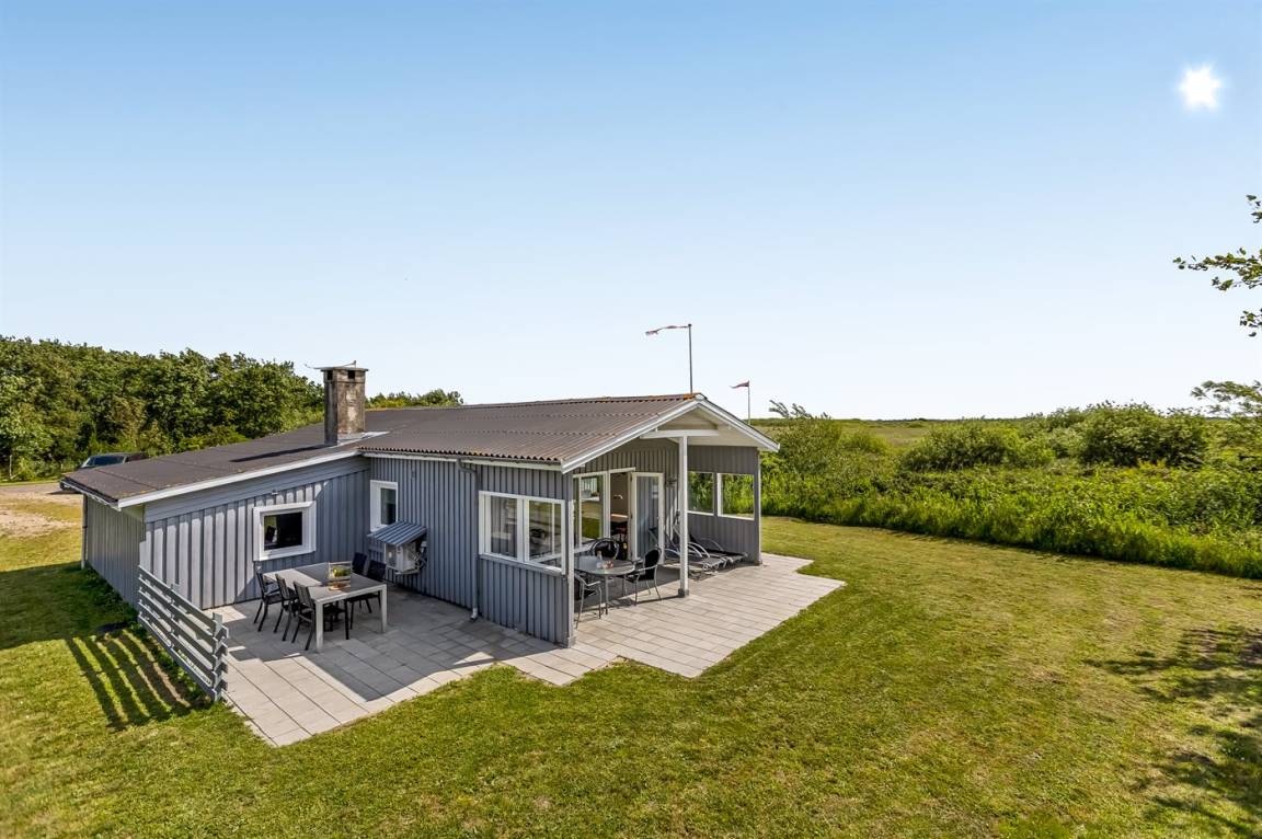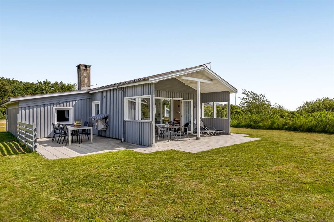 Dieses schöne Ferienhaus aus Holz, 1964 gebaut und 2003/2004 modernisiert, liegt auf einem Naturgrundstück nur 600 m vom Strand in Lakolk entfernt. Sowohl offene als überdachte Terrasse mit Gartenmöbeln.