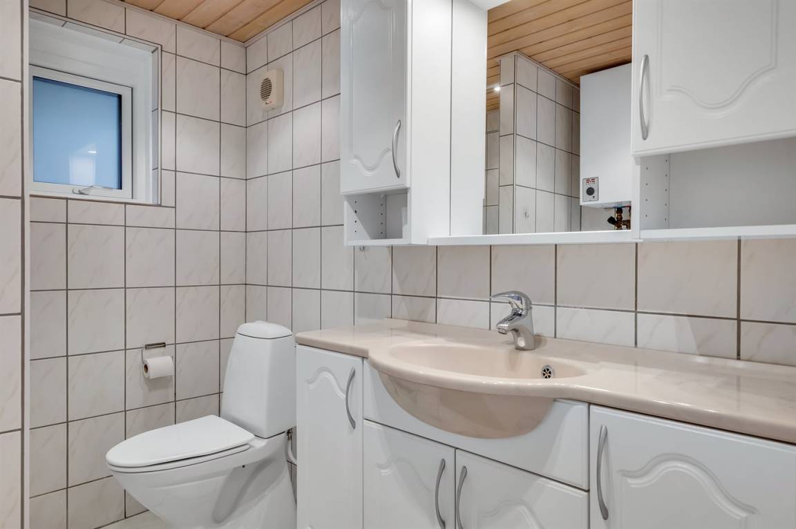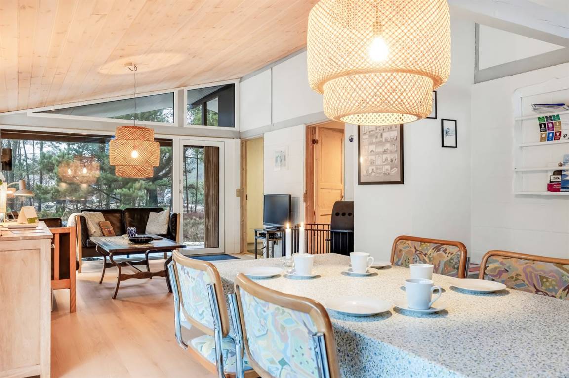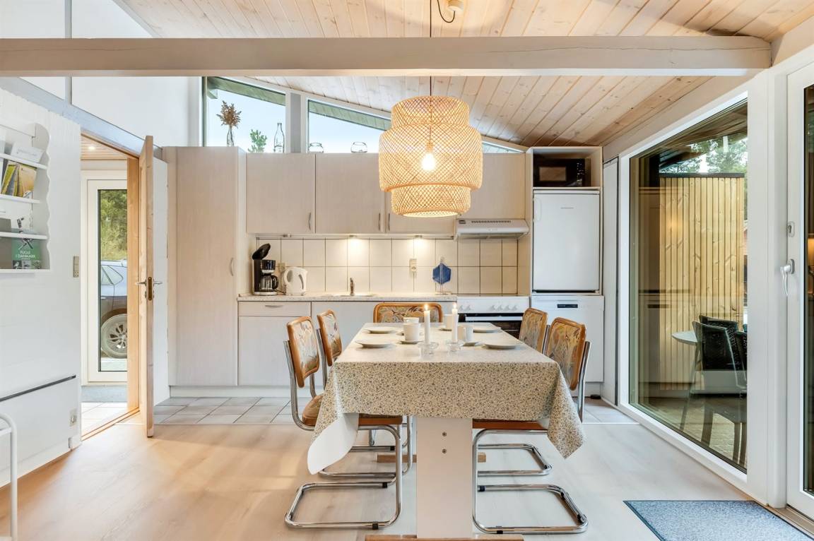 Im Inneren gibt es drei Schlafzimmer: vier Schlafplätze in Doppelbetten und zwei in einem Etagenbett. Ein Kinderbett sowie ausreichend Stauraum stehen ebenfalls zur Verfügung. Das Badezimmer ist mit Dusche, Toilette und Fußbodenheizung ausgestattet. Die Küche ist gut eingerichtet mit Kühlschrank, Herd, Backofen, Mikrowelle und Geschirrspüler. Außerdem sind Waschmaschine, Gefrierfach, Hochstuhl, Föhn, Wäscheständer und WLAN vorhanden. Im Wohnbereich gibt es einen Fernseher mit dänischen und deutschen Programmen; Apple TV oder Ähnliches kann angeschlossen werden.