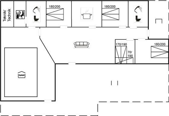 MultimedienIn der Ferienunterkunft gibt es einen Fernseher. DVD-Player. Stereoanlage. CD-Player. Mindestens 4 dänische Fernsehsender. Mindestens 4 deutsche Fernsehsender. Es steht kabellose Internetverbindung zur Verfügung.