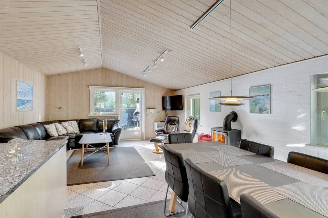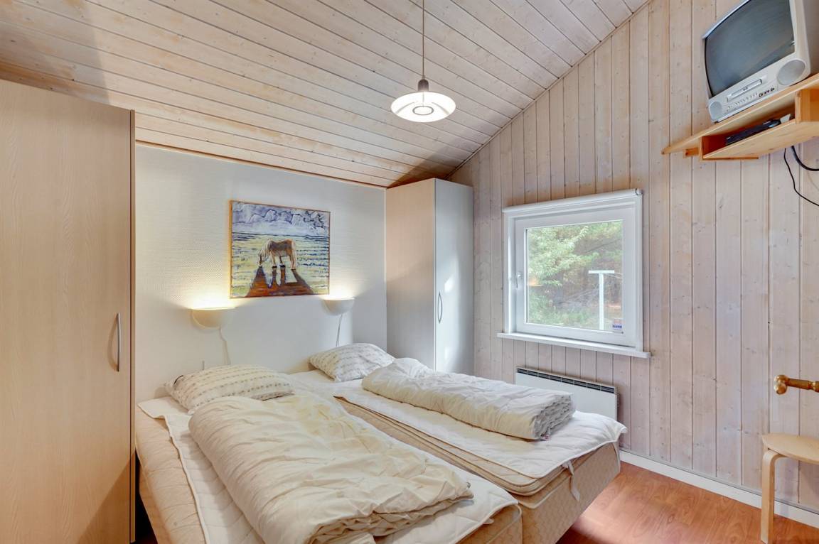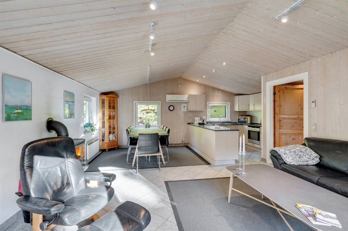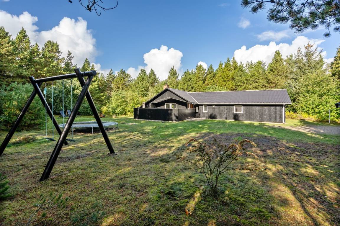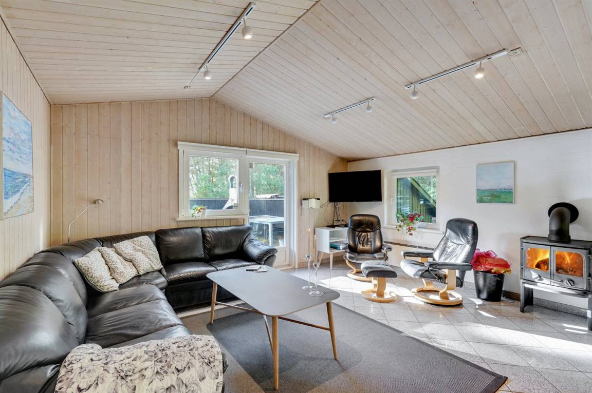 Dieses prachtvolle Ferienhaus aus Holz, 1999 gebaut, liegt auf einem großen, ungestörten Naturgrundstück. Zum Haus gehört eine schöne, abgeschirmte und teils überdachte Terrasse mit Gartenmöbeln. 2 schöne, große Badezimmer mit Dusche und Fußbodenheizung. Eins ist weiter mit 2-Pers. Whirlpool und direktem Zutritt zur Sauna ausgestattet, und in dem 2. Badezimmer gibt stehen Waschmaschine und Wäschetrockner zur Verfügung. Helle Küche mit u. a. Tiefkühlgerät, Geschirrspüler und Mikrowelle. Das gemütliche Wohnzimmer ist mit Qualitätsmöbeln sowie Kaminofen, TV mit Satellitenanschluss, DVD-Spieler und Stereoanlage mit CD-Spieler eingerichtet. Die Schlafplätze verteilen sich auf 4 Schlafzimmer; 2 mit Doppelbett, TV und DVD-Spieler, sowie 2 mit je 2 Einzelbetten. Seit 2008 gibt es einen neuen Multimediaraum mit kostenloser, kabelloser Internetverbindung (Computer ist mitzubringen) Flatscreen-TV mit Satellitenanschluss und Nintendo Wii sowie DVD-Spieler. Safety-Box vorhanden. Für die kleinen Feriengäste gibt es Kinderhochstuhl, Sandkasten, Schaukel und Spielhaus. Siehe auch Haus 29-2113.
