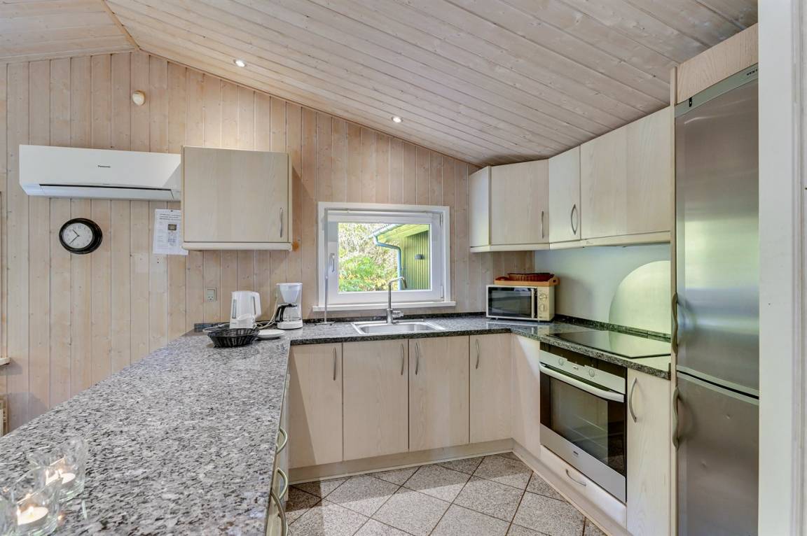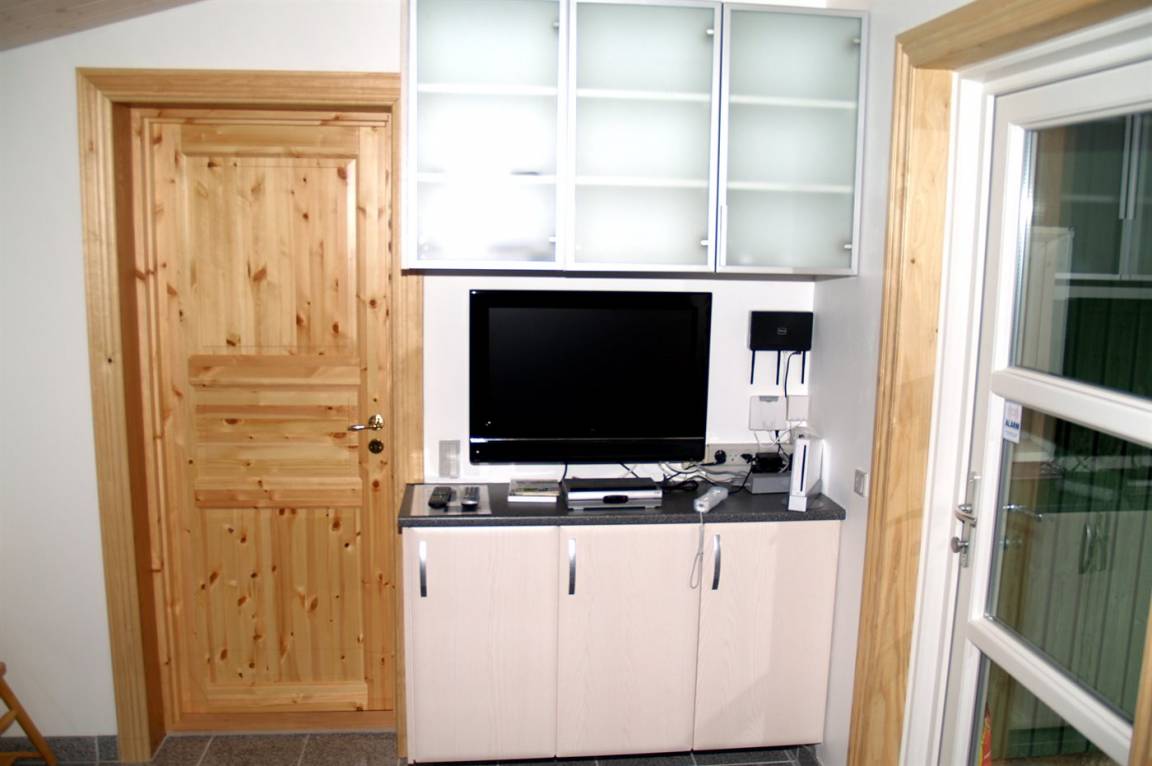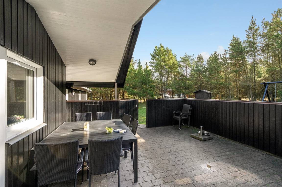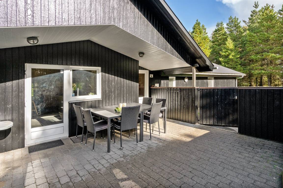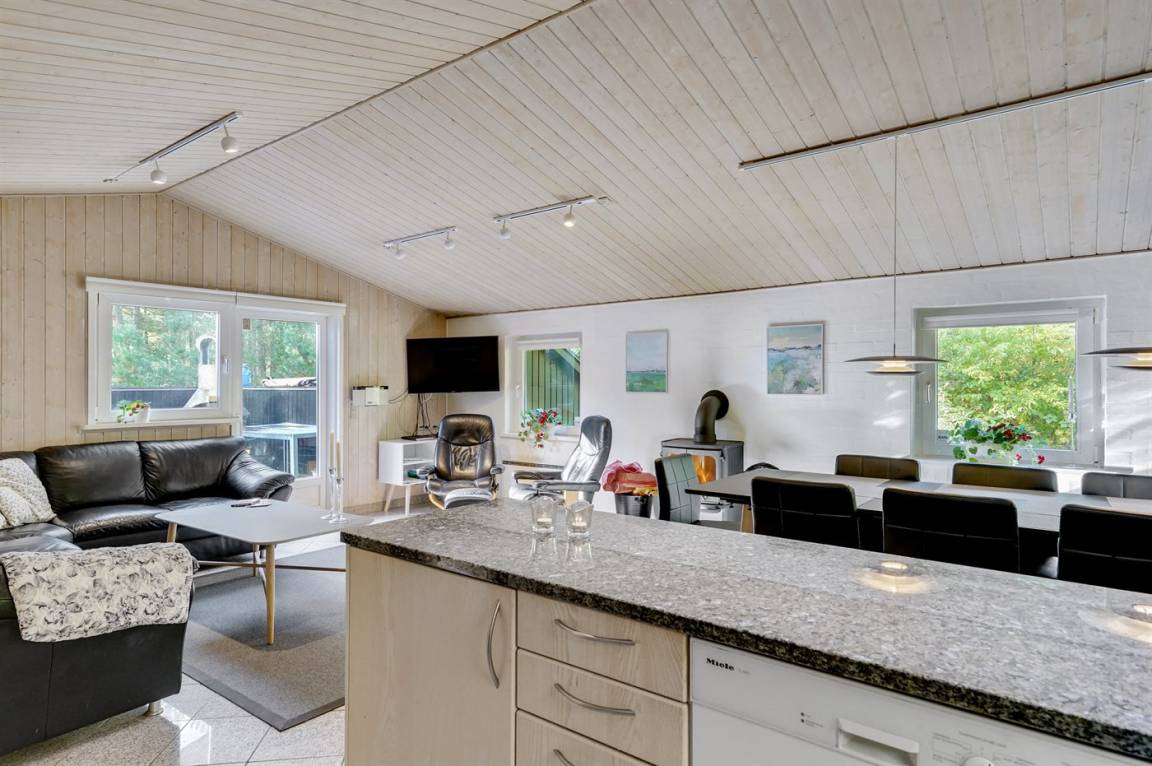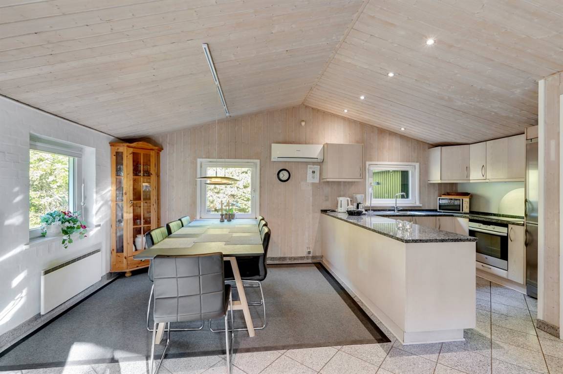 Dieses prachtvolle Ferienhaus aus Holz, 1999 gebaut, liegt auf einem großen, ungestörten Naturgrundstück. Zum Haus gehört eine schöne, abgeschirmte und teils überdachte Terrasse mit Gartenmöbeln. 2 schöne, große Badezimmer mit Dusche und Fußbodenheizung. Eins ist weiter mit 2-Pers. Whirlpool und direktem Zutritt zur Sauna ausgestattet, und in dem 2. Badezimmer gibt stehen Waschmaschine und Wäschetrockner zur Verfügung. Helle Küche mit u. a. Tiefkühlgerät, Geschirrspüler und Mikrowelle. Das gemütliche Wohnzimmer ist mit Qualitätsmöbeln sowie Kaminofen, TV mit Satellitenanschluss, DVD-Spieler und Stereoanlage mit CD-Spieler eingerichtet. Die Schlafplätze verteilen sich auf 4 Schlafzimmer; 2 mit Doppelbett, TV und DVD-Spieler, sowie 2 mit je 2 Einzelbetten. Seit 2008 gibt es einen neuen Multimediaraum mit kostenloser, kabelloser Internetverbindung (Computer ist mitzubringen) Flatscreen-TV mit Satellitenanschluss und Nintendo Wii sowie DVD-Spieler. Safety-Box vorhanden. Für die kleinen Feriengäste gibt es Kinderhochstuhl, Sandkasten, Schaukel und Spielhaus. Siehe auch Haus 29-2113.