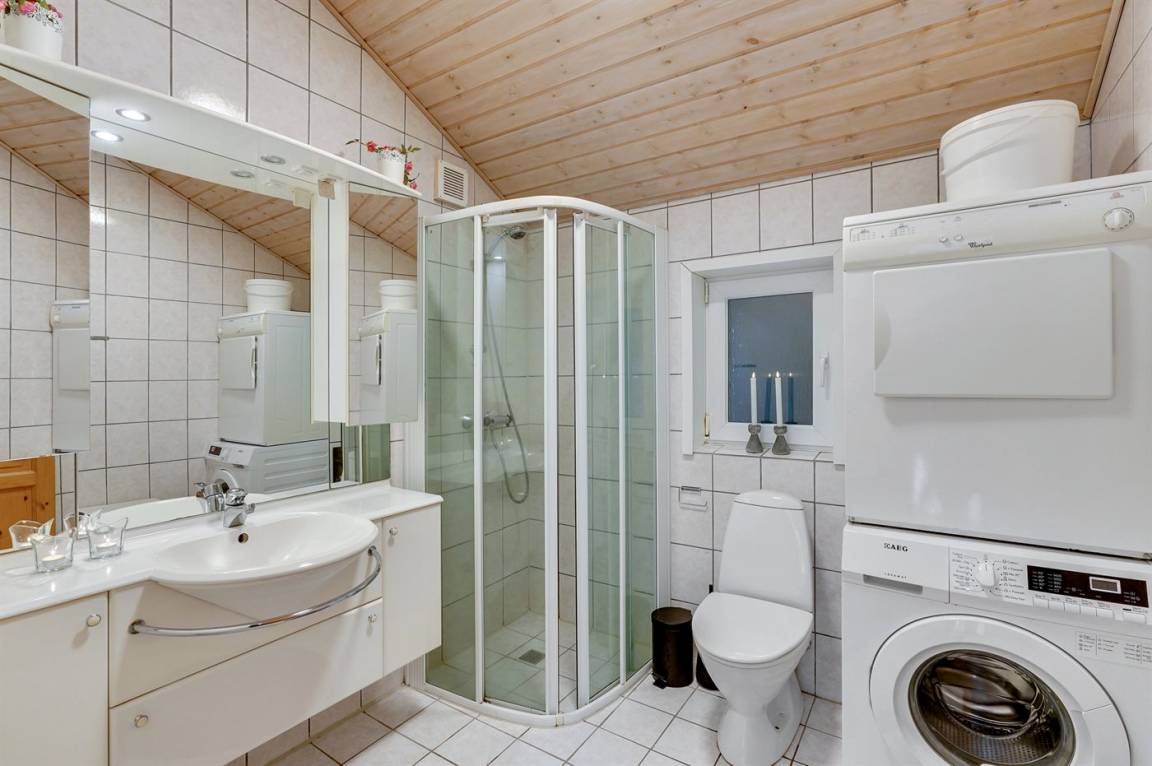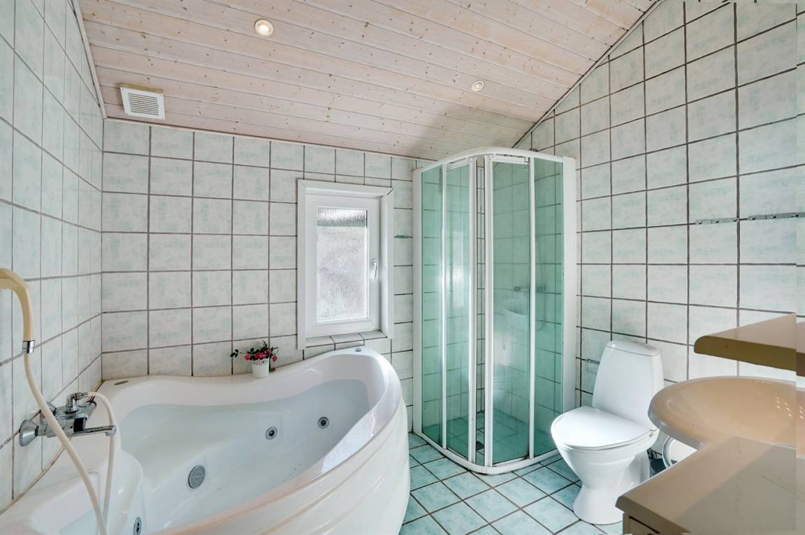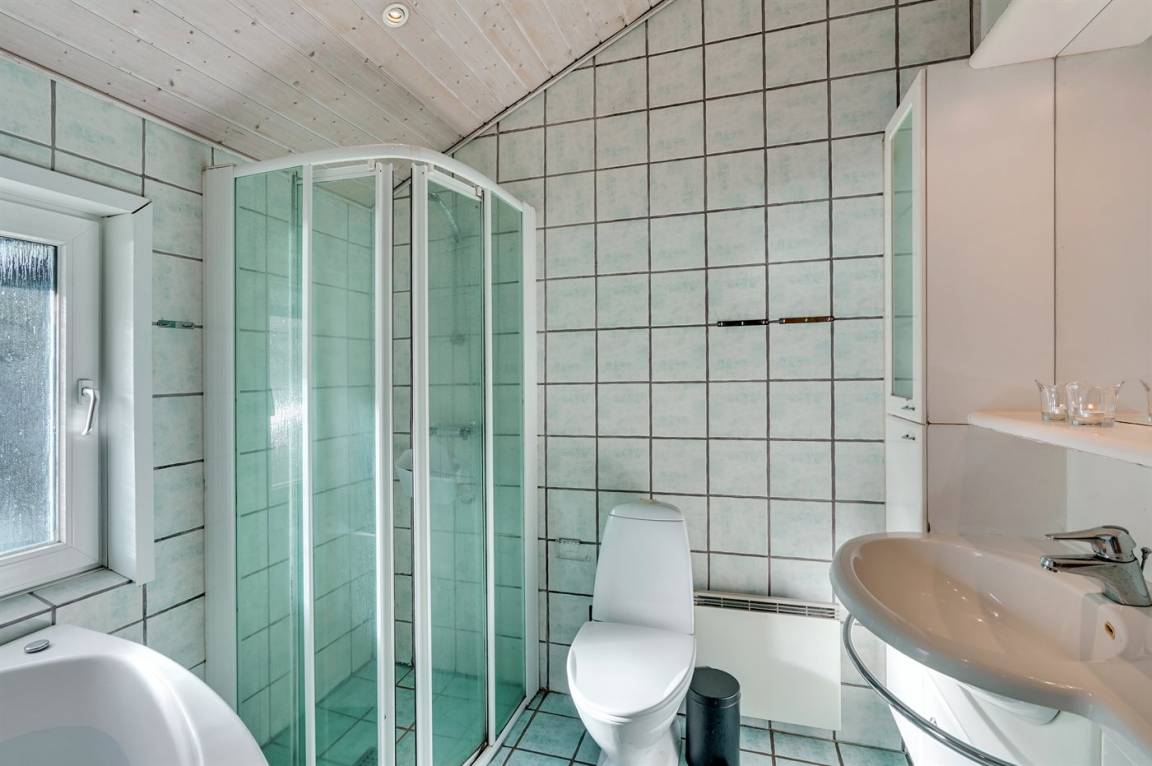 „Advice to other guests: Der Wohnbereich für 8 Personen ist beengt. Die Badewanne im großen Badezimmer nicht benutzbar und die Duschen in keinen guten Zustand. Die Waschbecken und Badeschränke dagegen gut. Der Fußboden war sauber. Die Spülmaschine haben wir erst ausgeräumt und mit den Staubsauger die Wände und Gazen im Fenster abgesaugt sowie die Fensterbänke von innen und außen gesäubert. Ansonsten war im Haus alles vorhanden. Sogar ausreichende Staubsaugerbeutel. The vacation at the holiday home: Die Sauberkeit des Hauses. Ich möchte aber betonen, dass das Reinigungspersonal nicht die Schuld trifft. Es waren die vielen Spinnenweben überall an den Wänden und auch an den Lampen. Die Fenster waren in einem sehr ungepflegten Zustand. Wir hatten den Eindruck, dass lange keiner in dem Haus gewohnt hat. In Sondervig oder Hvide Sande gefällt es uns besser.“