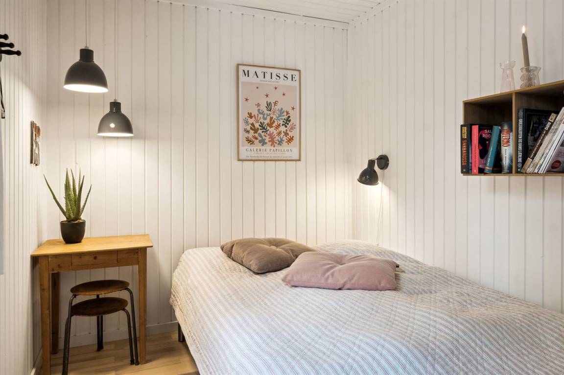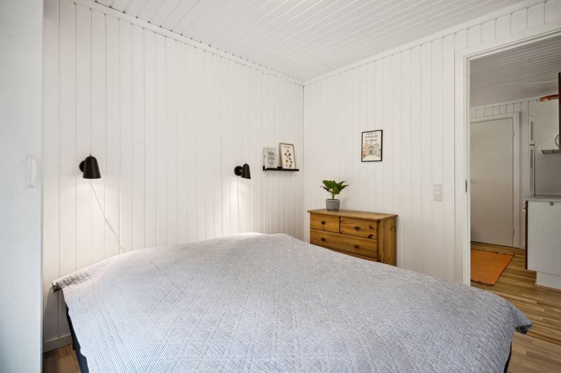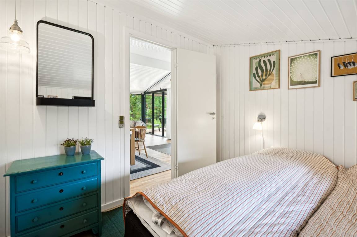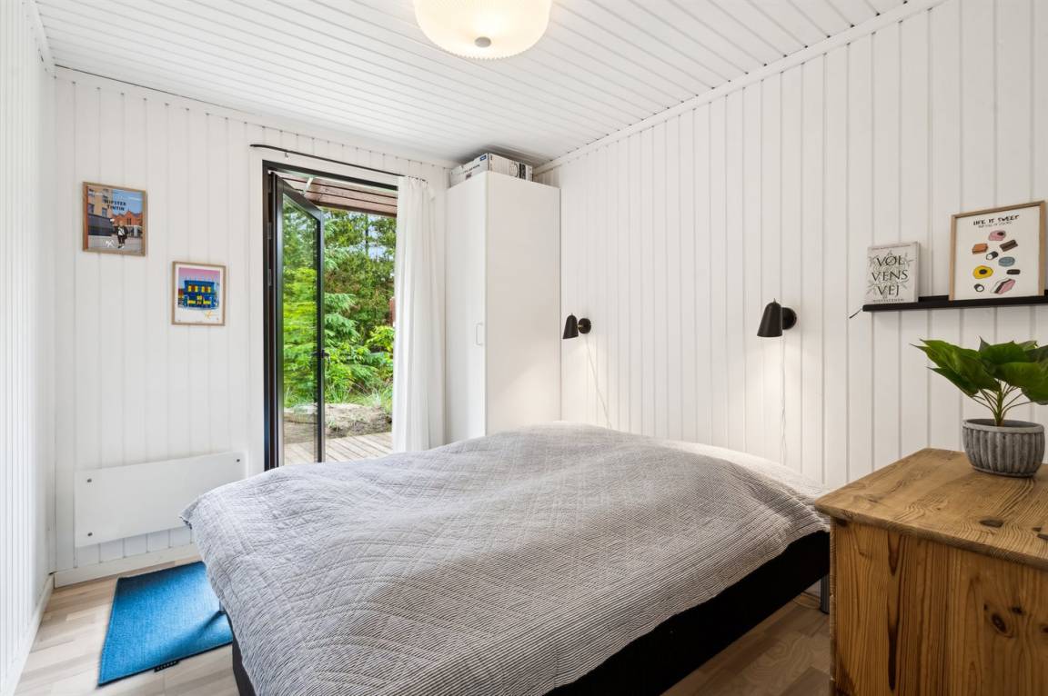 Es gibt insgesamt 3 Schlafzimmer im Ferienhaus, die Schlafplätze verteilen sich wie folgt: 2 × 2 Schlafplätze im Doppelbett à 160 × 200 cm und 2 Schlafplätze im Doppelbett à 140 × 200 cm.