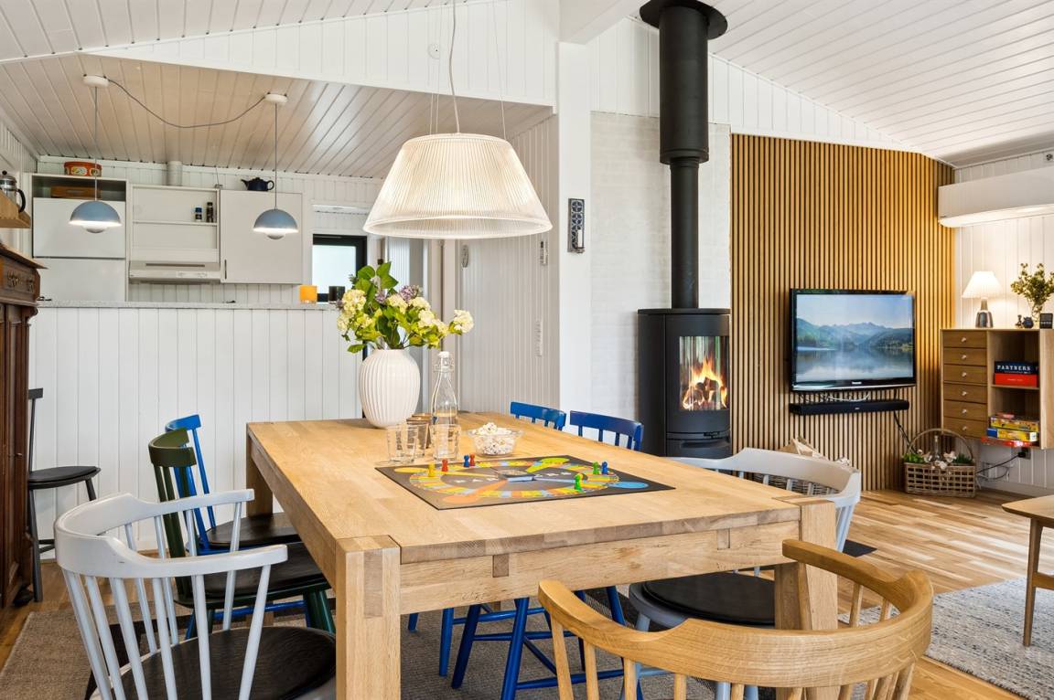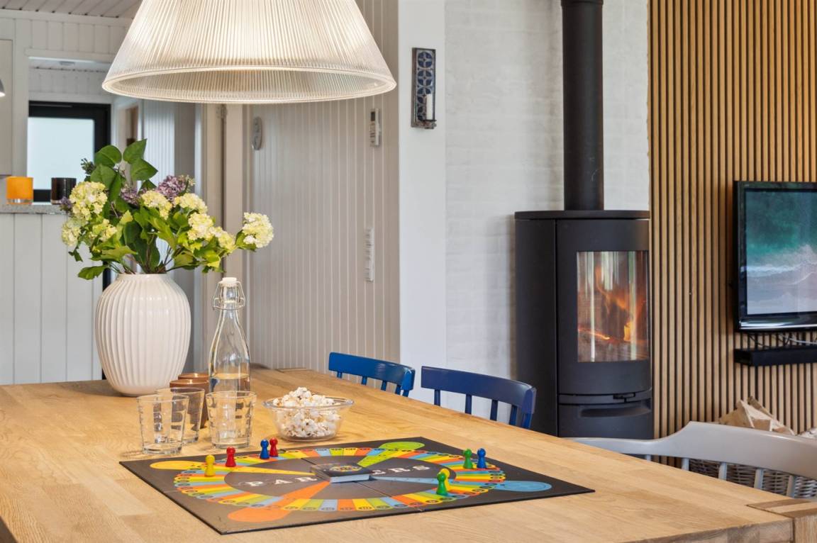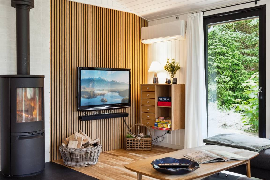 Im Wohnzimmer gibt es einen neuen, hocheffizienter Kaminofen mit optimaler Verbrennung. Es steht ein TV zur Verfügung. Die damit verbundene Soundbar kann auch als Lautsprecher zum Streamen von Musik vom Handy oder iPad genutzt werden. Auch seine Lieblingsfernsehsender kann man streamen.