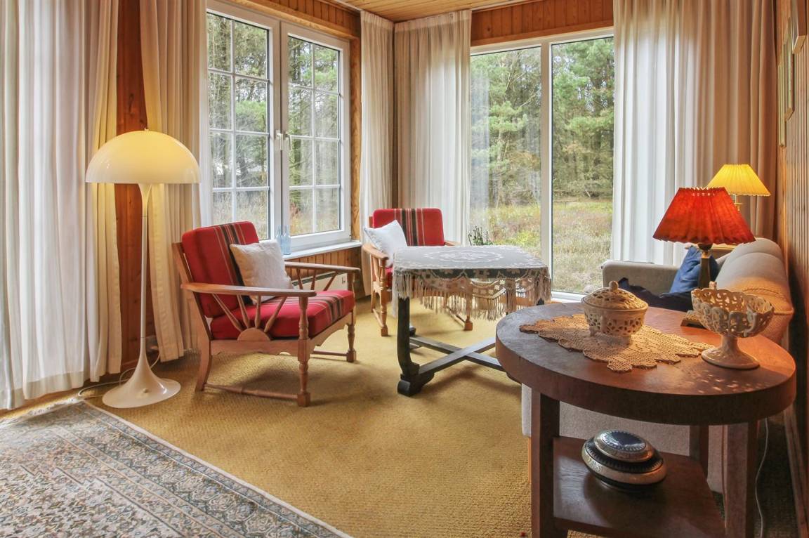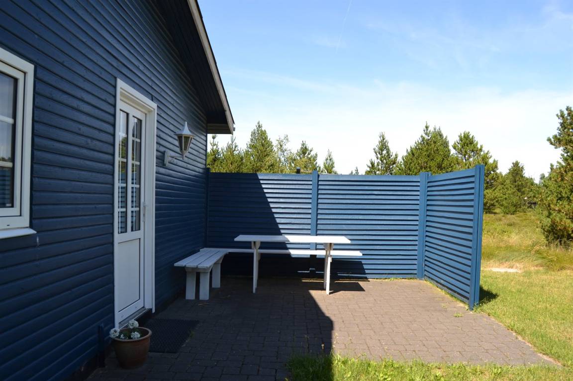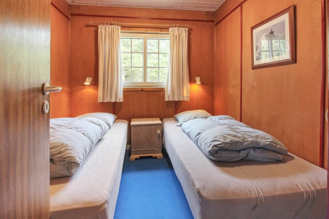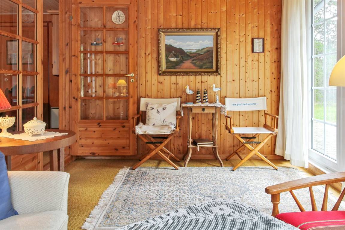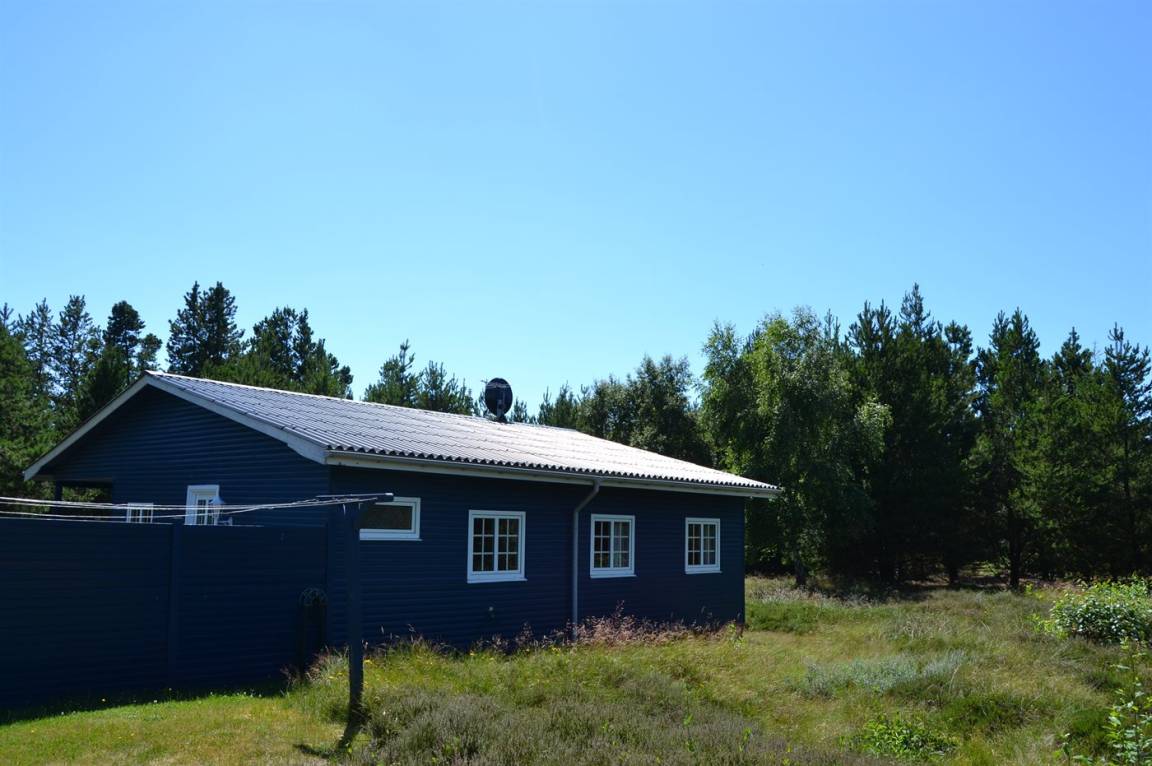 Nettes Ferienhaus aus Holz, 1969 gebaut und 2000 renoviert mit u. a. neuen Thermofenstern, auf einem ungestörten Naturgrundstück in der schönen Natur bei Sønderstrand gelegen. Zum Haus gehört sowohl offene als auch überdachte Terrasse mit Gartenmöbeln sowie ein schöner Wintergarten. Neues Badezimmer (2006) mit Dusche. Die separate Küche ist u. a. mit Tiefkühlgerät ausgestattet. Das Wohnzimmer, von dem Sie die Aussicht auf die Natur mit ihrem reichen Tierleben genießen können, enthält Stereoanlage mit CD-Spieler und TV mit digitalem Satellitenanschluss. 3 Schlafzimmer, alle mit je 2 Einzelbetten. Das Haus liegt im Gehabstand zum Strand und in einem Gebiet das zu Spaziergängen einlädt.