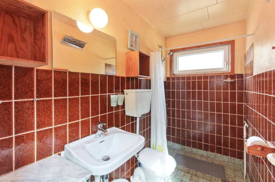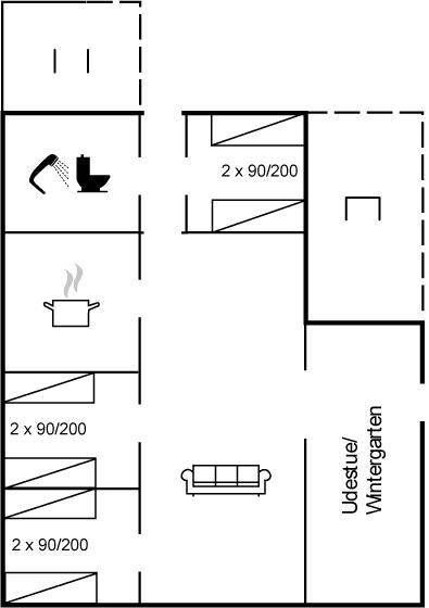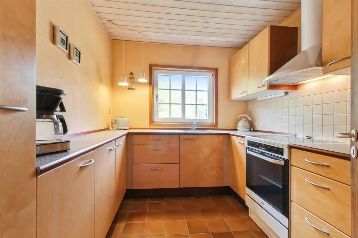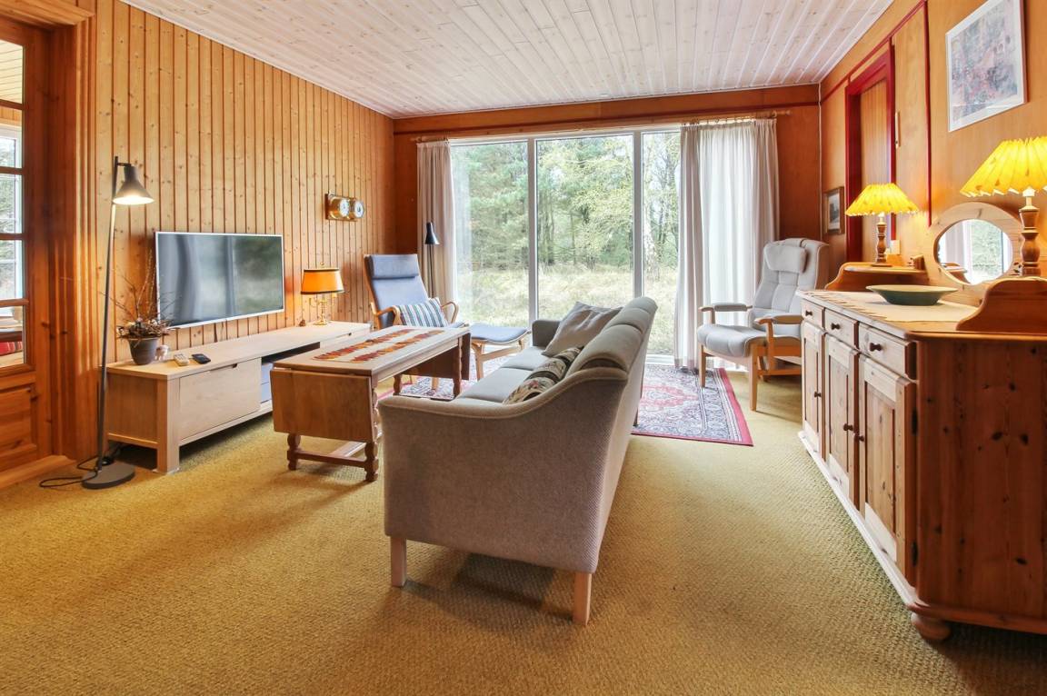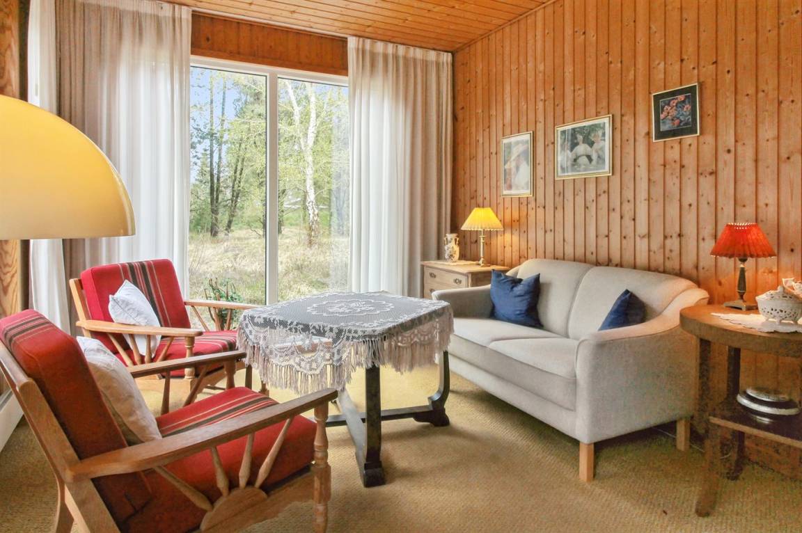 Nettes Ferienhaus aus Holz, 1969 gebaut und 2000 renoviert mit u. a. neuen Thermofenstern, auf einem ungestörten Naturgrundstück in der schönen Natur bei Sønderstrand gelegen. Zum Haus gehört sowohl offene als auch überdachte Terrasse mit Gartenmöbeln sowie ein schöner Wintergarten. Neues Badezimmer (2006) mit Dusche. Die separate Küche ist u. a. mit Tiefkühlgerät ausgestattet. Das Wohnzimmer, von dem Sie die Aussicht auf die Natur mit ihrem reichen Tierleben genießen können, enthält Stereoanlage mit CD-Spieler und TV mit digitalem Satellitenanschluss. 3 Schlafzimmer, alle mit je 2 Einzelbetten. Das Haus liegt im Gehabstand zum Strand und in einem Gebiet das zu Spaziergängen einlädt.