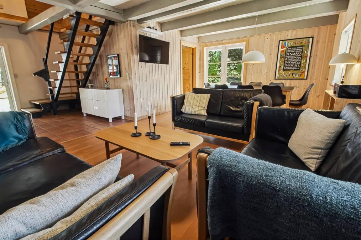 Im nett eingerichteten Wohnzimmer gibt es u. a. TV mit Satellitenanschluss, Kaminofen und Zutritt zur Terrasse. Die Schlafplätze verteilen sich auf 4 schöne Schlafzimmer; 2 mit Doppelbett, 1 mit 2 Einzelbetten und 1 mit Etagenbett. Zusätzliches TV mit Satellitenanschluss. Waschmaschine und Wäschetrockner vorhanden.