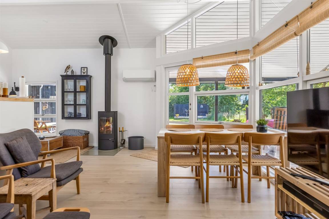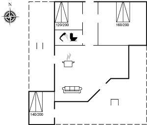 EinrichtungDas Ferienhaus eignet sich für 6 Personen. Die Ferienunterkunft hat eine Wohnfläche von 75 m² und wurde 1974 gebaut. Haustiere dürfen nicht mitgebracht werden. Die Ferienunterkunft ist mit energiesparender Wärmepumpe ausgestattet. Tiefkühlmöglichkeit mit 110 Liter Nutzinhalt. Es gibt außerdem einen Kaminofen.