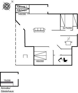 SchlafverhältnisseDie Schlafplätze verteilen sich auf 3 Schlafräume. 2 Schlafplätze in einem Doppelbett. 2 Schlafplätze in Einzelbetten. 2 Schlafplätze in einem Etagenbett.2 Schlafplätze im Alkoven. - 2 von diesen Schlafplätzen befinden sich im Gästehaus.