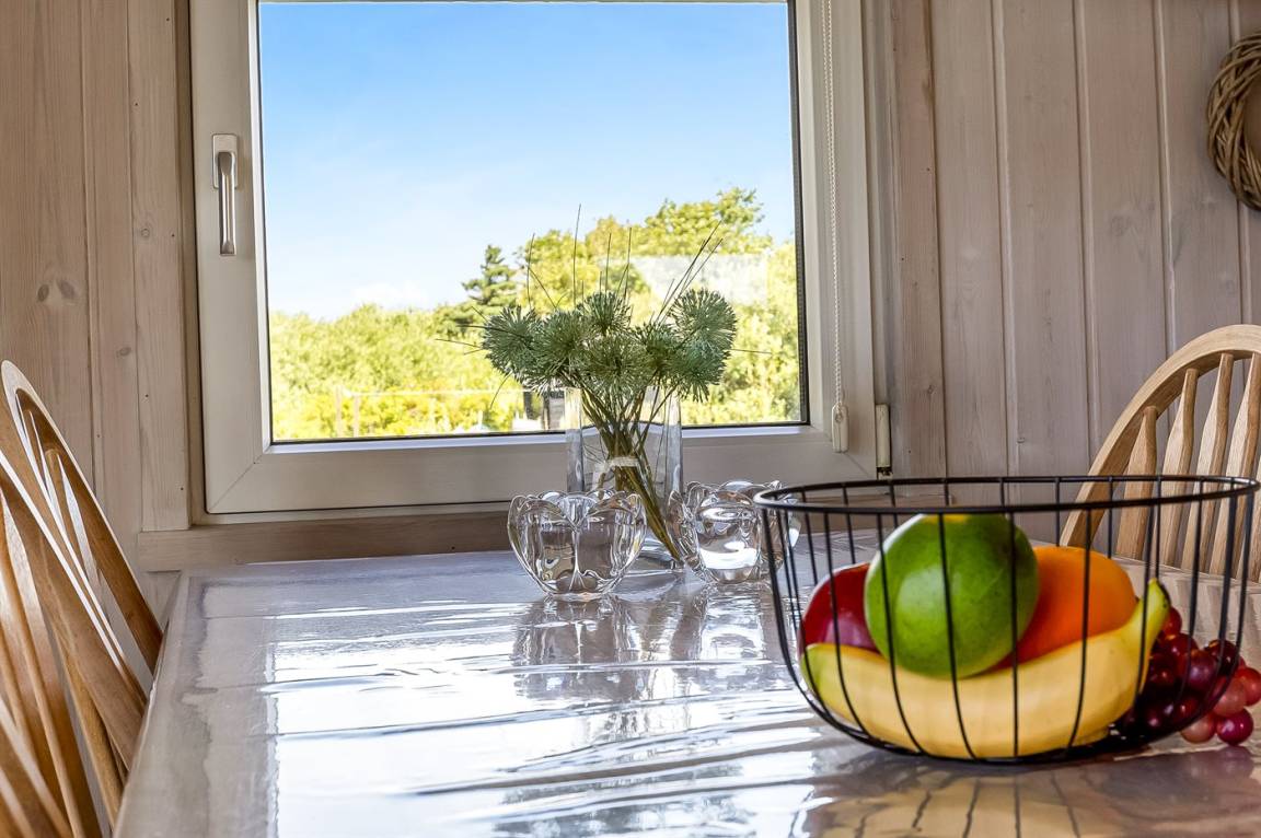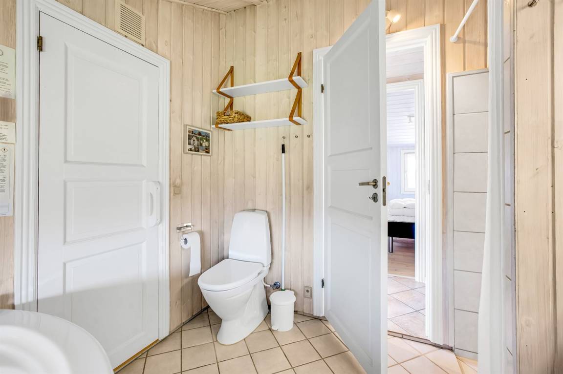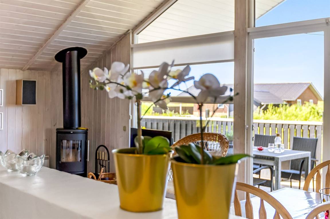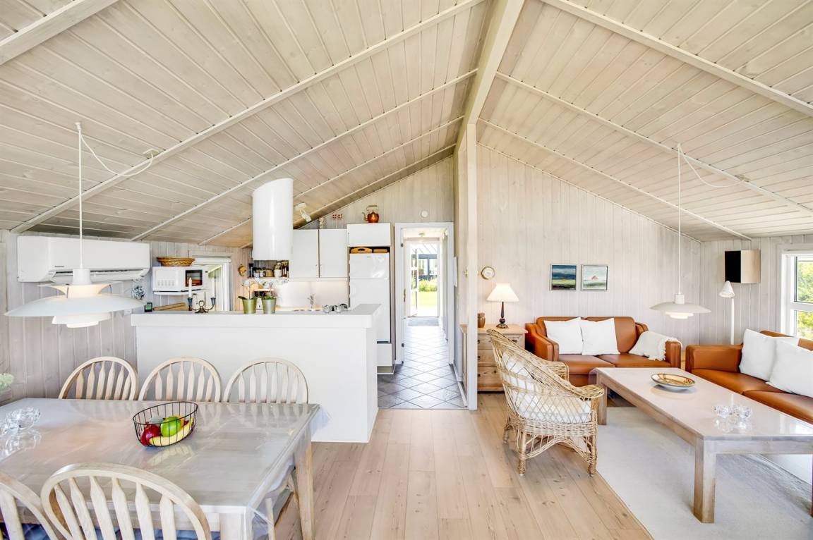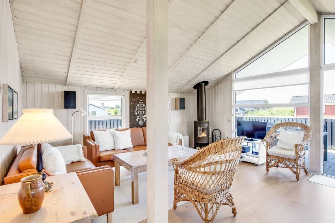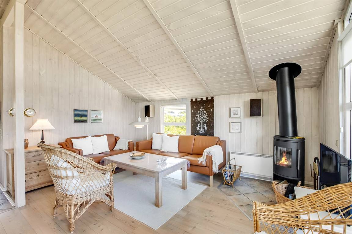Das gemütliche Wohnzimmer ist mit einem Kaminofen, Radio, Stereoanlage mit CD-Player, Smart-TV, Chromecast und Satellitenanschluss ausgestattet. Es gibt mindestens 4 dänische und 4 deutsche sowie norwegische und schwedische Fernsehsender. WLAN steht zur Verfügung.