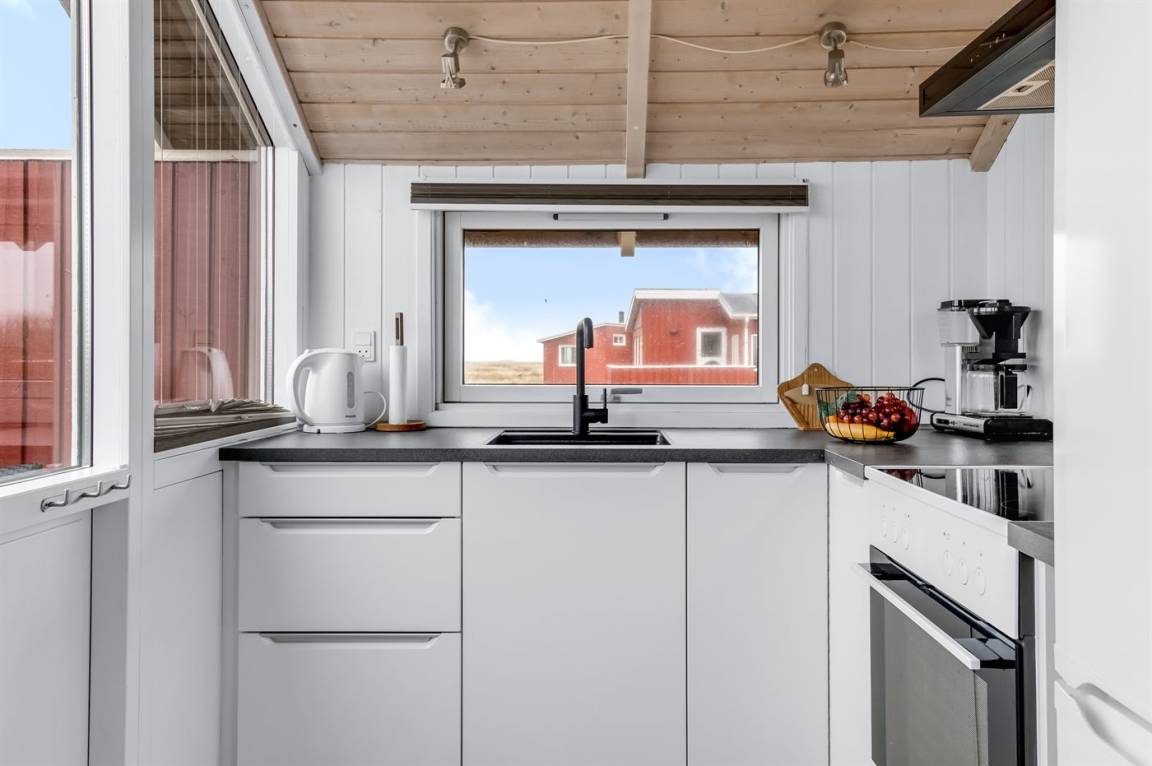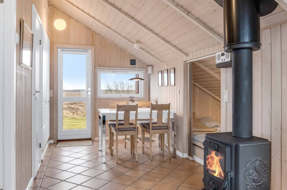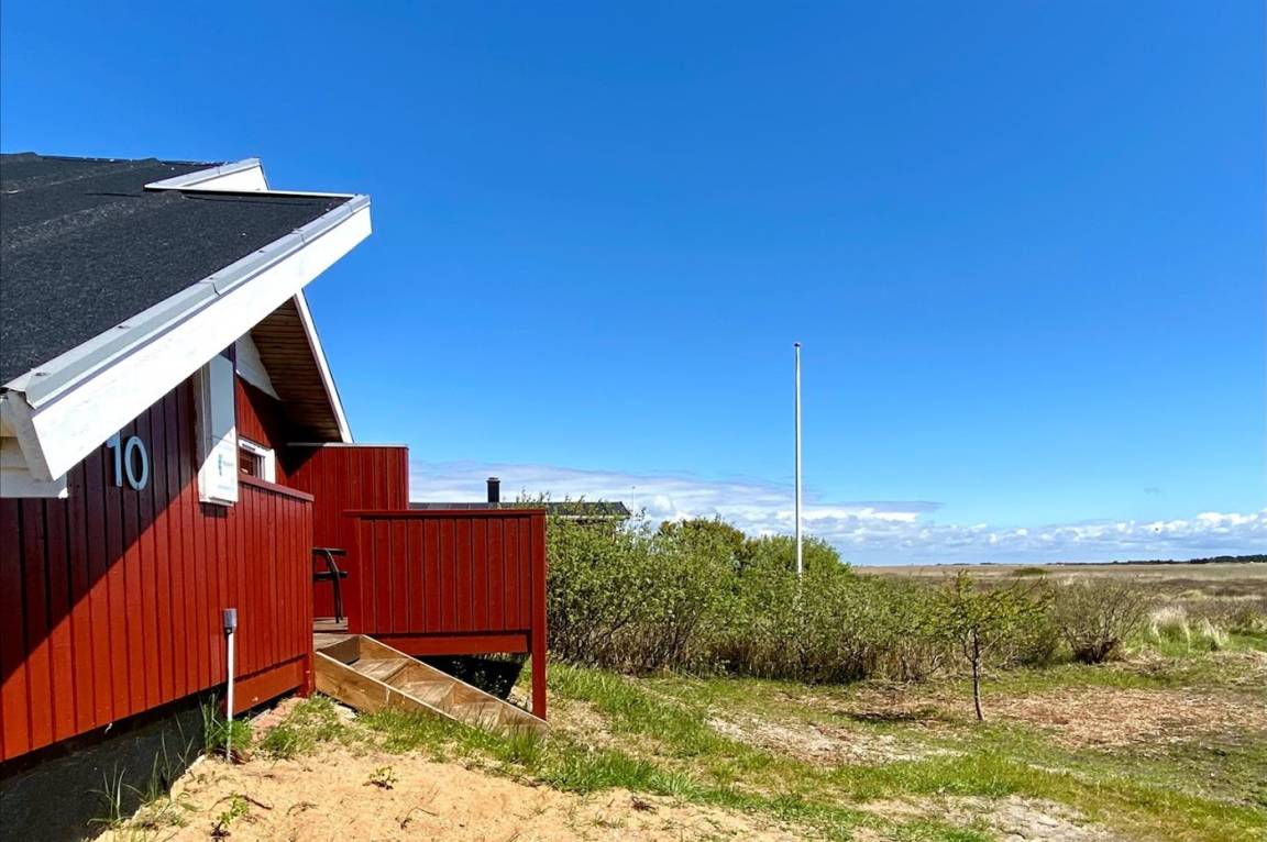 Dieses schöne Ferienhaus mit Aussicht zum Naturschutzgebiet gen Osten und das Meer gen Westen liegt auf einem 674 m² grossen Naturgrundstück - nur 400 m vom schönen breiten und kinderfreundlichen Sandstrand von Lakolk entfernt. Das Ferienhaus eignet sich für 4 Personen, und es ist erlaubt, 2 Haustiere mitzubringen. Die Ferienunterkunft mit einer Wohnfläche von 39 m² wurde 2003 gebaut und 2020 umfangreich renoviert. Trotz der begrenzten Wohnfläche steht ausreichend Stauraum zu Verfügung. Die Fußbodenheizung ist in allen Räumen individuell einstellbar. Darüberhinaus steht für die kältere Jahreszeit ein Kaminofen für wohlige Wärme zu Verfügung. Die nächste Einkaufsmöglichkeit liegt 400 m entfernt. Ein Geräteraum als Stauraum und ein Parkplatz auf dem Grundstück stehen zur Verfügung. Es gibt einen Schlafraum mit 2 Schlafplätzen in einem Doppelbett und 2 Schlafplätze im Alkoven . Die Küche ist mit einer geräumigen Kühl- Gefrierkombination, Kaffeemaschine, 4 elektrischen Kochplatten, Backofen und umfangreichen Küchenutensilien ausgestattet. Es gibt 1 Badezimmer mit Dusche,