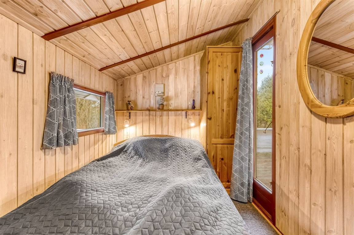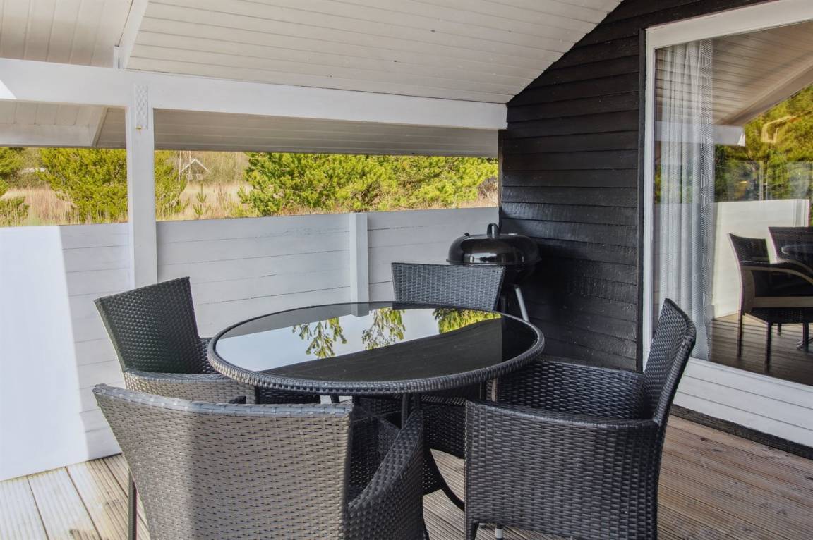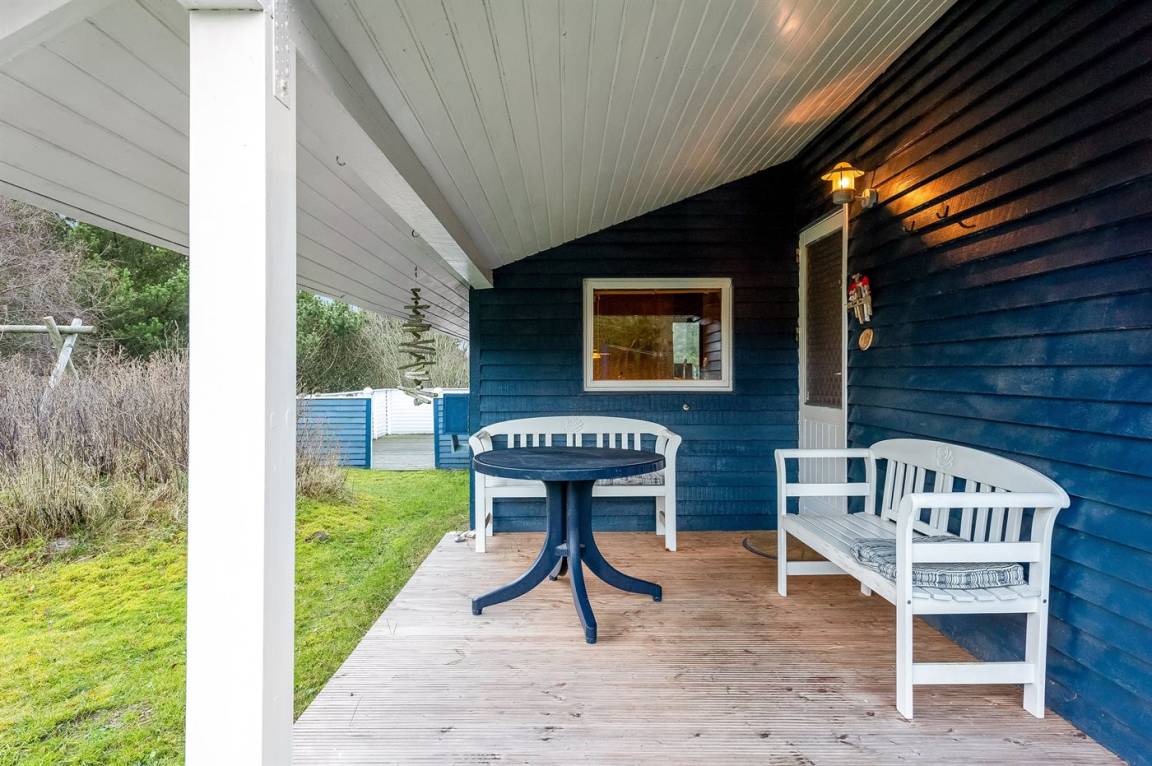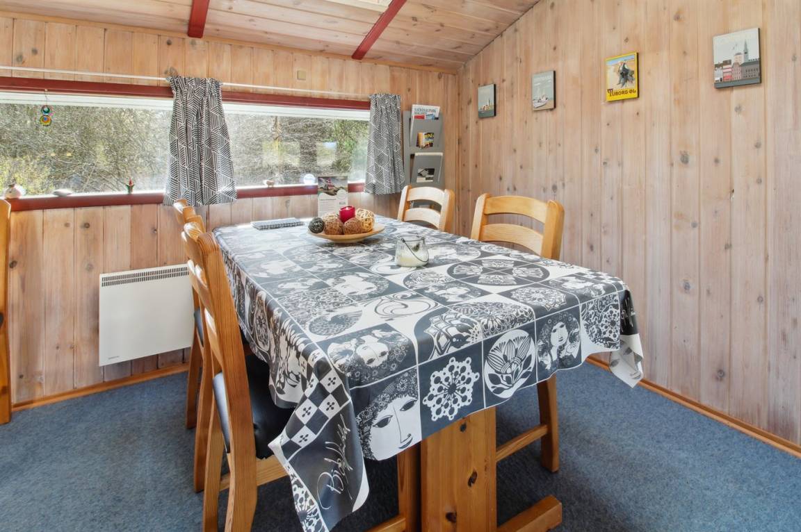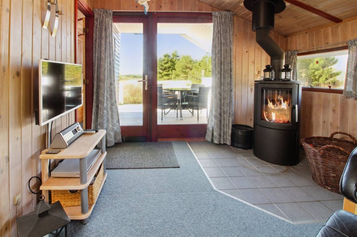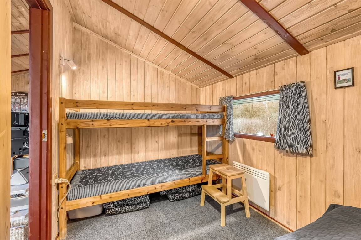 Es gibt eine offene Küche im Zusammenhang mit dem Wohnzimmer, in dem sich ein Holzofen befindet und Zugang zu einer großen nach Süden ausgerichteten Terrasse besteht. Von der Terrasse aus hat man einen Blick auf die herrliche Natur und die schönen mit Heide bewachsenen Flächen, die das Haus umgeben. Das Haus verfügt über zwei Schlafzimmer mit jeweils einem Doppelbett und zwei Einzelbetten sowie einem Etagenbett. Es gibt ein schönes Badezimmer mit Dusche und direktem Zugang zur Sauna des Hauses.