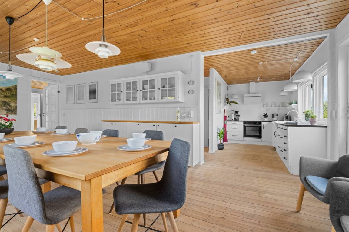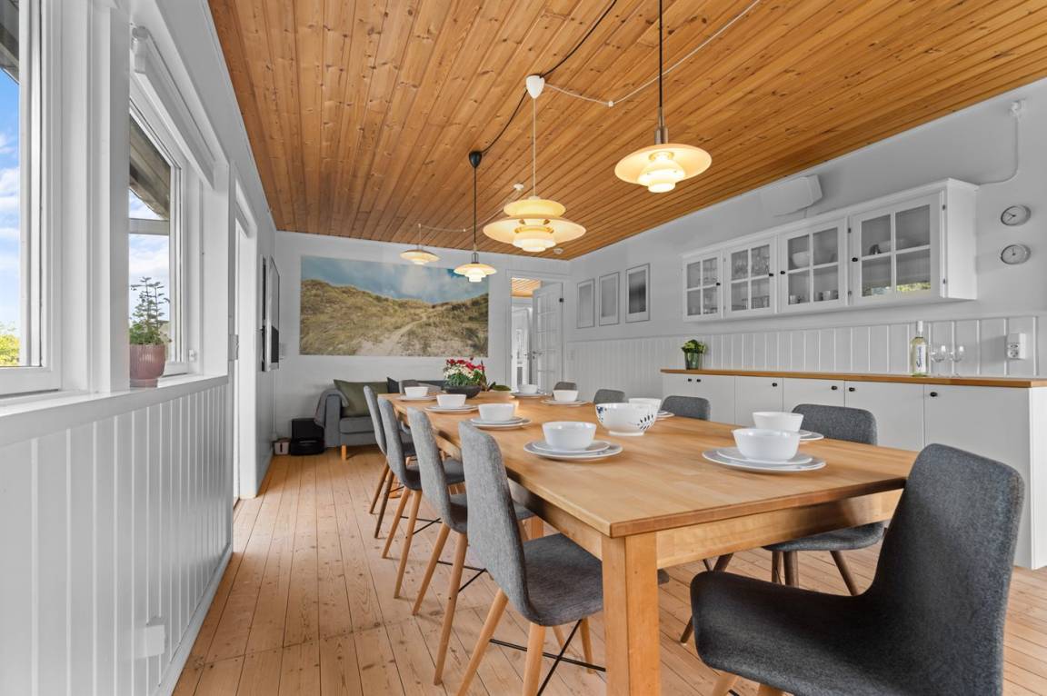 EinrichtungDas Ferienhaus eignet sich für 12 Personen. Die Ferienunterkunft hat eine Wohnfläche von 200 m², ist 2-stöckig, und wurde 1962 gebaut. 2006 wurde die Ferienunterkunft renoviert. 2021 wurde die Ferienunterkunft teilweise renoviert. Haustiere dürfen nicht mitgebracht werden. Die Ferienunterkunft ist mit energiesparender Wärmepumpe ausgestattet. Fußbodenheizung in allen Klinkerböden. Die Ferienunterkunft ist mit Waschmaschine ausgestattet. Wäschetrockner. Tiefkühlmöglichkeit mit 200 Liter Nutzinhalt. Es gibt außerdem einen Kaminofen.