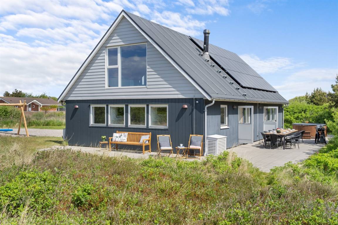 Es erwartet Sie ein super eingerichtetes und sehr helles Ferienhaus mit viel natürlichem Licht, das auf 200 m² bequem Platz für 12 Personen bietet. Aufgrund der guten Aufteilung der Zimmer und der zwei modernen Bäder lässt sich das Haus auch wunderbar für einen gemeinsamen Urlaub mit zwei Familien nutzen. Die Küche ist ebenfalls neu und modern eingerichtet - die Eigentümer kochen und backen gerne! Das Haus verfügt auch über eine beheizte Hot-Tub auf der Südterrasse.