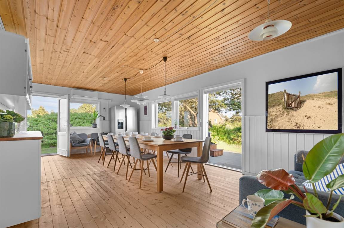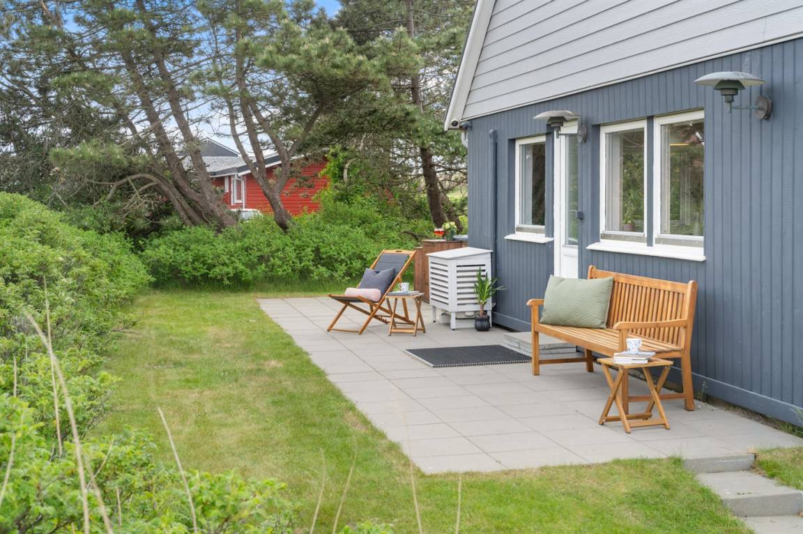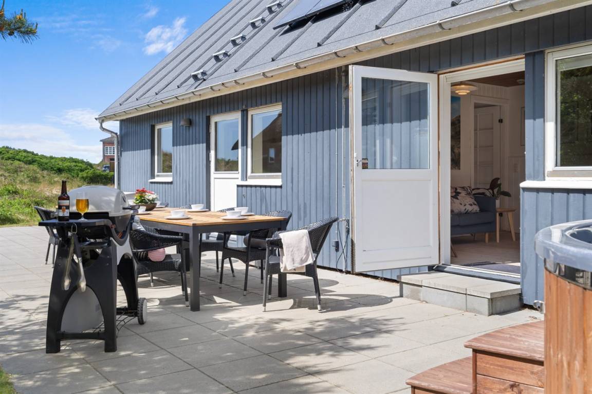 Das Haus liegt in Römös schönster und meist gefragten Gegend, in der Dünen- und Heidelandschaft auf der Westseite von Lakolk. Der 500 Meter Fussweg zum Strand durch wunderschöne Landschaft startet direkt an der Terasse. Ebenfalls ist das Lakolk Butikcenter mit seinen Cafés, Dänemarks bester Eisdiele, Supermarkt und vielen anderen Einkaufsmöglichkeiten über einen 500m Spaziergang durch Römös herrlichste Natur zu erreichen.