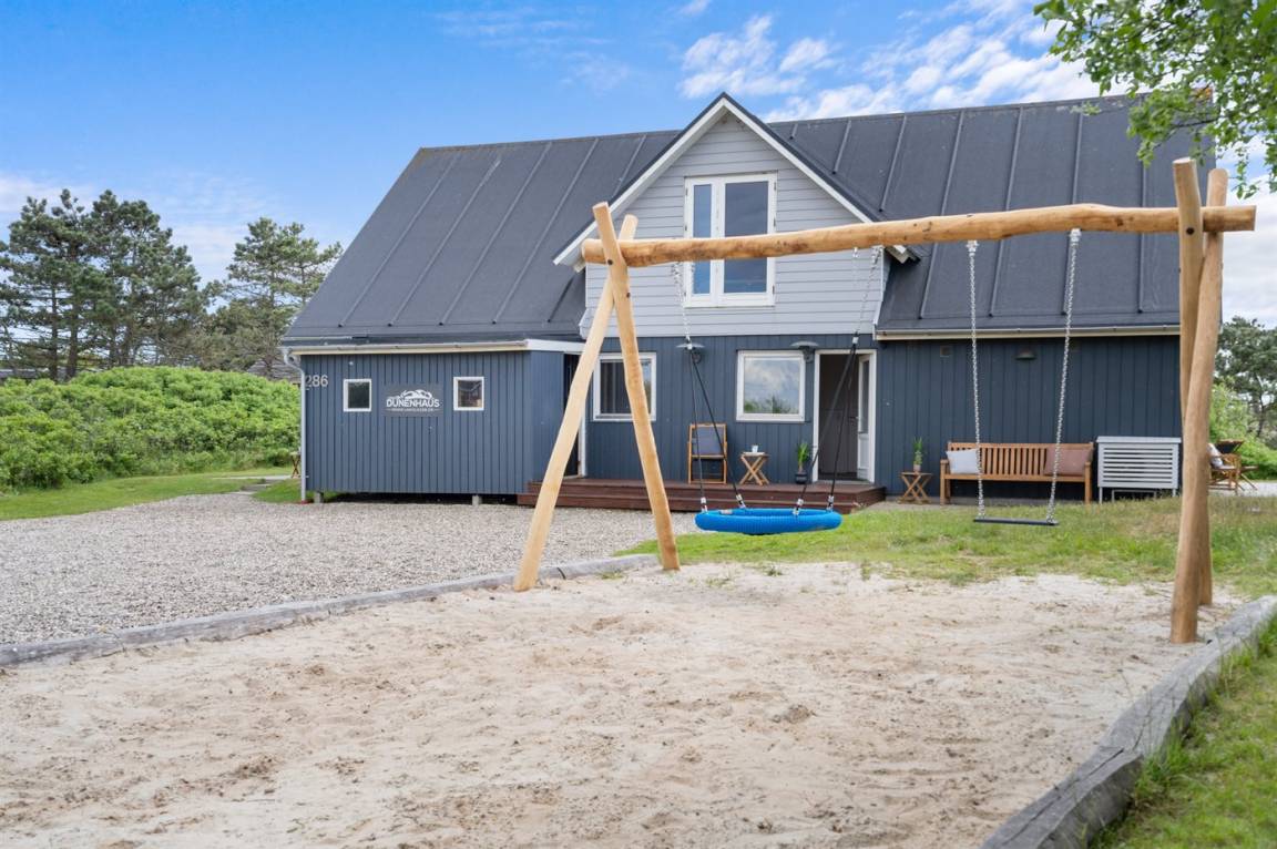 Die Ferienunterkunft liegt auf einem 1400 m² großen Naturgrundstück. Die Entfernung zum Meer beträgt 500 m.Die Entfernung zum Wattenmeer beträgt 3800 m. Die Entfernung zu einem See beträgt 4300 m. Die nächste Einkaufsmöglichkeit liegt 1200 m entfernt. In einem Abstand von 6200 m gibt es einen Golfplatz. Es steht ein 50 m² Terrassenareal zur Verfügung. Sandkasten. Die Entfernung zu einem Spielplatz beträgt 1200 m. Es steht ein Grill zur Verfügung. Es ist ein Ladestecker für Elektroautos installiert. Mit einer Ladeleistung von 11 kW. Parkplatz auf dem Grundstück.