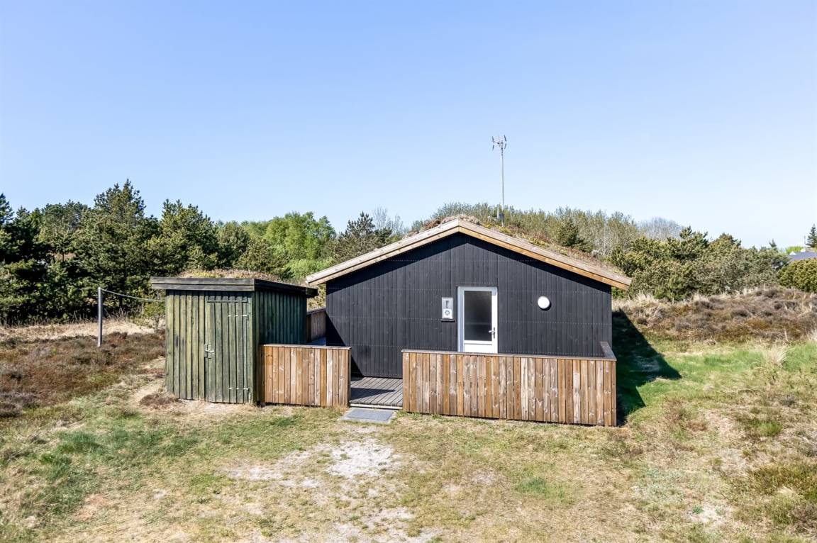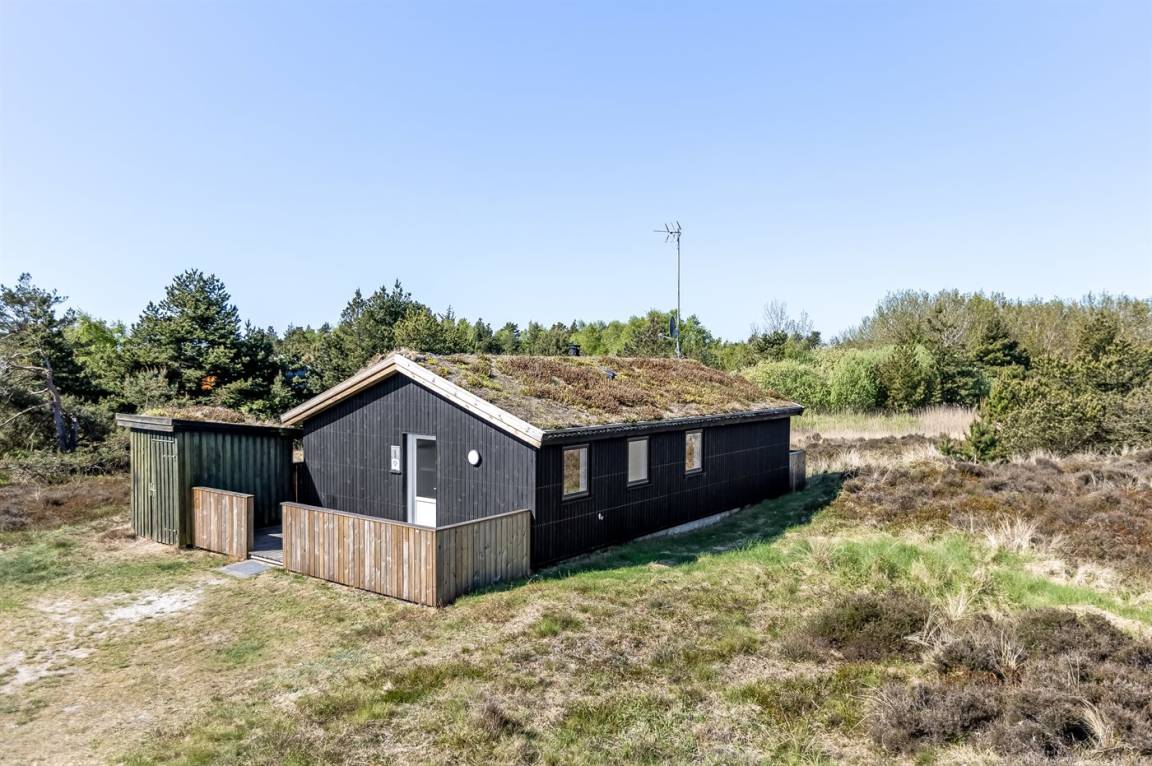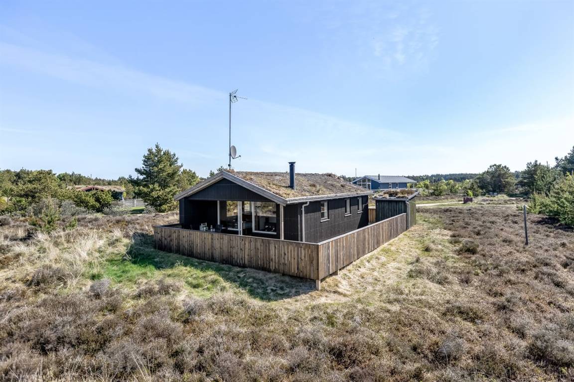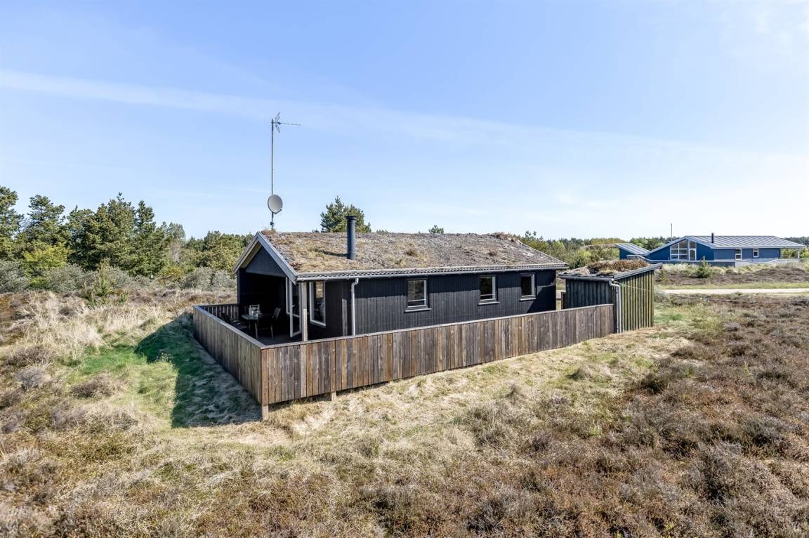 Schönes Ferienhaus aus Holz auf einem kleinen Hügel in Bolilsmark friedlicher Natur gelegen. Zum Haus gehört eine 50 m² geschlossene und zum Teil übedachte Terrassenfläche mit Gartenmöbeln und Grill.