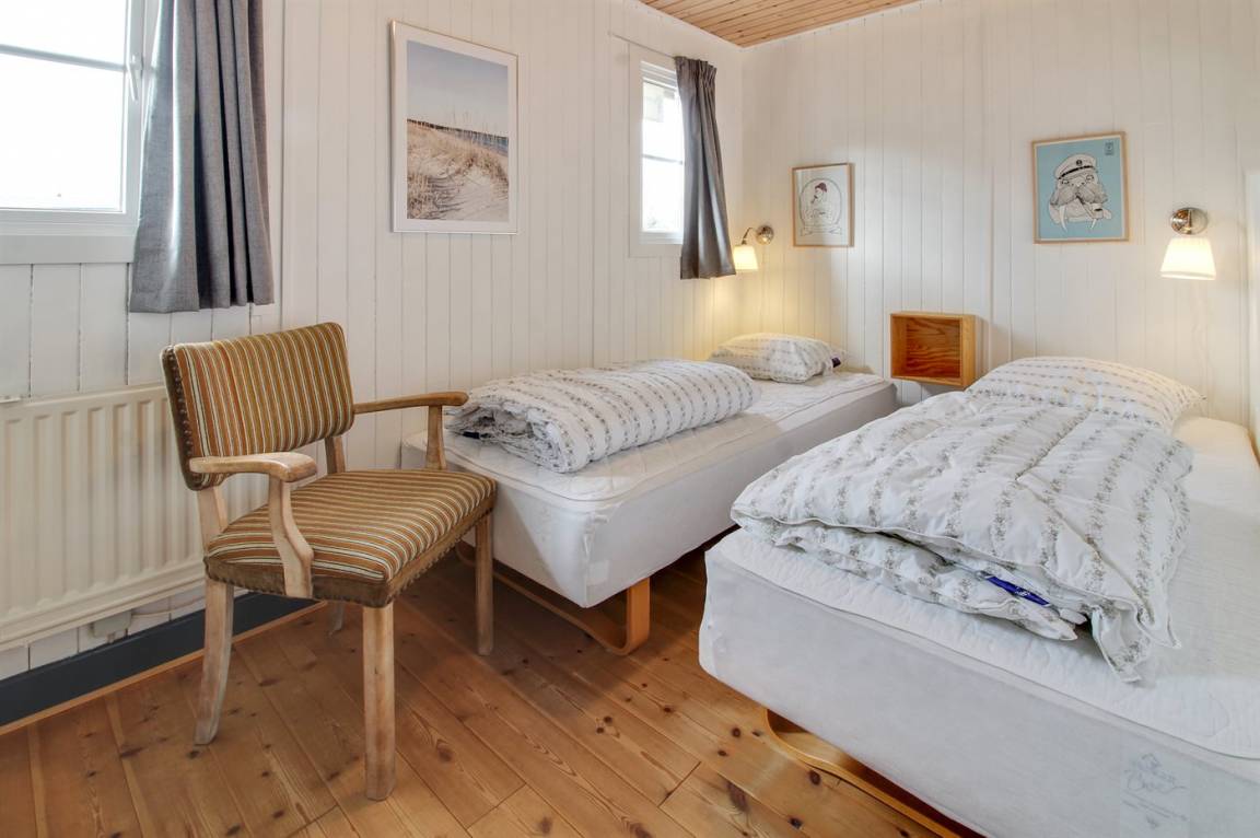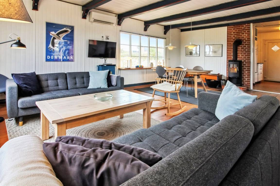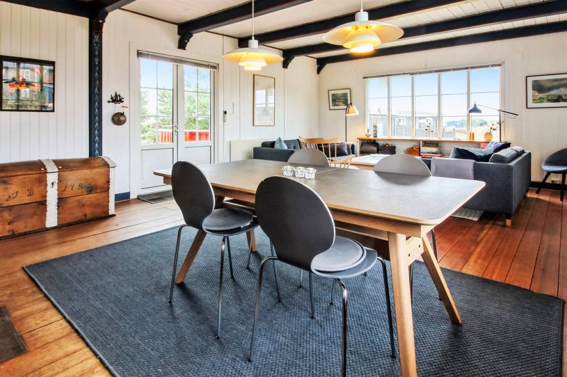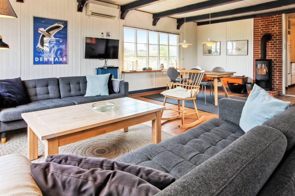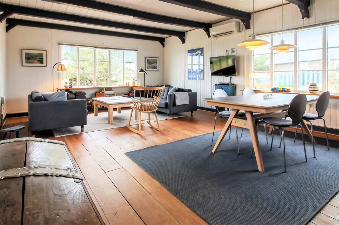 Dieses schöne und helle Ferienhaus liegt auf einem schönen Naturgrundstück nur 500 m von einem der besten Badestrände Rømøs entfernt. Ferner gibt es einen Tennisplatz in der näheren Umgebung. Übrigens: Schließen Sie die Tür zum Flur und damit zur Hälfte der Schlafzimmer ist das Haus auch für nur 2 Personen sehr gemütlich.