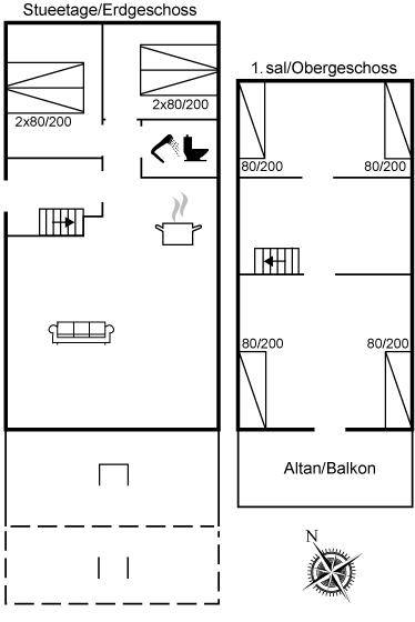 EinrichtungDas Ferienhaus eignet sich für 6 Personen sowie 1 Kleinkind bis zu 3 Jahren. 1 Schlafplatz eignet sich jedoch nur für größere Kinder (4-11 Jahre). Die Ferienunterkunft hat eine Wohnfläche von 90 m², ist 2-stöckig, und wurde 1976 gebaut. 2004 wurde die Ferienunterkunft renoviert. Es ist erlaubt 3 Haustiere mitzubringen. Die Ferienunterkunft ist mit energiefreundlicher Luft-Luft- Wärmepumpe ausgestattet. Die Ferienunterkunft ist mit Waschmaschine ausgestattet. Wäschetrockner. Tiefkühlmöglichkeit mit 50 Liter Nutzinhalt. Es gibt außerdem einen Kaminofen. Für die jüngsten Feriengäste ist 1 Kinderhochstuhl vorhanden.