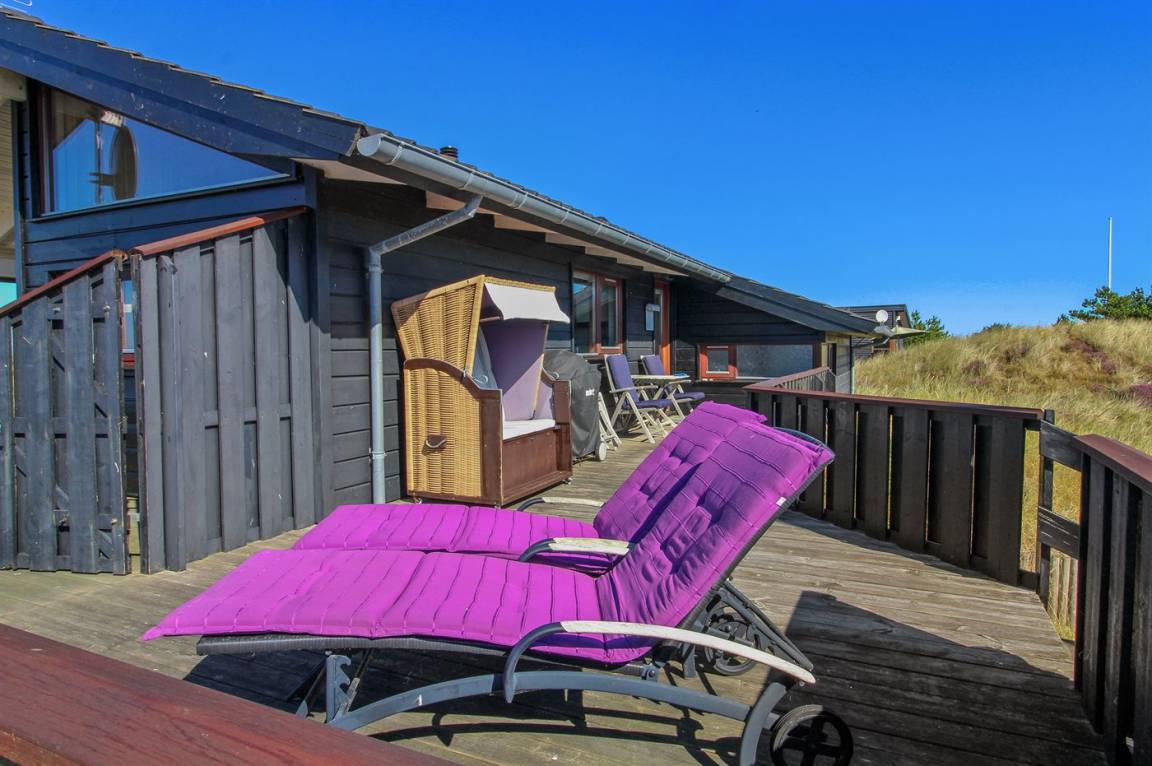 DraußenDie Ferienunterkunft liegt auf einem 1800 m² großen Naturgrundstück. Die Entfernung zum Meer beträgt 300 m.Die Entfernung zum Wattenmeer beträgt 3800 m. Die Entfernung zu einem See beträgt 4300 m. Die nächste Einkaufsmöglichkeit liegt 1300 m entfernt. In einem Abstand von 6200 m gibt es einen Golfplatz. Es steht ein offenes Terrassenareal zur Verfügung. Außerdem gibt es überdachte Terrasse. Sandkasten. Es steht ein Grill zur Verfügung. Parkplatz auf dem Grundstück.