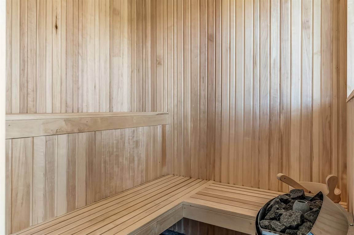 Der große Swimmingpool-Bereich des Hauses lädt euch sowohl zu lustige als auch entspannende Stunden ein. Hier gibt es einen Swimmingpool mit Gegenstromanlage, eine Kletterwand für Abenteuerlustige sowie eine Sauna und einen Whirlpool für ultimative Entspannung. Der Pool ist bis zu 3,5 Meter breit, 5 Meter lang und 1,35 Meter tief. Die Wassertemperatur liegt zwischen 28 und 32 °C. Vom Poolbereich aus könnt ihr die schöne Aussicht auf die umliegenden Felder genießen.