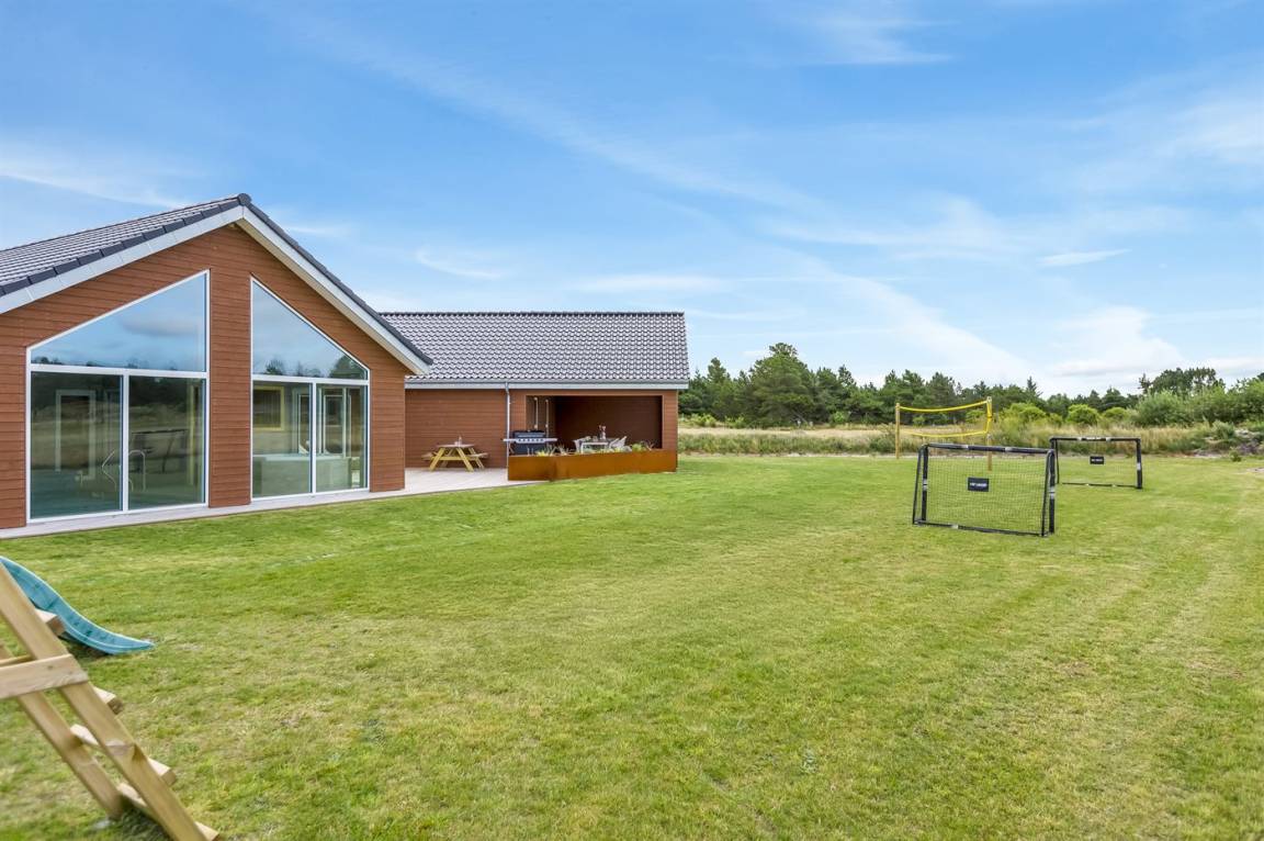 Der Außenbereich bietet viel Platz für Spiel und Erholung an. Das große Grundstück ist ideal für Kinder und Haustiere. Es gibt einen Spielturm, ein Volleyballnetz und Fußballtore. Die große, nach Süden ausgerichtete Terrasse verbindet den Poolbereich, das Küchen-Wohnzimmer und den Multiraum. Hier könnt ihr im Freien grillen oder einfach die Ruhe genießen. Eine überdachte Terrasse sorgt dafür, dass ihr auch bei nicht so gutem Wetter draußen sitzen könnt. Auf dem Hofplatz gibt es ausreichend Parkplätze sowie eine Ladestation (Typ-2-Stecker) für Elektroautos.