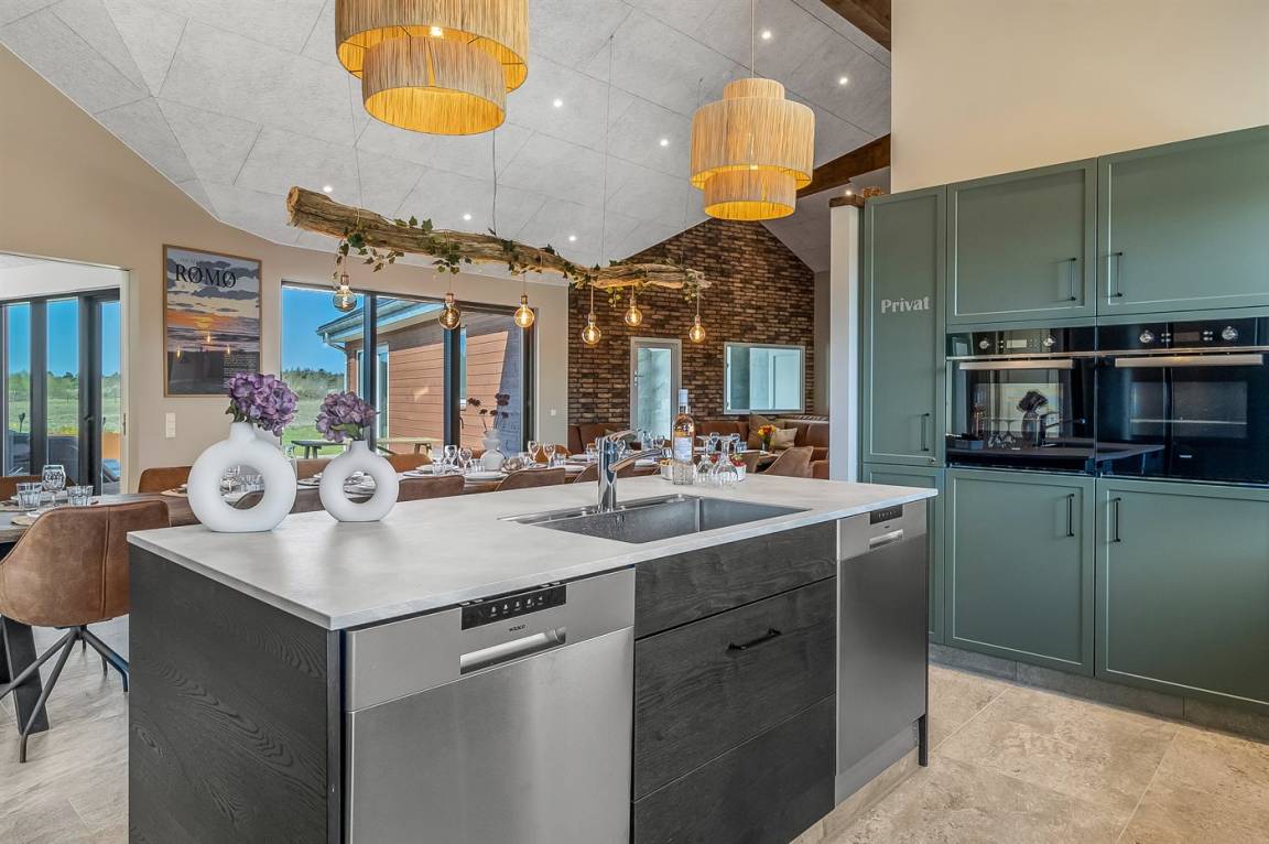 Das offene und geräumige Küchen-Wohnzimmer ist perfekt für gemeinsame Aktivitäten und das Zubereiten von Mahlzeiten. Die moderne Küche verfügt über 2 Geschirrspüler, 2 Kühlschränke und 2 Öfen – ideal, wenn ihr für eine größere Gruppe kocht. Am großen Esstisch oder an der Kücheninsel ist Platz fürs Beisammensein. Die offene Verbindung zum Wohnzimmer sorgt für eine helle und einladende Atmosphäre. Für entspannte Momente gibt es einen gemütlichen Alkoven, in dem ihr euch mit einem Buch oder einem Film zurückziehen könnt.