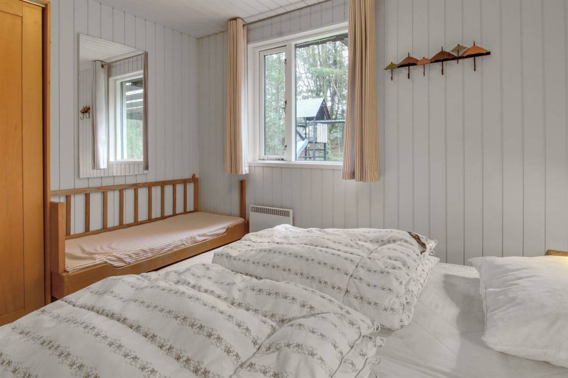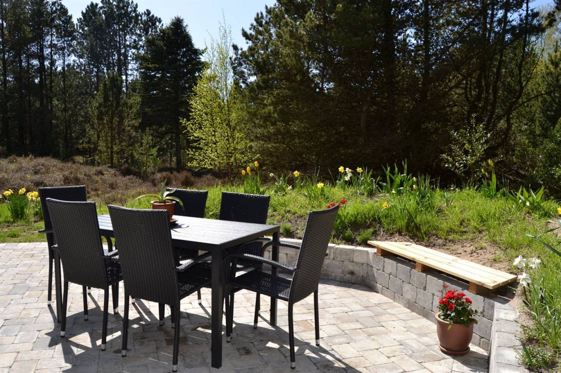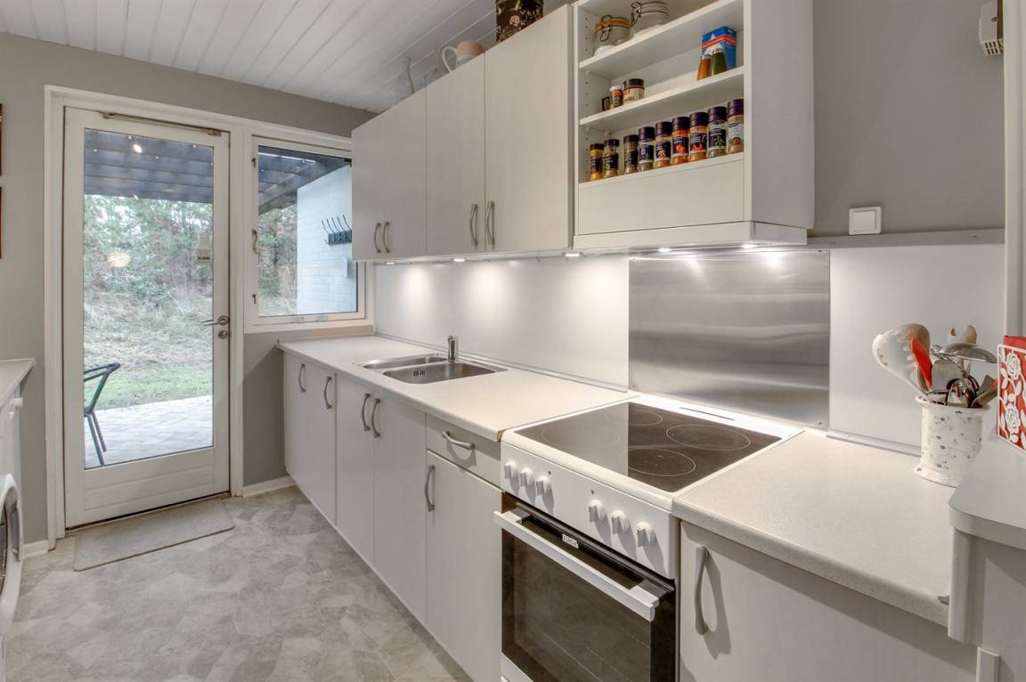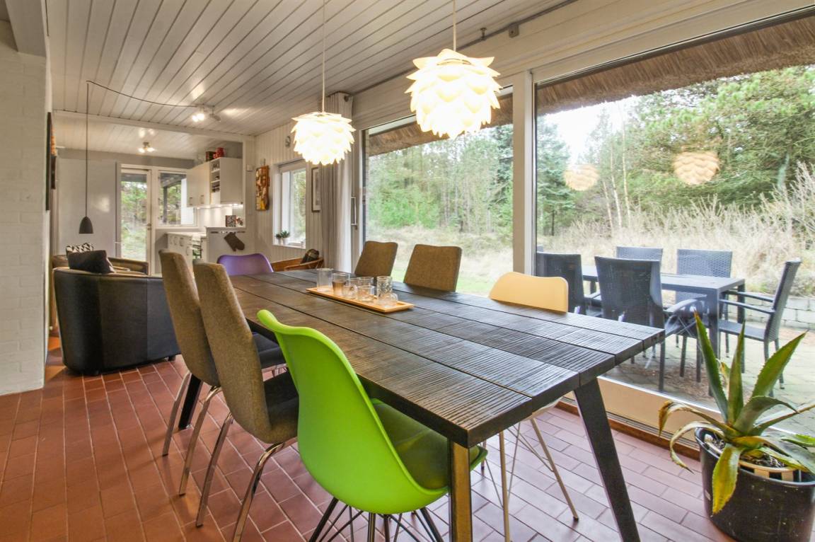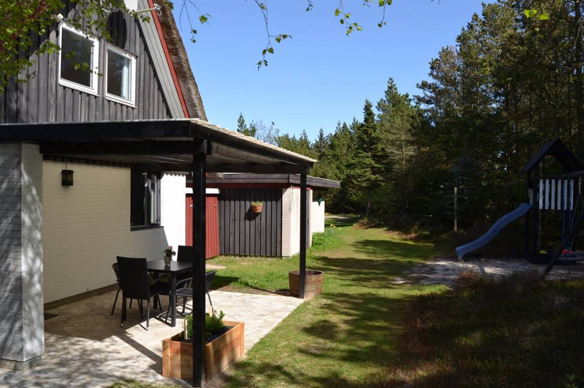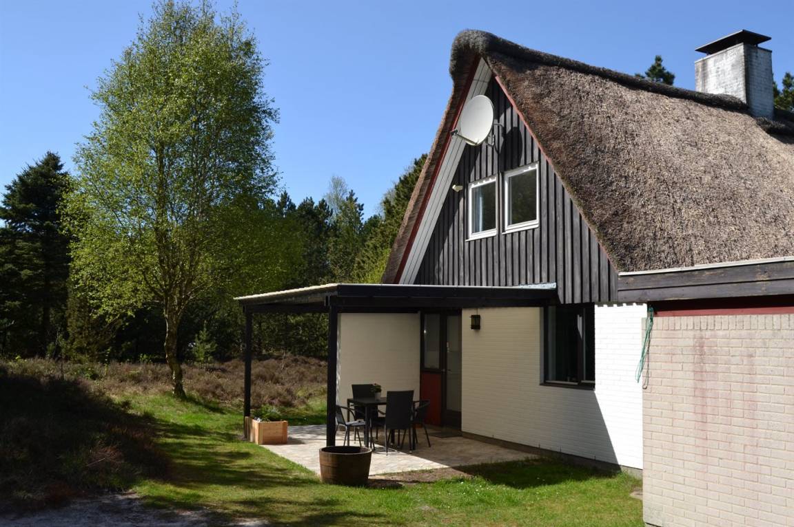 Das Haus liegt auf einem 2.733 m² großen Grundstück in Kongsmark. Der Kaufmann und ein Café liegen 600 m vom Haus entfernt und das Naturcenter Tønnisgård liegt etwa 500 m entfernt. Zum Ferienhaus gehören zwei schöne, vor dem Wind geschützte Terrassen. Von der Küche haben Sie Ausgang zur überdachten gegen südwesten gerichteten Terrasse (14 m²), die an die Spielecke des Grundstücks angrenzt. Vom Wohnzimmer, mit großer Fensterfront haben Sie Ausgang zur offenen in westlicher Richtung liegenden, offenen Terrasse (20 m²). Hier können Sie fast den ganzen Tag hindurch und am frühen Abend die Sonne genießen. Von der Terrasse aus haben Sie Ausblick auf das Naturgrundstück, das im Spätsommer, wenn das Heidekraut blüht besonders schön ist.