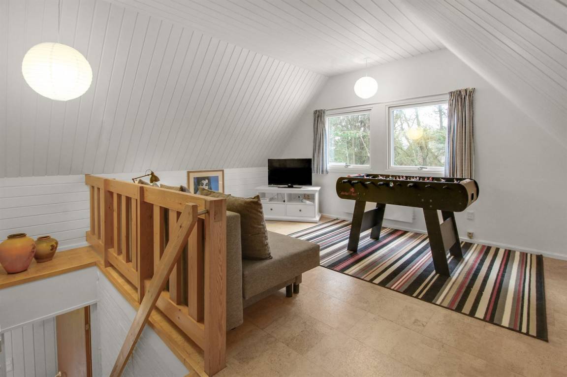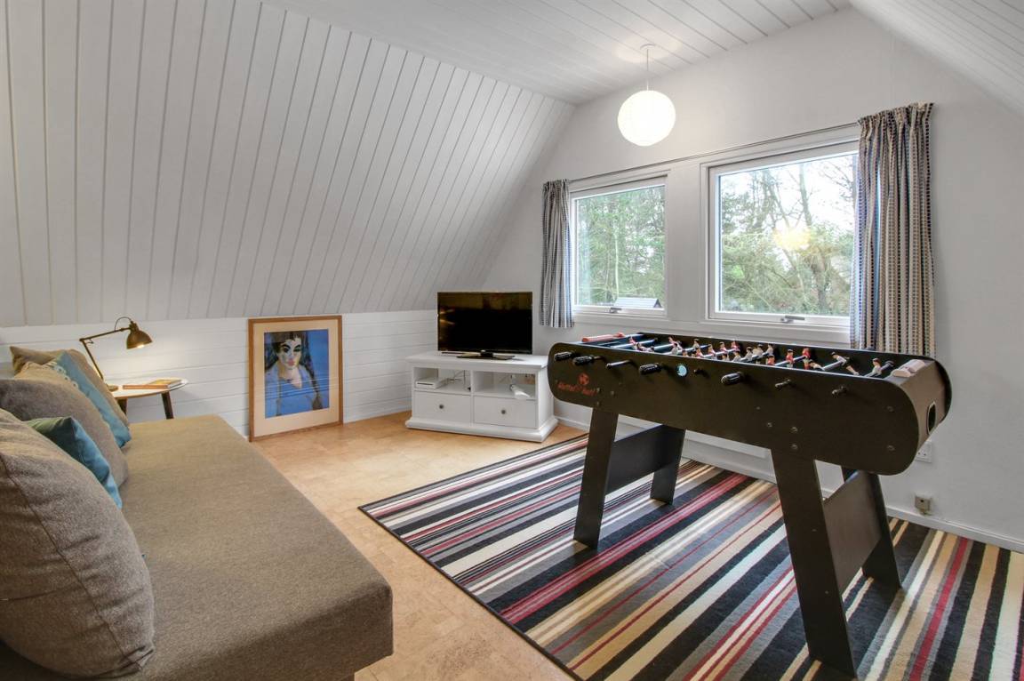 Für die jüngeren Gäste ist das Wohnzimmer im Obergeschoss mit Tischfußball, TV mit Nintendo Wii und Schlafcouch eingerichtet.