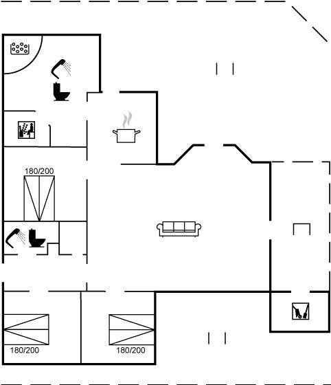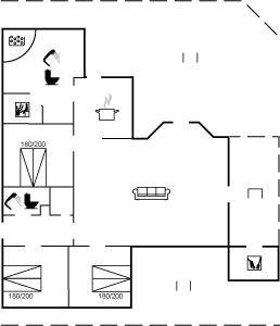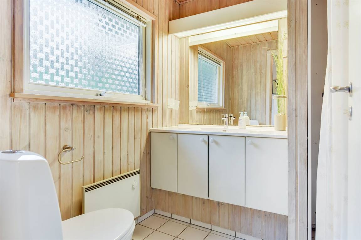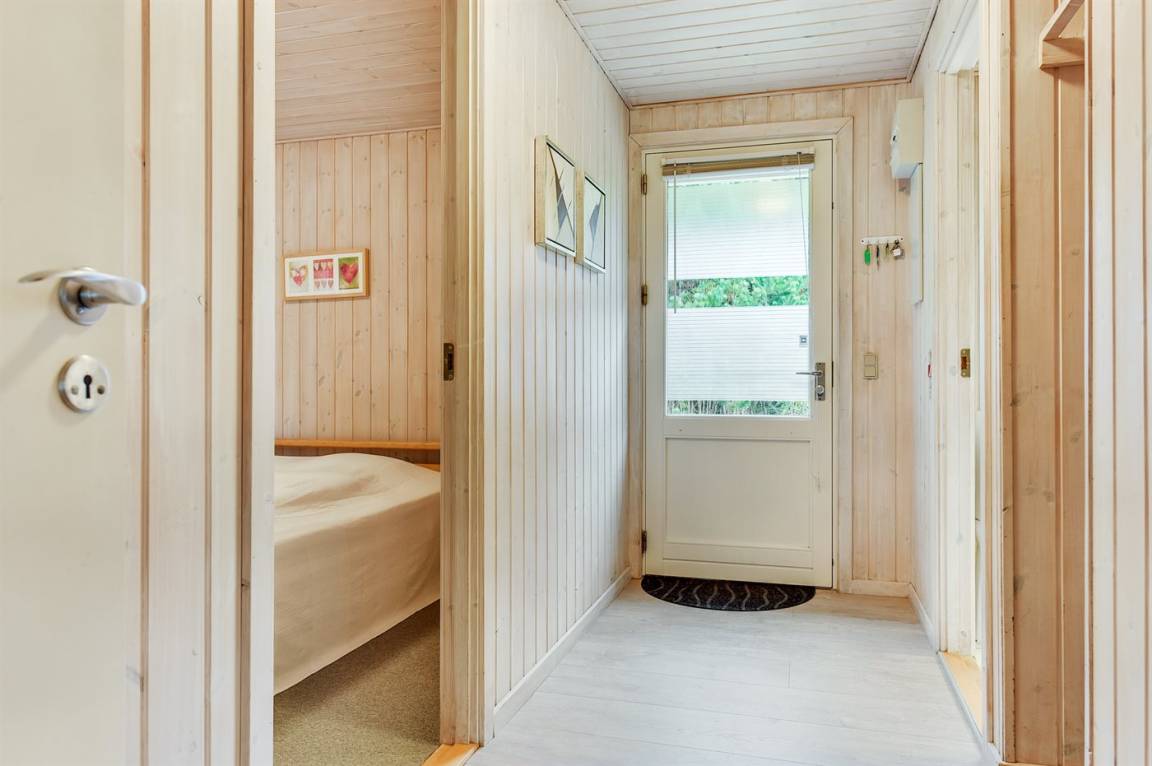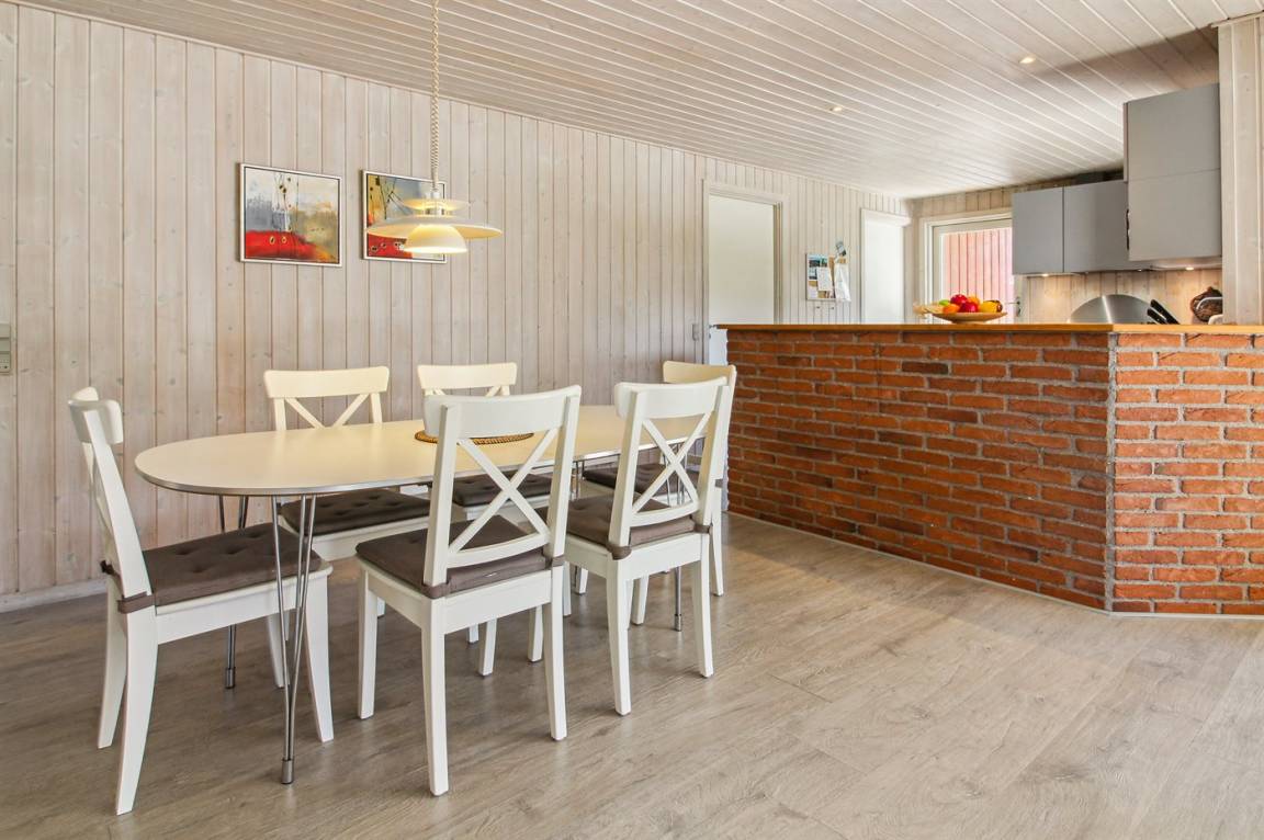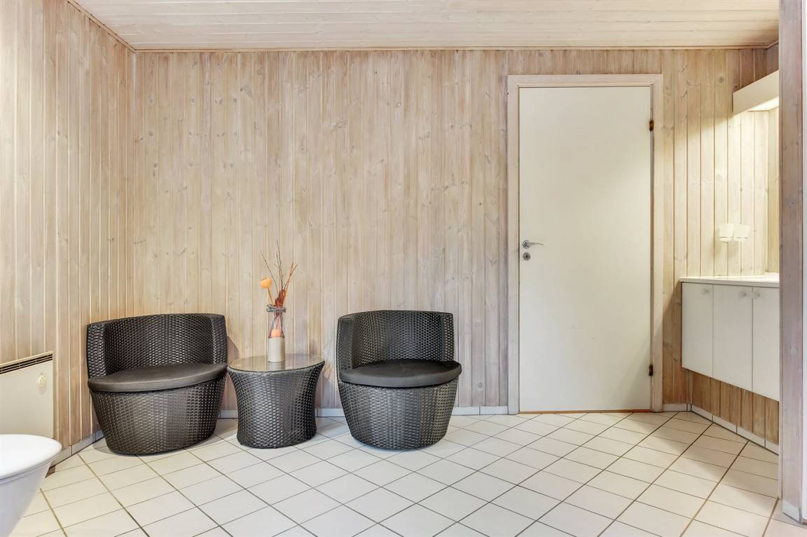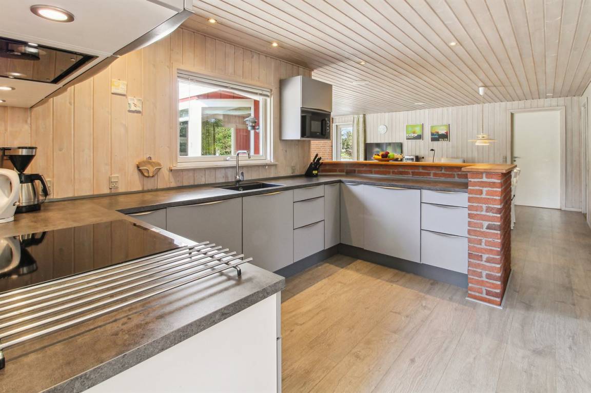 Innen sind die Wände mit hellem Holz verkleidet. Schönes Badezimmer mit Duschnische, Fußbodenheizung, 2-Pers.-Whirlpool und Sauna. Ferner ist ein zusätzliches Badezimmer mit Dusche vorhanden. Die nette Küche ist mit dem Wohnzimmer kombiniert und enthält Mikrowelle und Geschirrspüler. Im hellen Wohnzimmer mit großer Fensterfront finden Sie Kaminofen, Stereoanlage mit CD-Spieler, TV und DVD-Spieler.