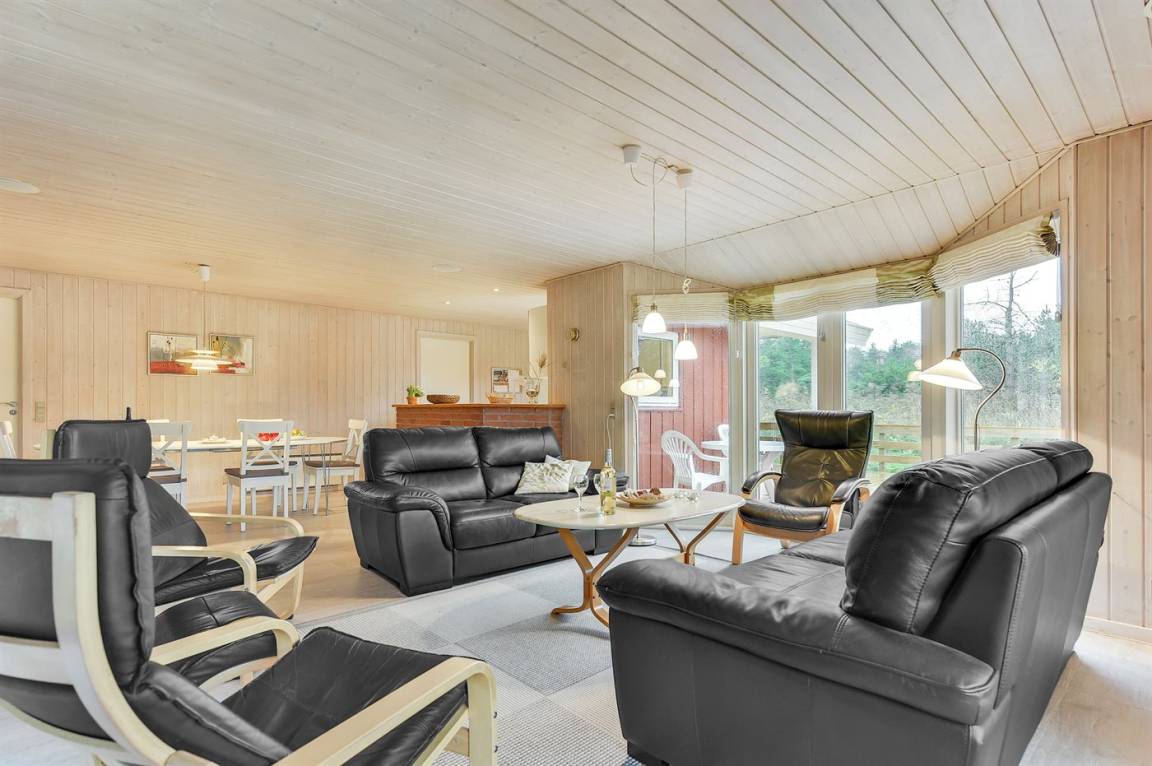 Herrliches Ferienhaus aus Holz mit u. a. Whirlpool und Sauna, 1993 gebaut. Das Haus liegt ungestört auf einem von Bäumen umgebenen Naturgrundstück - in naturschöner Umgebung. Zum Haus gehört ein großes, geschlossenes und teilweise überdachtes Terrassenareal mit Gartenmöbeln.