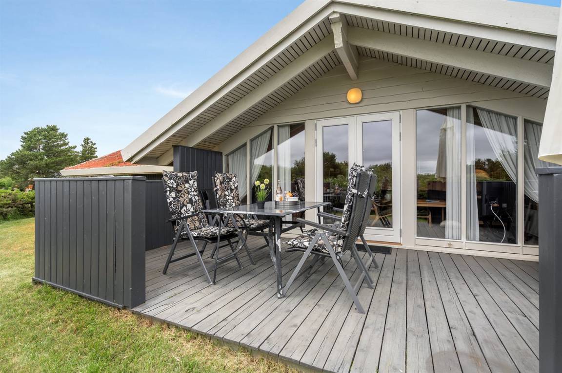 DraußenDie Ferienunterkunft liegt auf einem 2500 m² großen Naturgrundstück. Die Entfernung zum Meer beträgt 1800 m. Die nächste Einkaufsmöglichkeit liegt 3500 m entfernt. In einem Abstand von 13500 m gibt es einen Golfplatz. Es steht ein 18 m² Terrassenareal zur Verfügung. Außerdem gibt es 10 m² überdachte Terrasse. Geräteraum. Es steht ein Grill zur Verfügung. Parkplatz auf dem Grundstück.