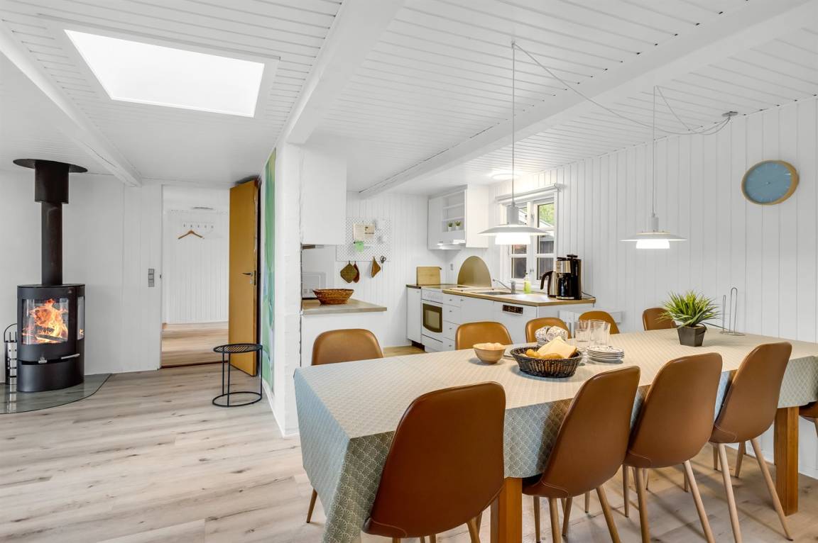 EinrichtungDas Ferienhaus eignet sich für 9 Personen sowie 1 Kleinkind bis zu 3 Jahren. Die Ferienunterkunft hat eine Wohnfläche von 130 m² und wurde 1980 gebaut. 2018 wurde die Ferienunterkunft teilweise renoviert. Haustiere dürfen nicht mitgebracht werden. Die Ferienunterkunft ist mit energiesparender Wärmepumpe ausgestattet. Die Ferienunterkunft ist mit Waschmaschine ausgestattet. Tiefkühlmöglichkeit mit 10 Liter Nutzinhalt. Es gibt außerdem einen Kaminofen. Für die jüngsten Feriengäste ist 1 Kinderhochstuhl vorhanden.