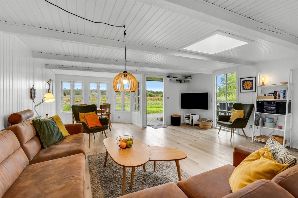 Auf einem sehr großen Grundstück mit tollem Panoramablick über die Gegend liegt dieses geräumige Ferienhaus mit einer gemütlichen Atmosphäre und einer hellen und freundlichen Einrichtung.