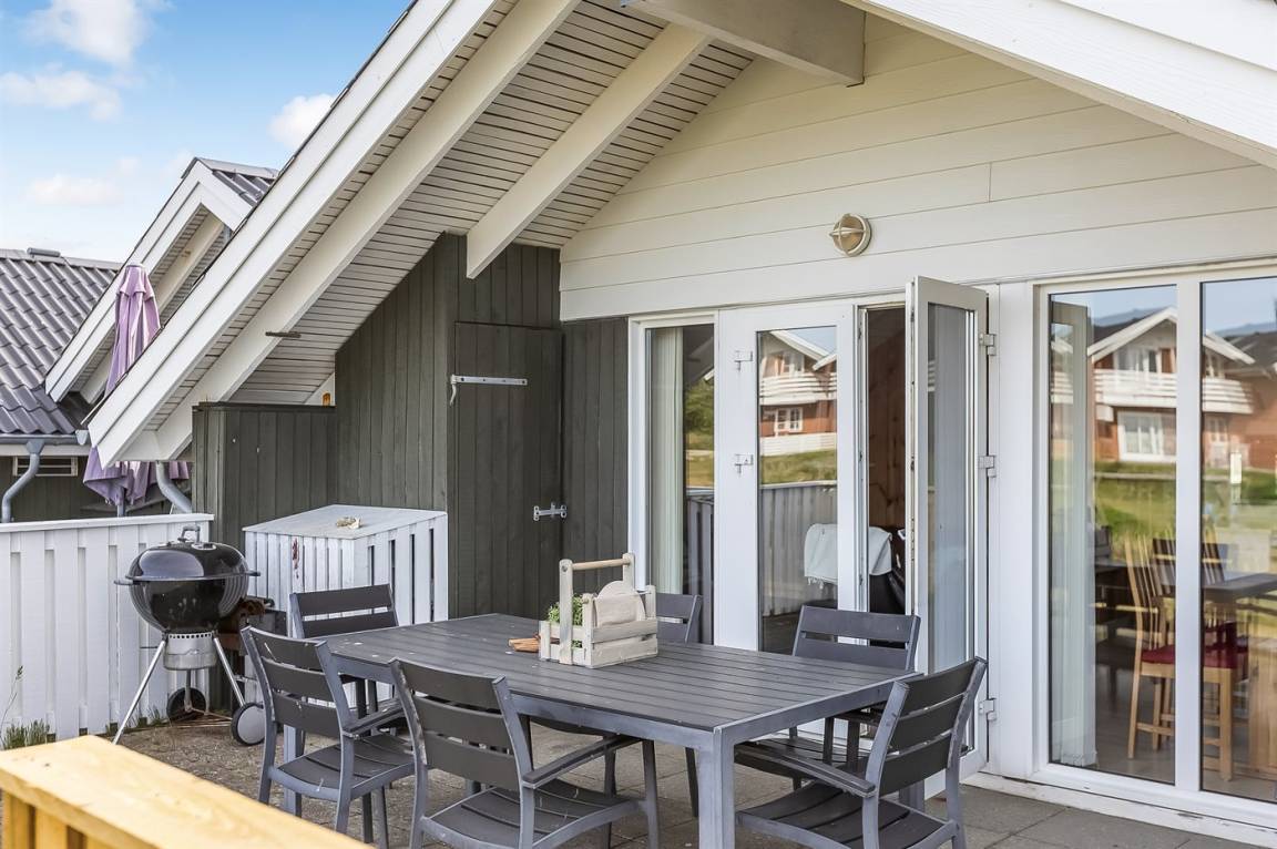 Zur Ferienwohnung gehören zwei Terrassen – eine nach Osten und eine nach Westen ausgerichtet. Ein Grill steht zur Verfügung. Parkmöglichkeiten gibt es am Ende der Wohnungsreihe.